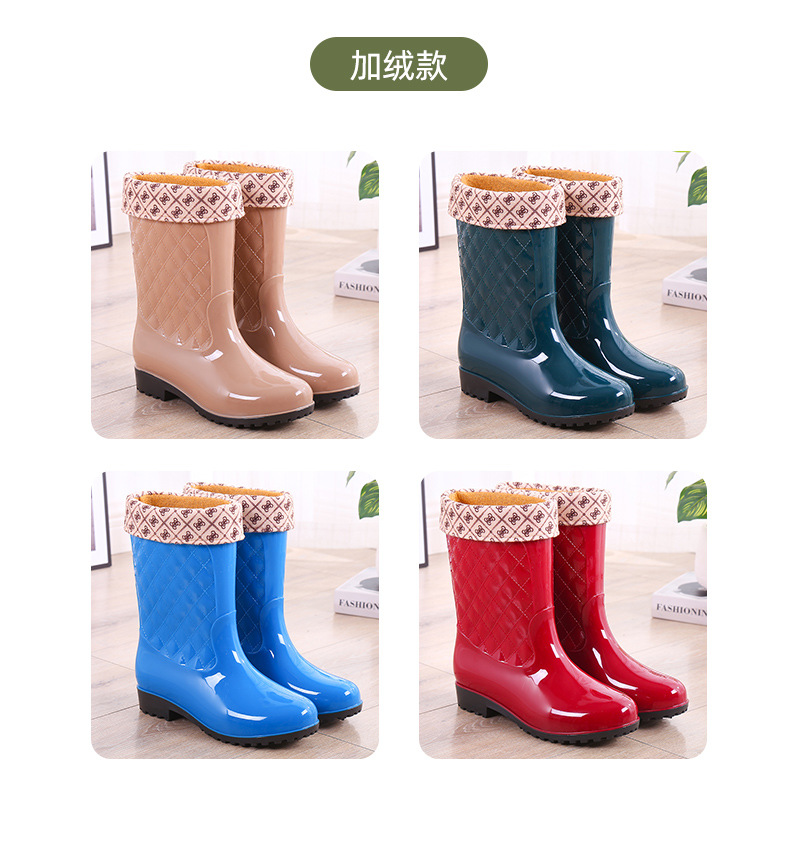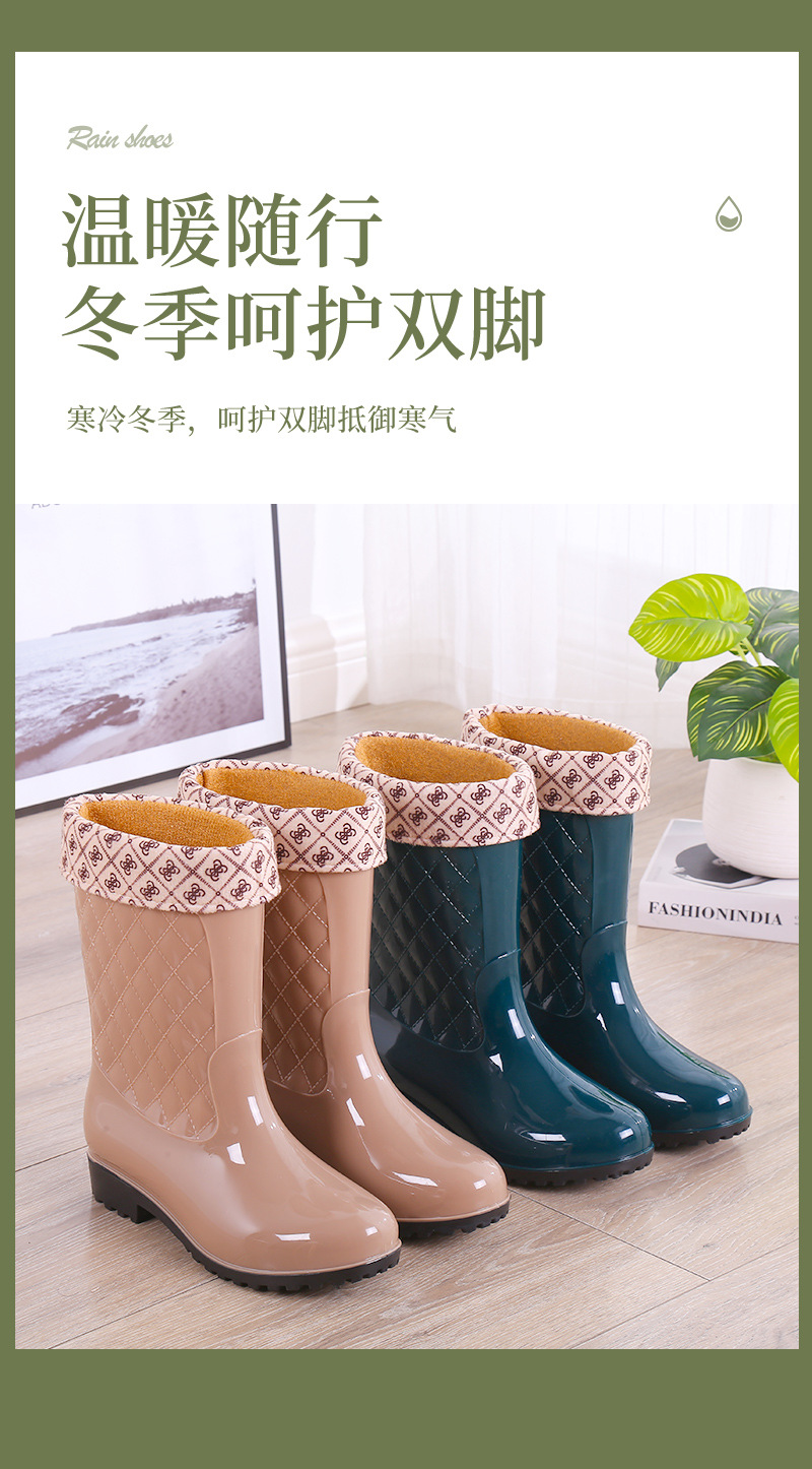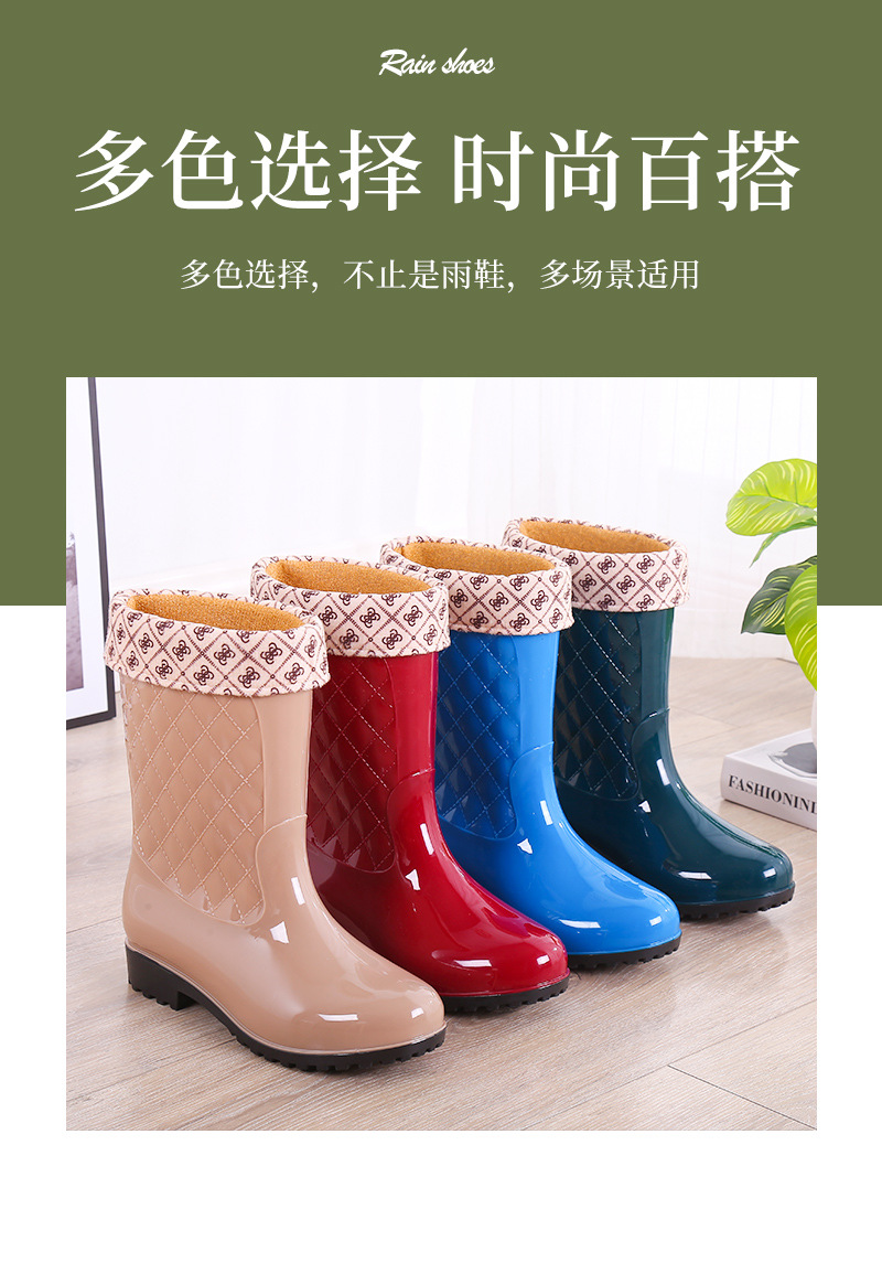 时尚雨鞋女士中筒保暖秋冬季雨靴防滑水鞋胶鞋成人加绒棉水靴套鞋
