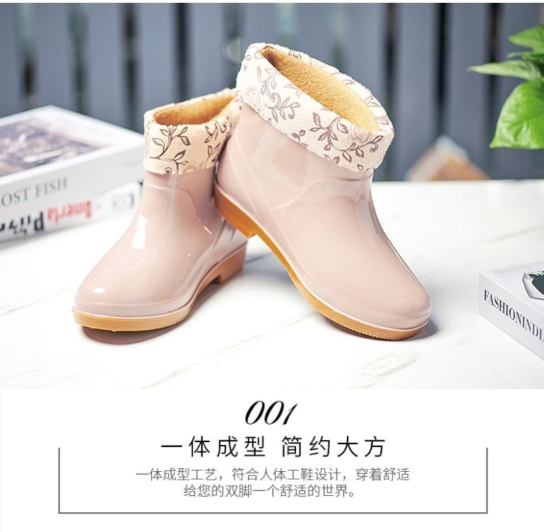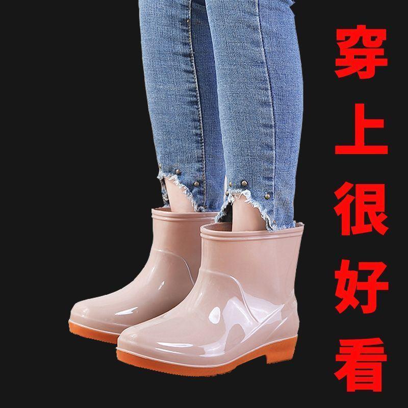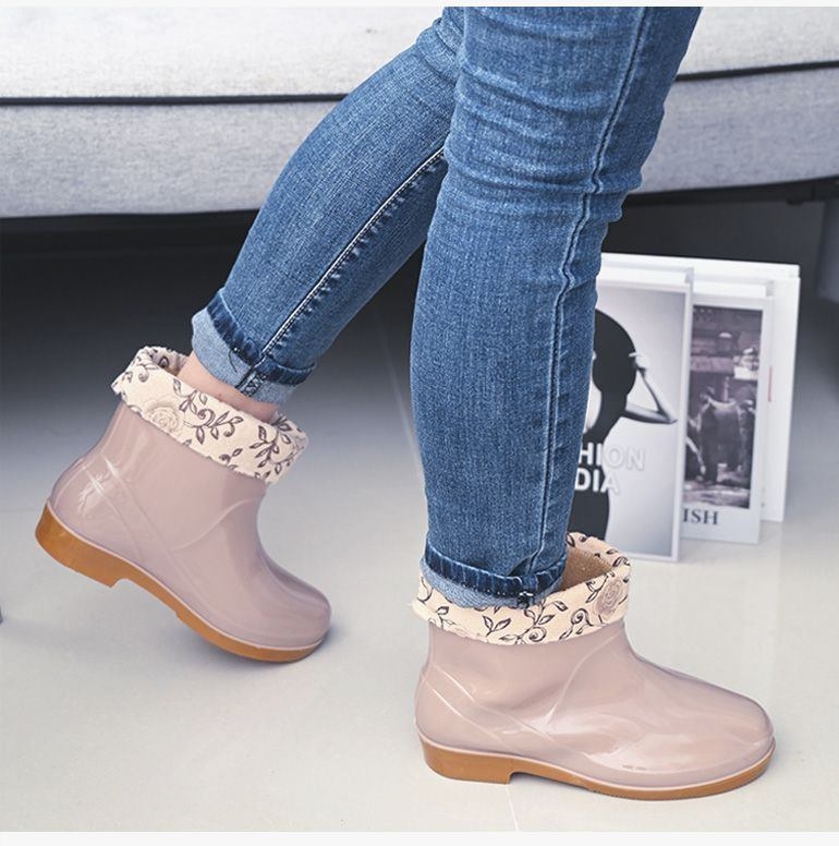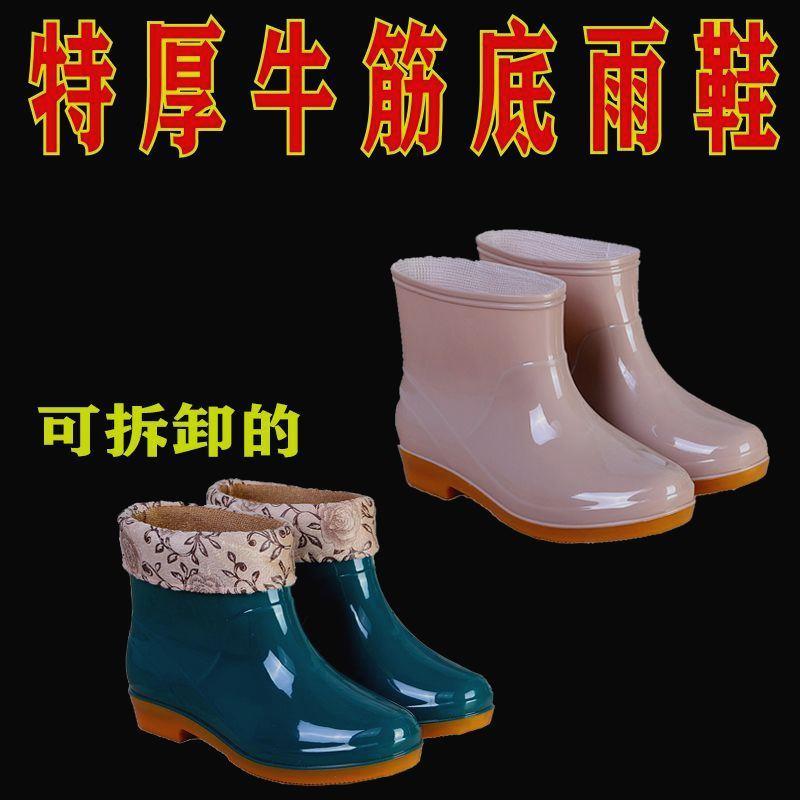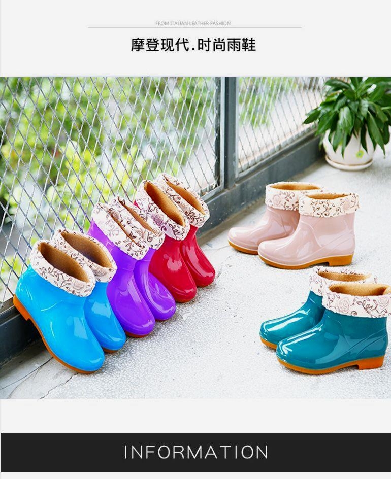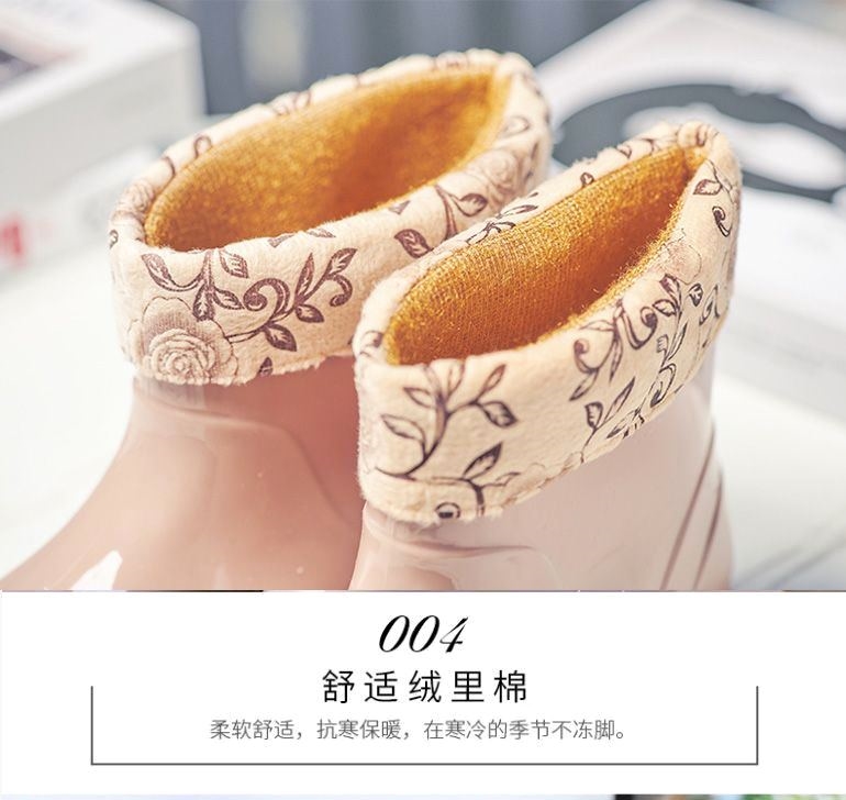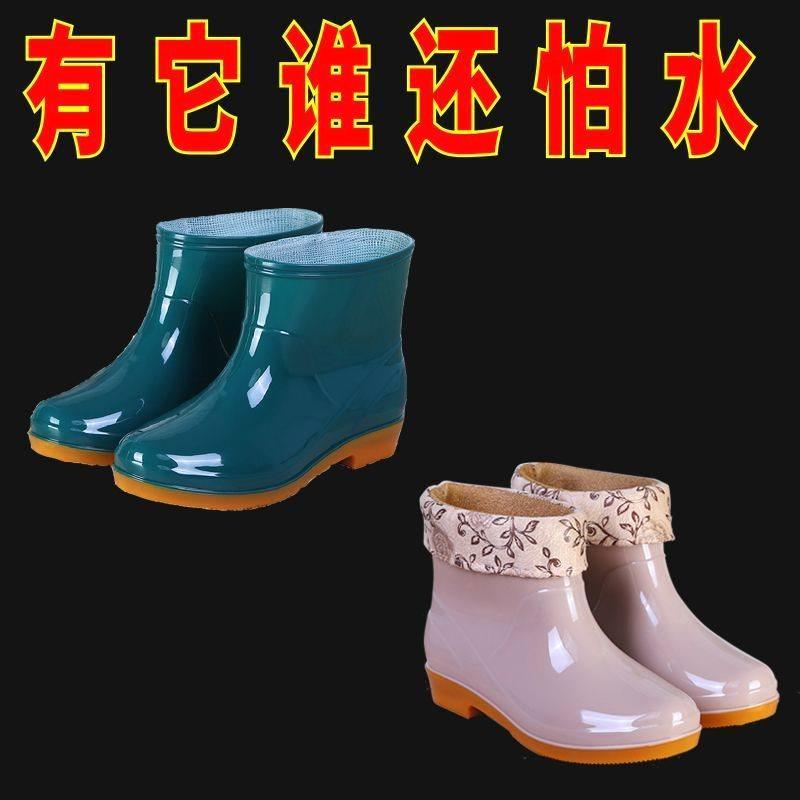 成人女短筒保暖防滑雨靴雨鞋水鞋外穿水靴厨房防水鞋时尚加棉胶鞋