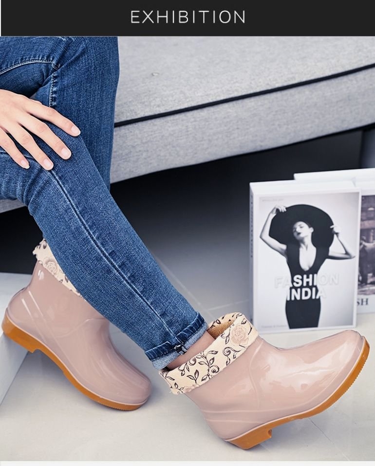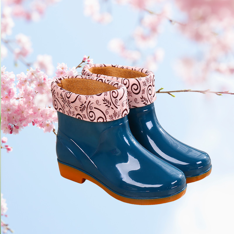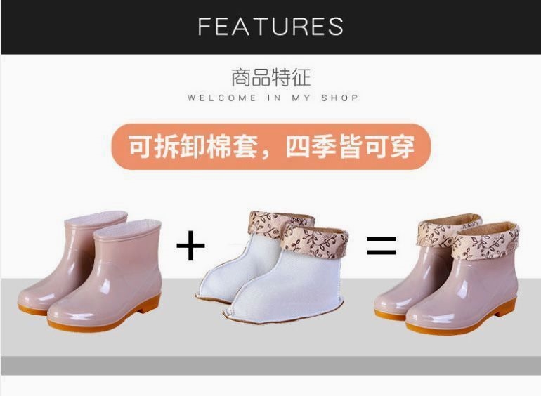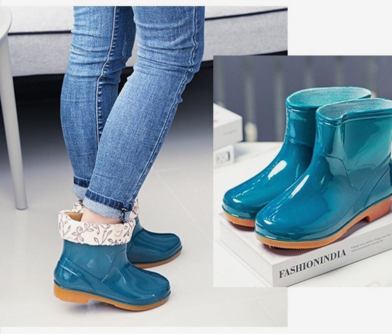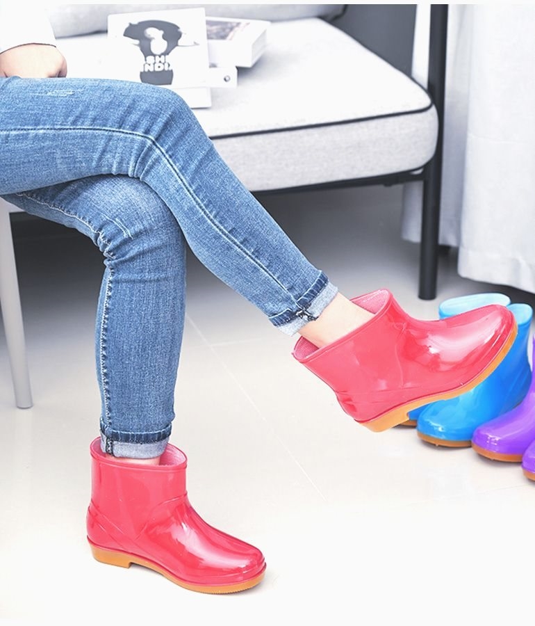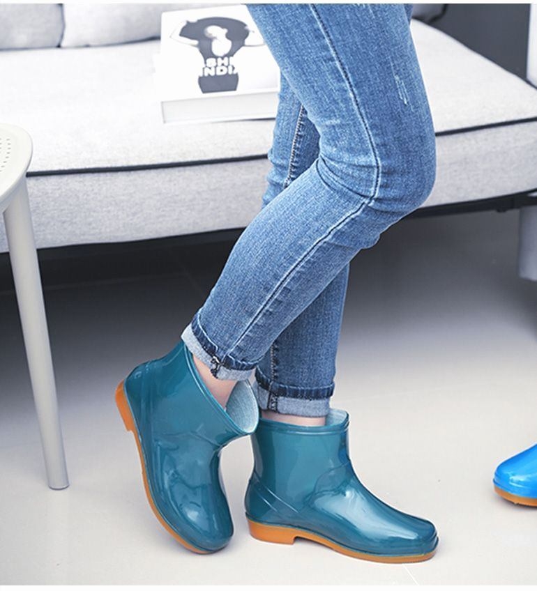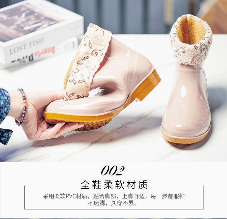 成人女短筒保暖防滑雨靴雨鞋水鞋外穿水靴厨房防水鞋时尚加棉胶鞋