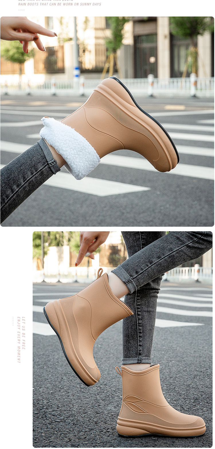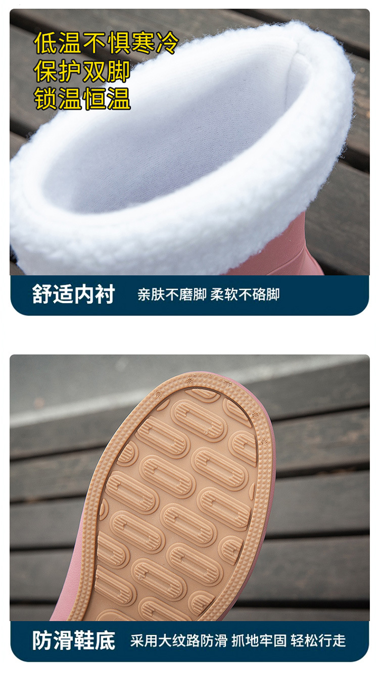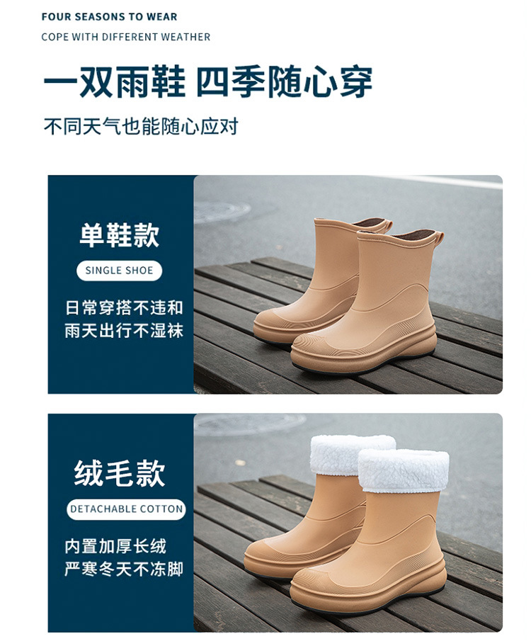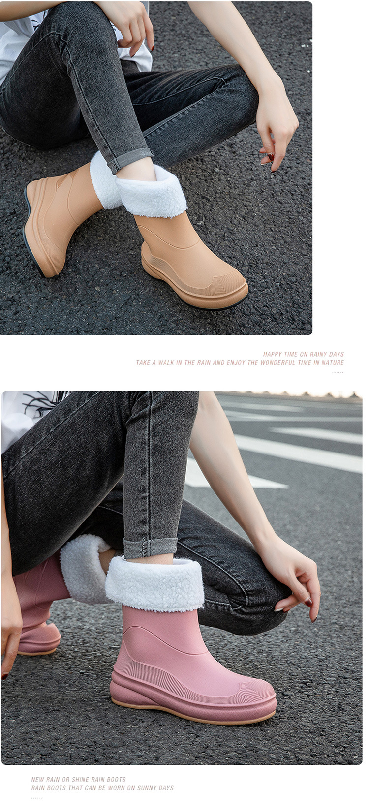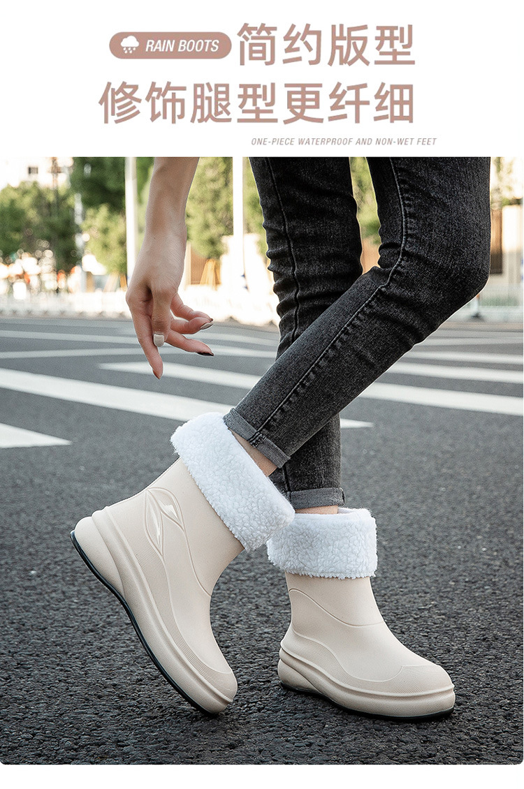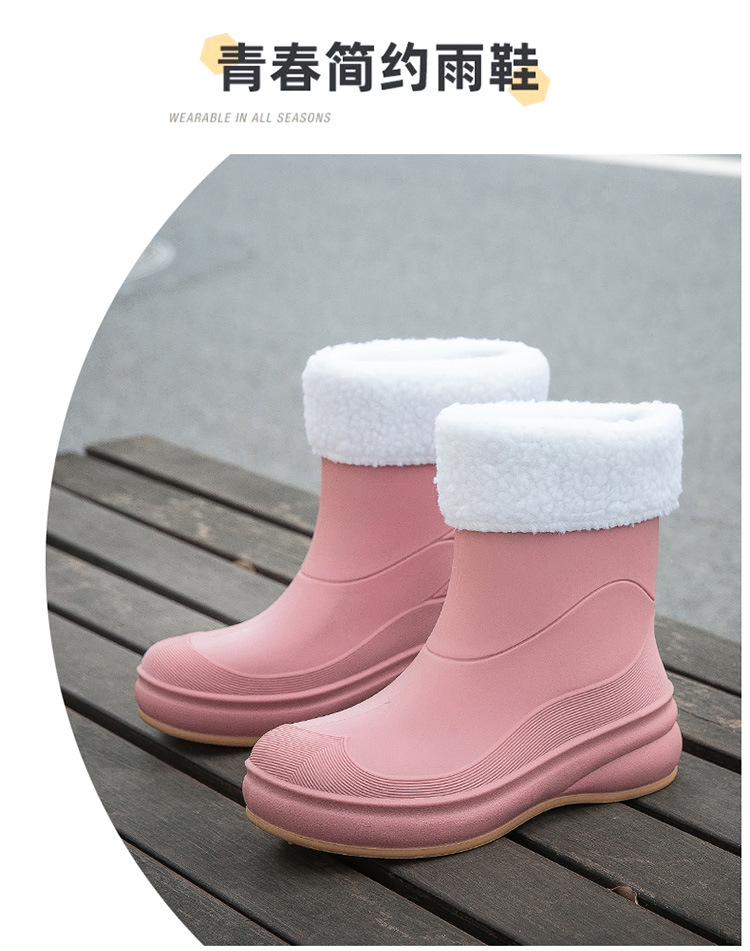 2025外贸耐磨防滑短筒女士加棉雨鞋 韩版厚底外穿水鞋女防水防滑