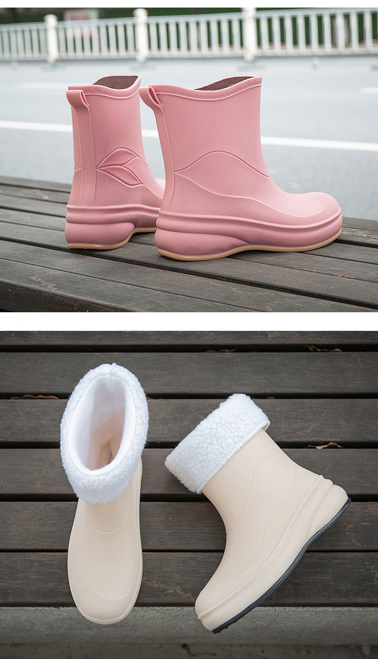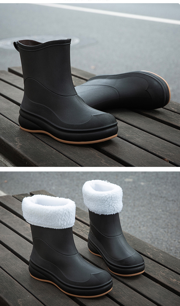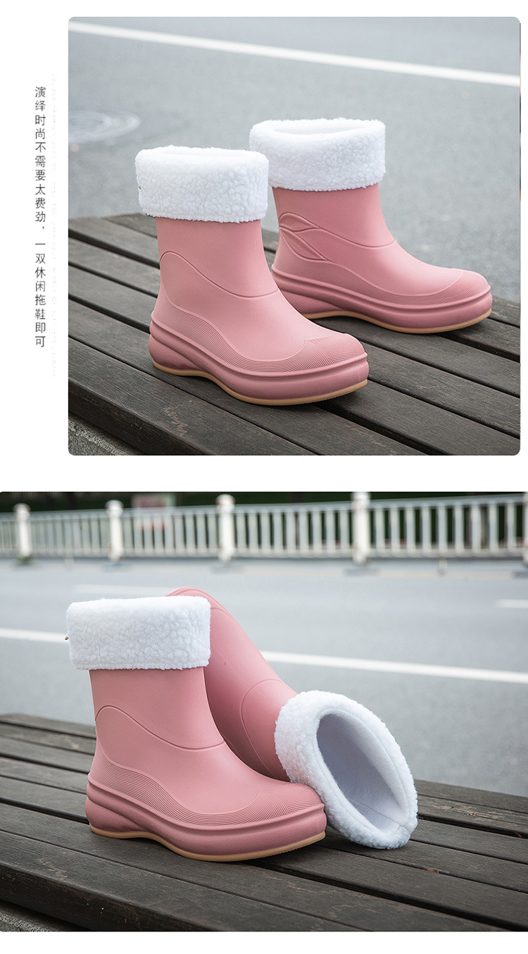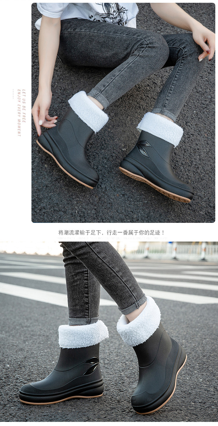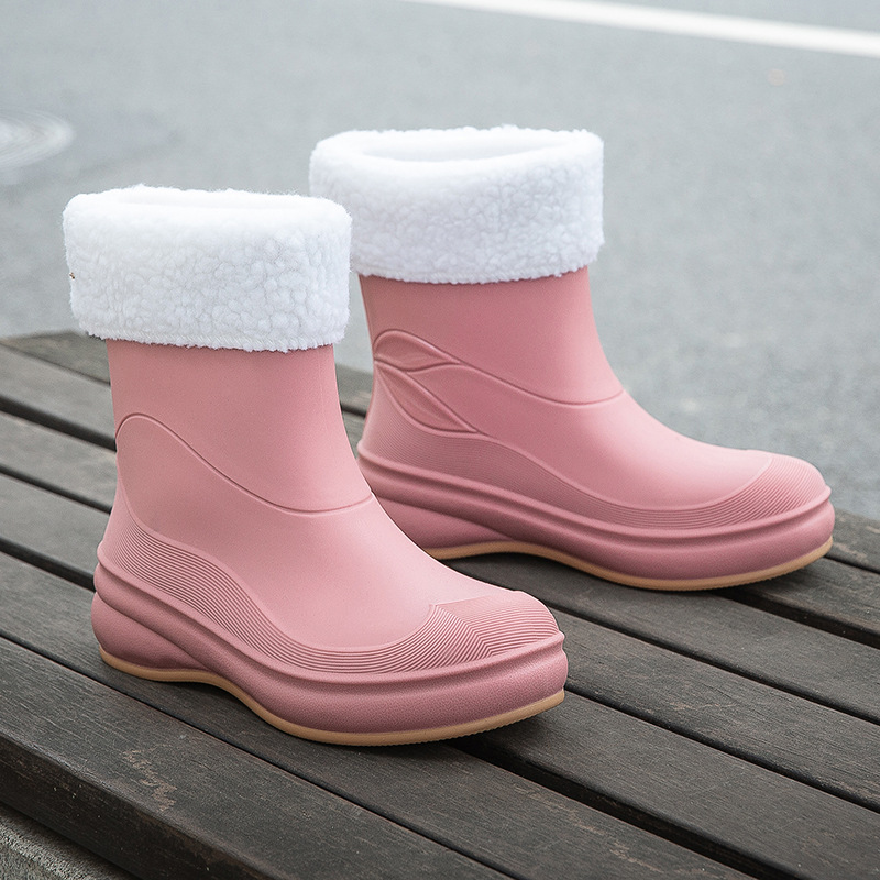 2025外贸耐磨防滑短筒女士加棉雨鞋 韩版厚底外穿水鞋女防水防滑