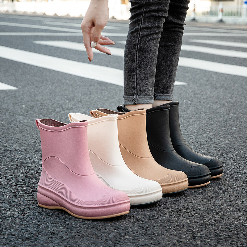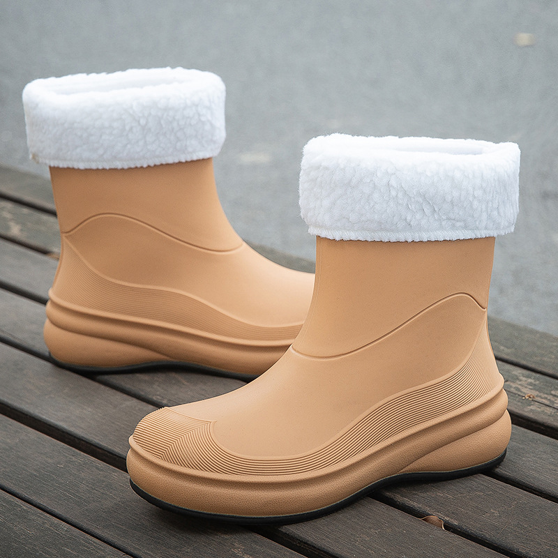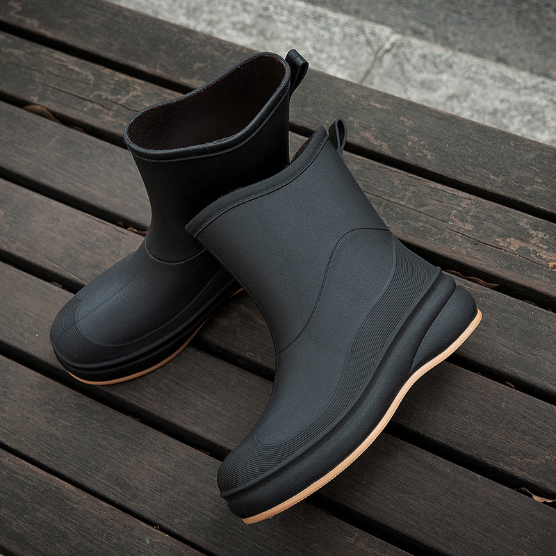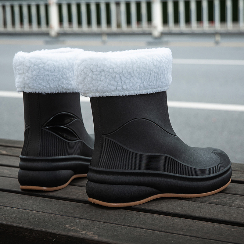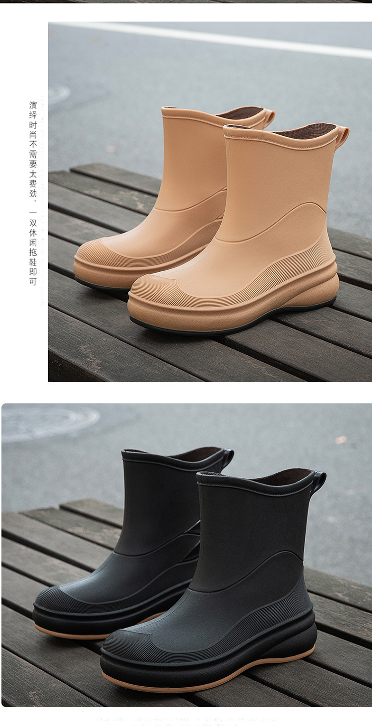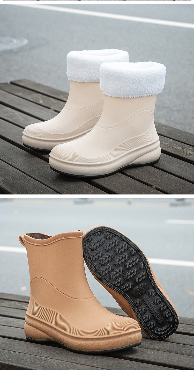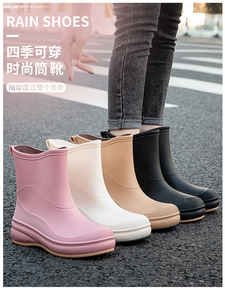 2025外贸耐磨防滑短筒女士加棉雨鞋 韩版厚底外穿水鞋女防水防滑