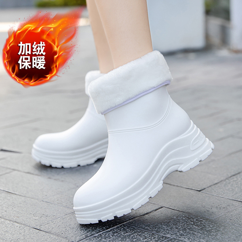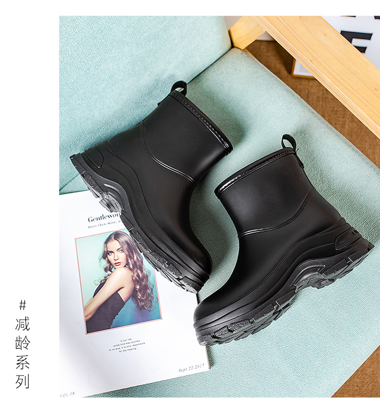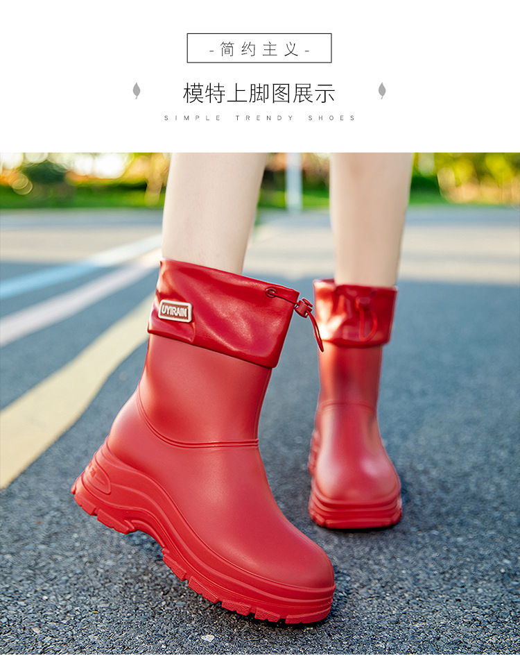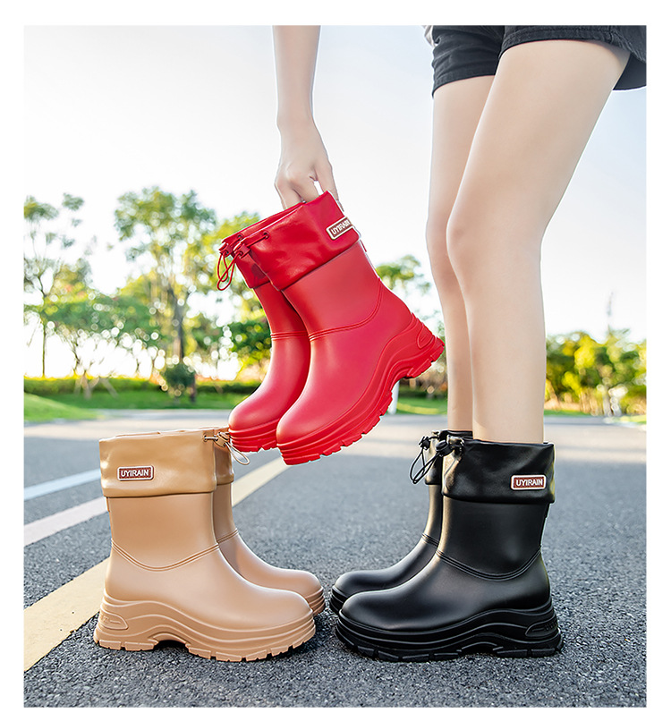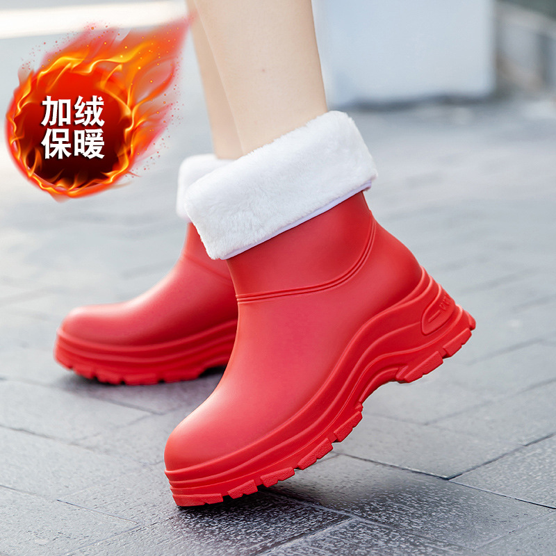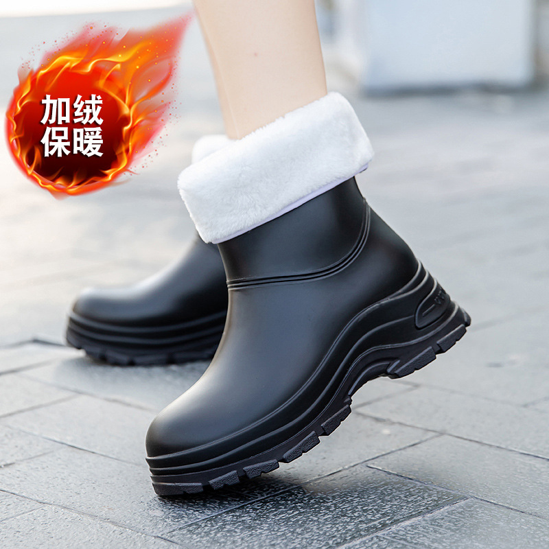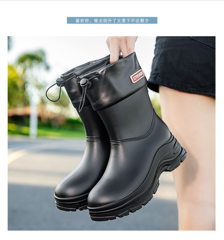 雨鞋女款2024新款中筒防水鞋网红时尚中跟胶鞋软加绒保暖雨靴批发