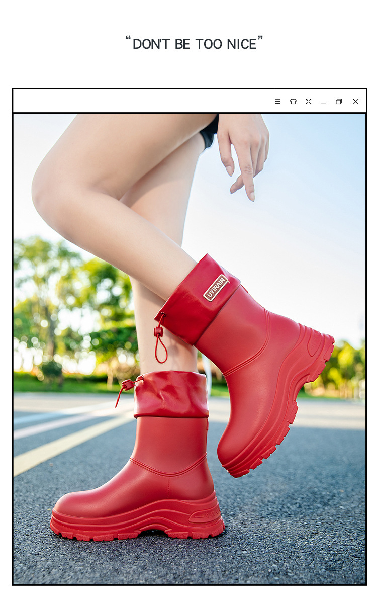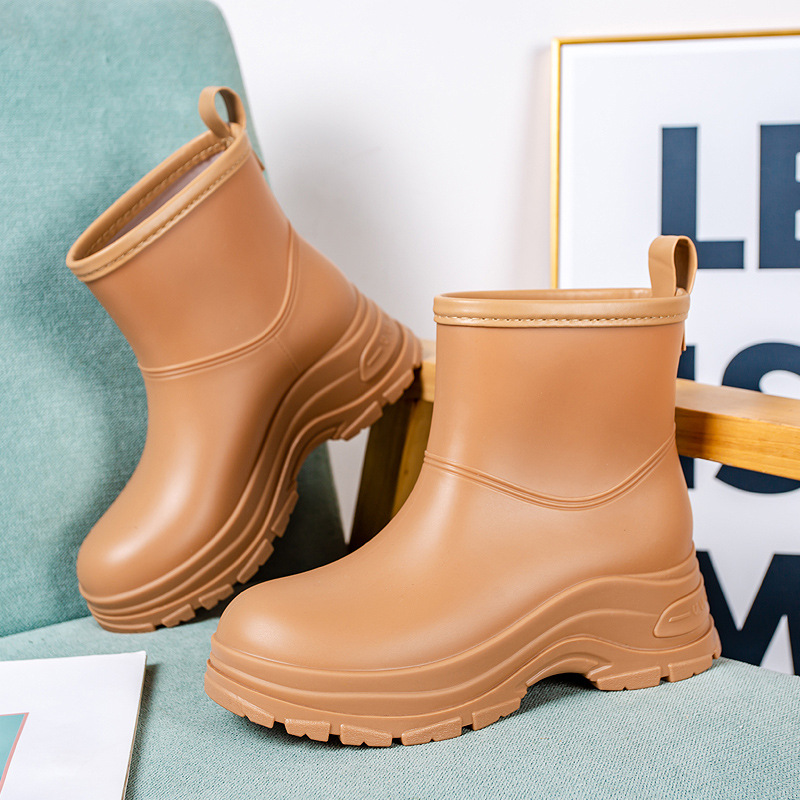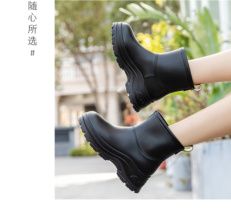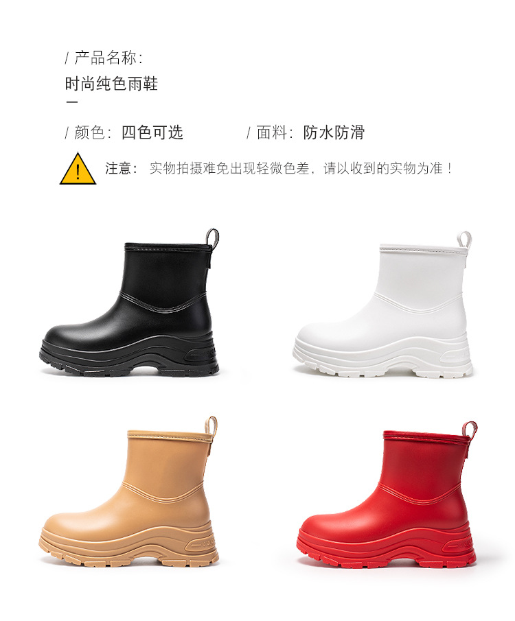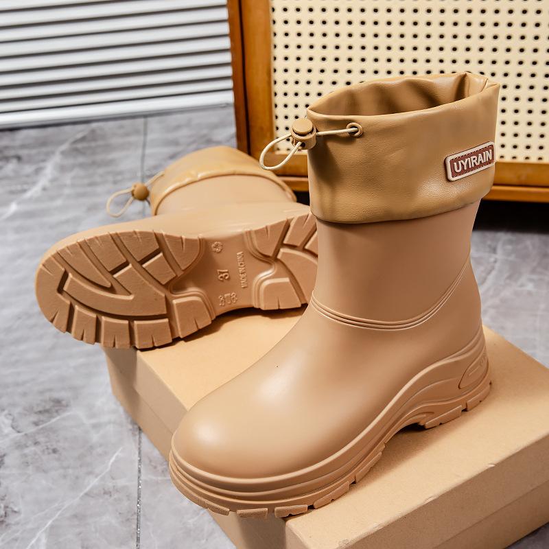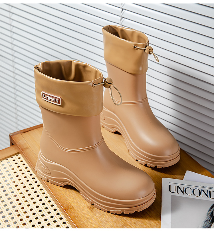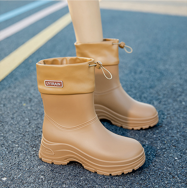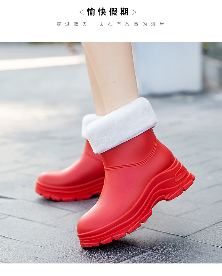 雨鞋女款2024新款中筒防水鞋网红时尚中跟胶鞋软加绒保暖雨靴批发