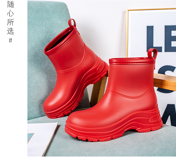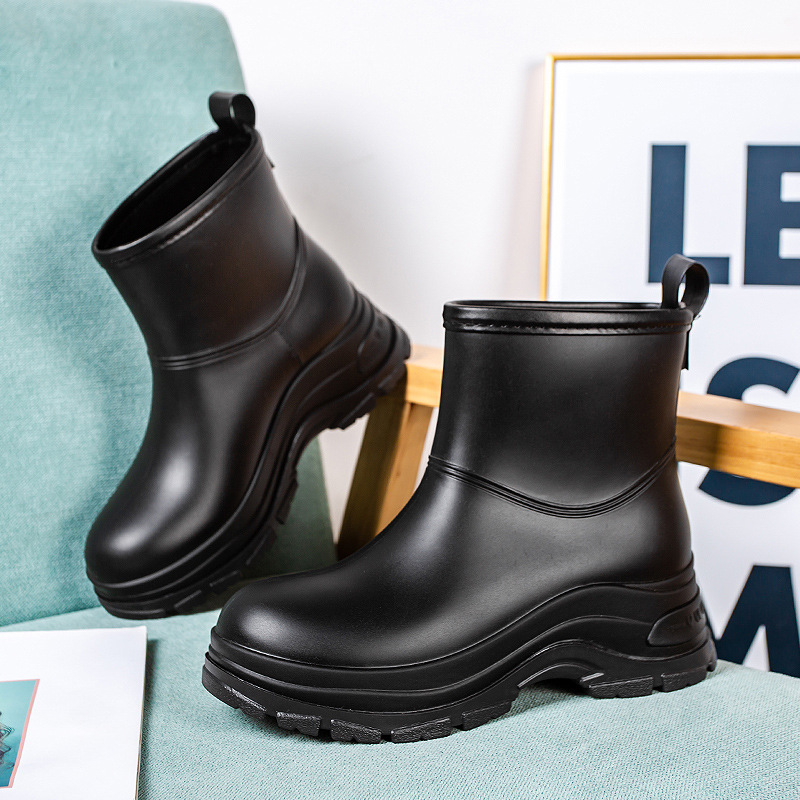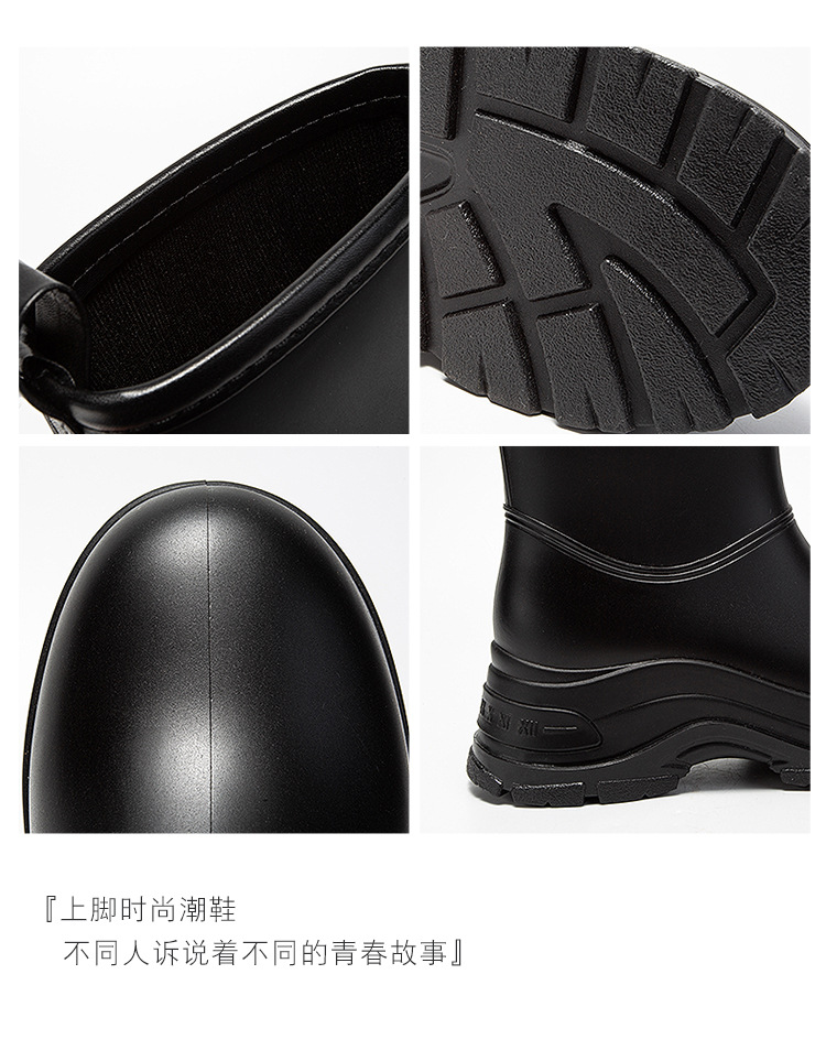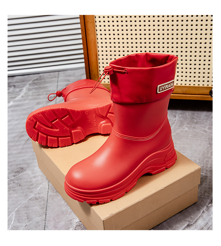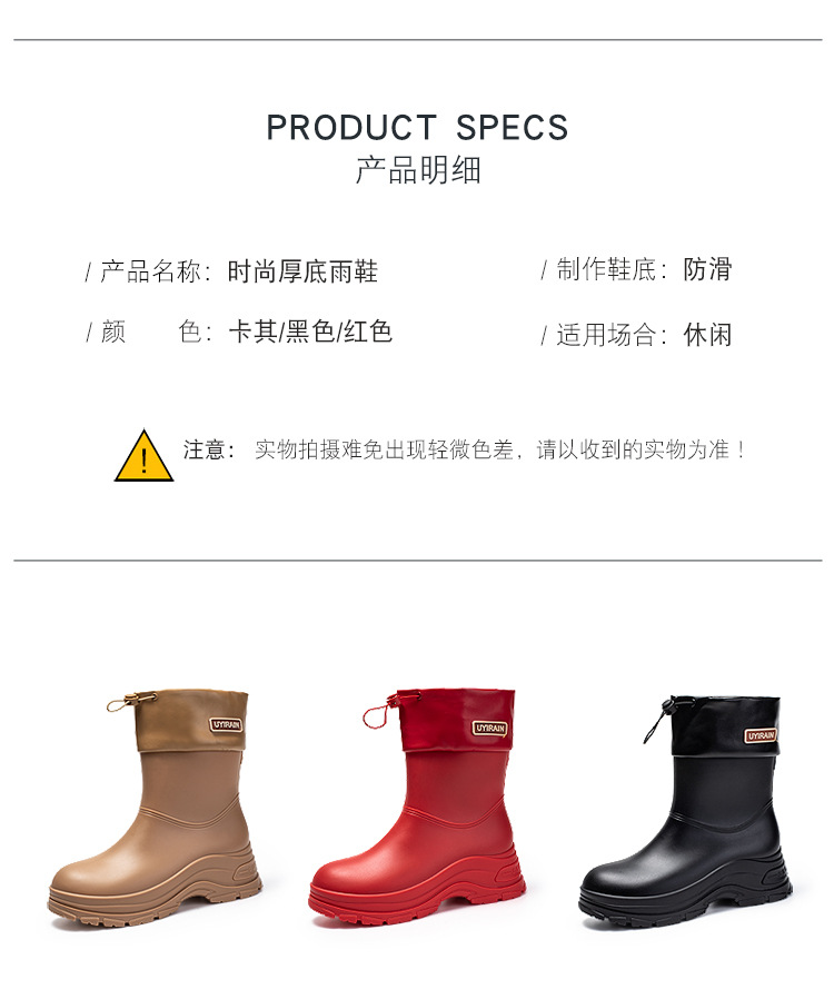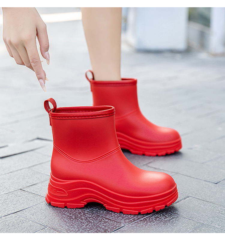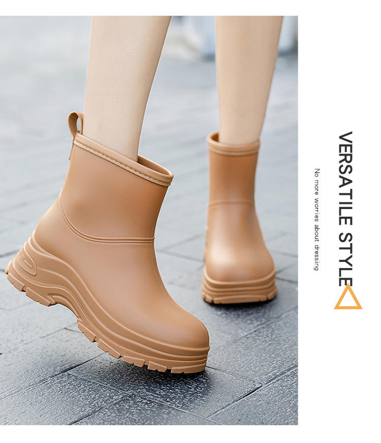 雨鞋女款2024新款中筒防水鞋网红时尚中跟胶鞋软加绒保暖雨靴批发