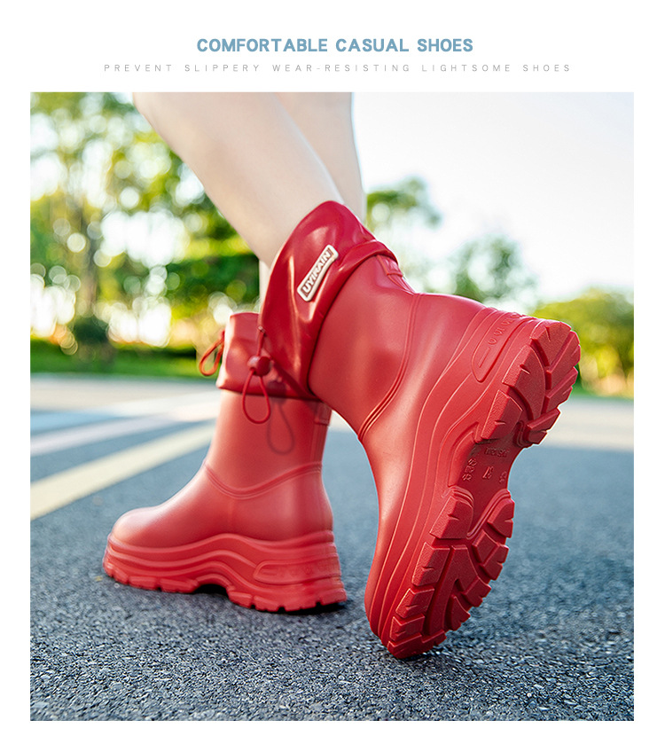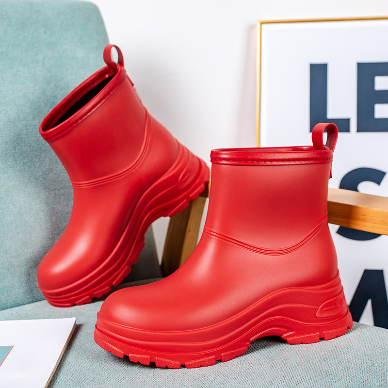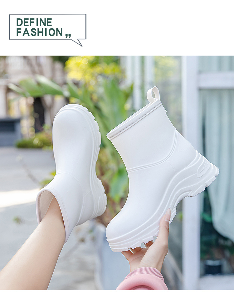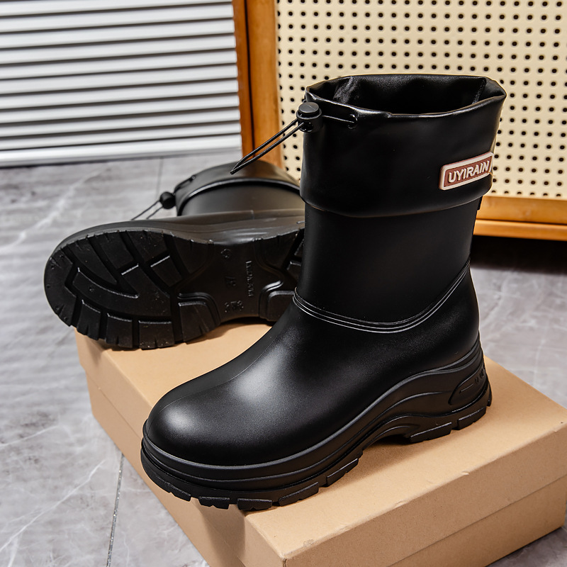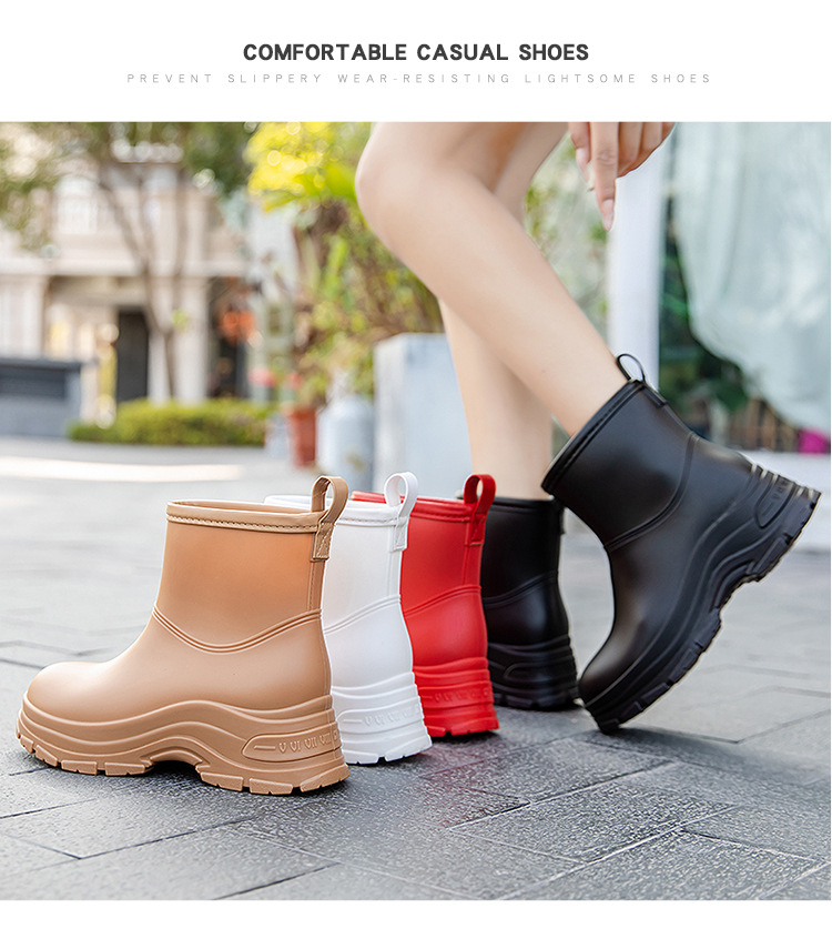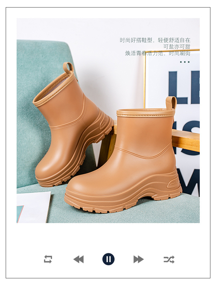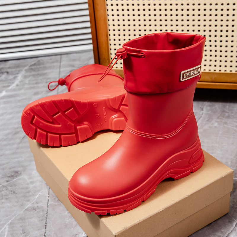 雨鞋女款2024新款中筒防水鞋网红时尚中跟胶鞋软加绒保暖雨靴批发