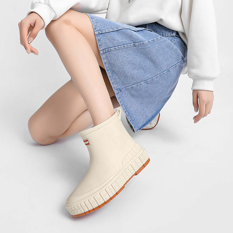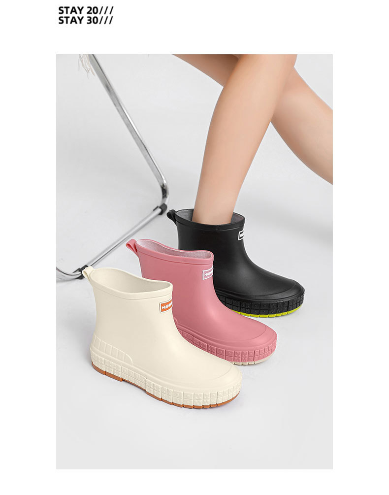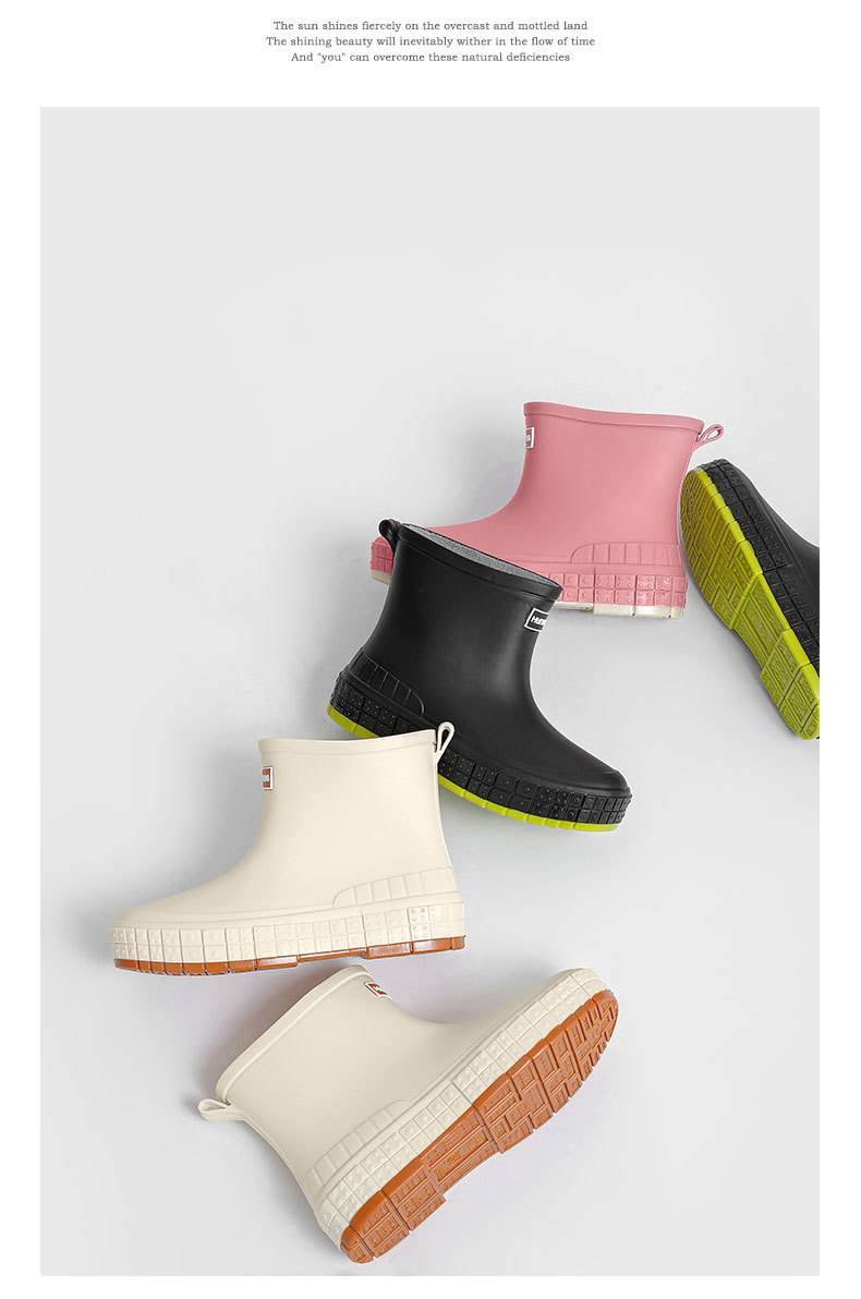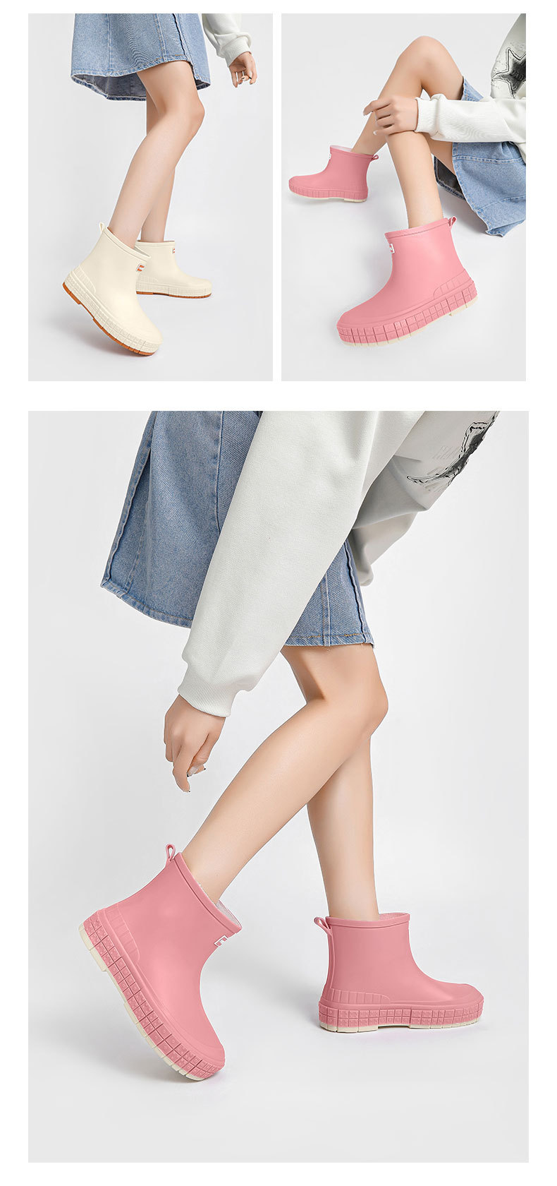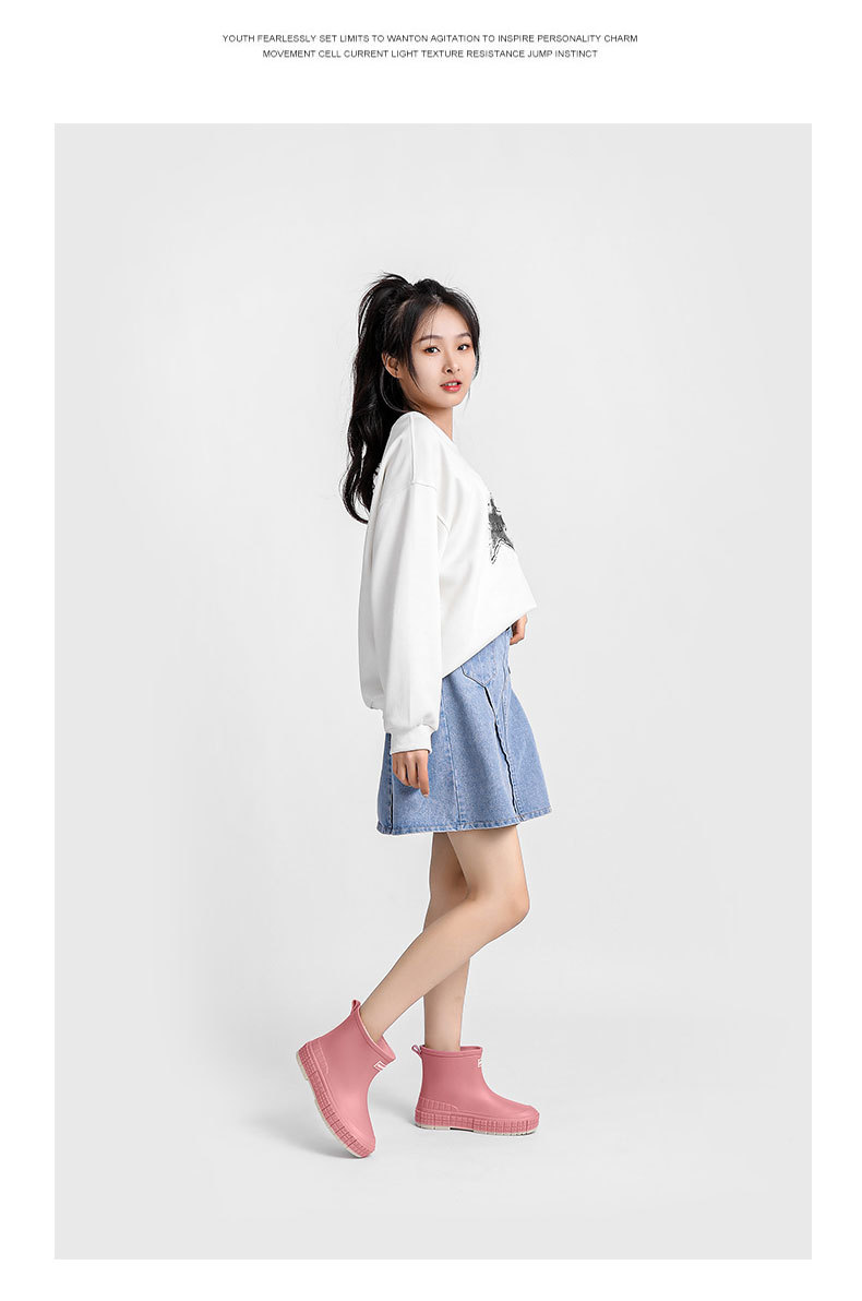糖果色女士时尚工作雨鞋厚底防滑中筒雨靴防水工装劳保套脚女鞋夏