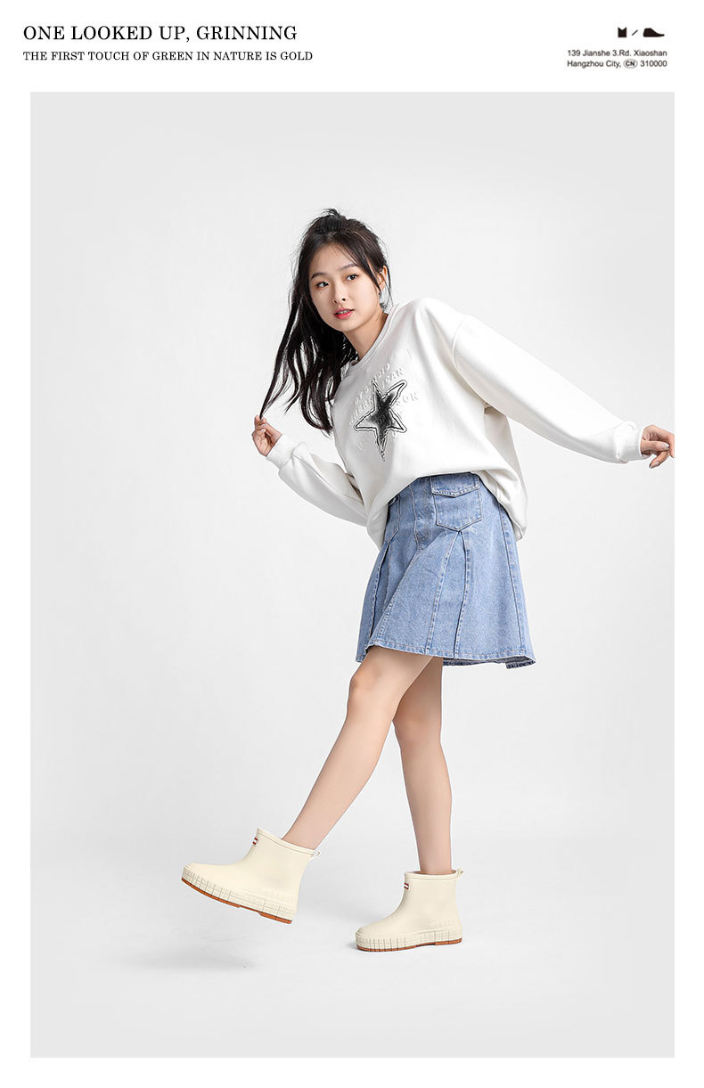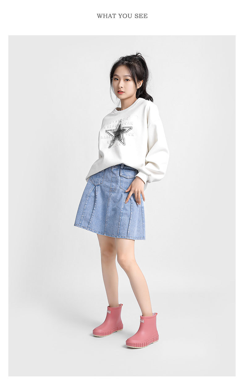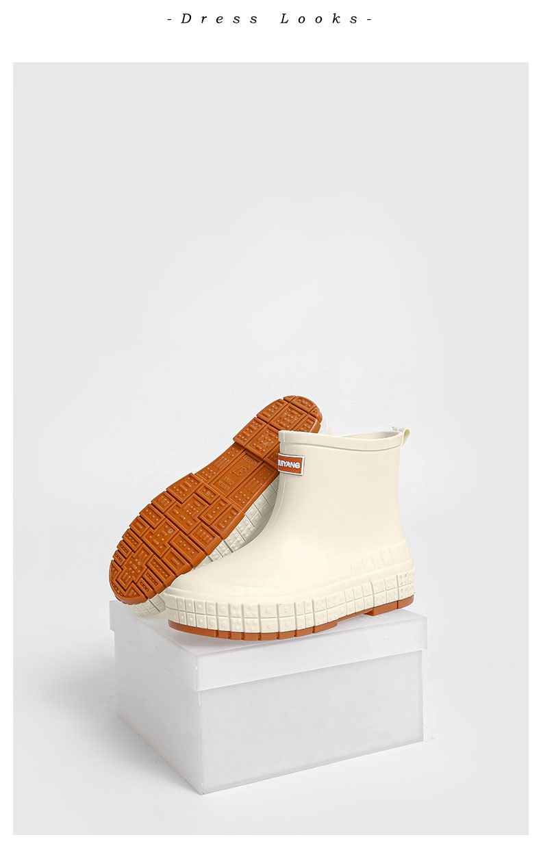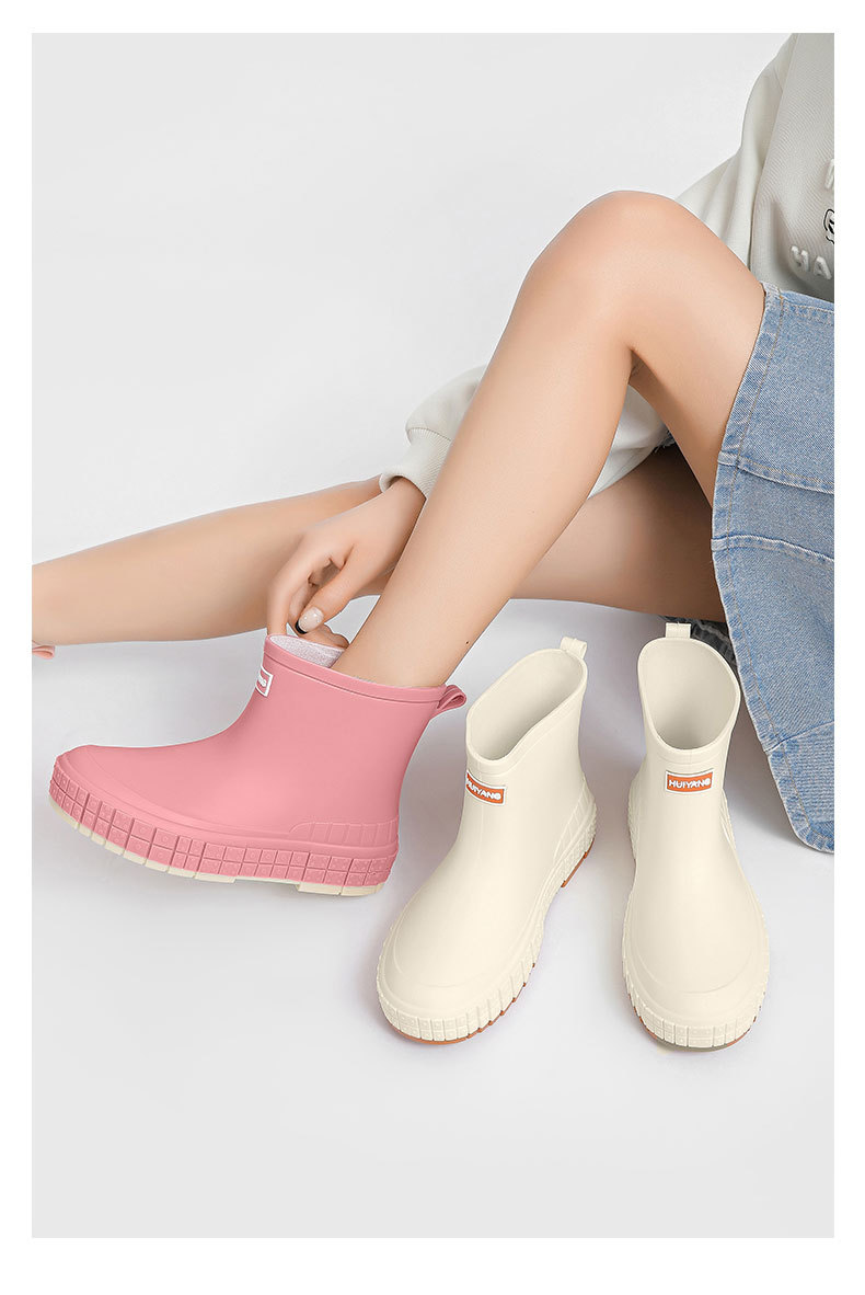 糖果色女士时尚工作雨鞋厚底防滑中筒雨靴防水工装劳保套脚女鞋夏