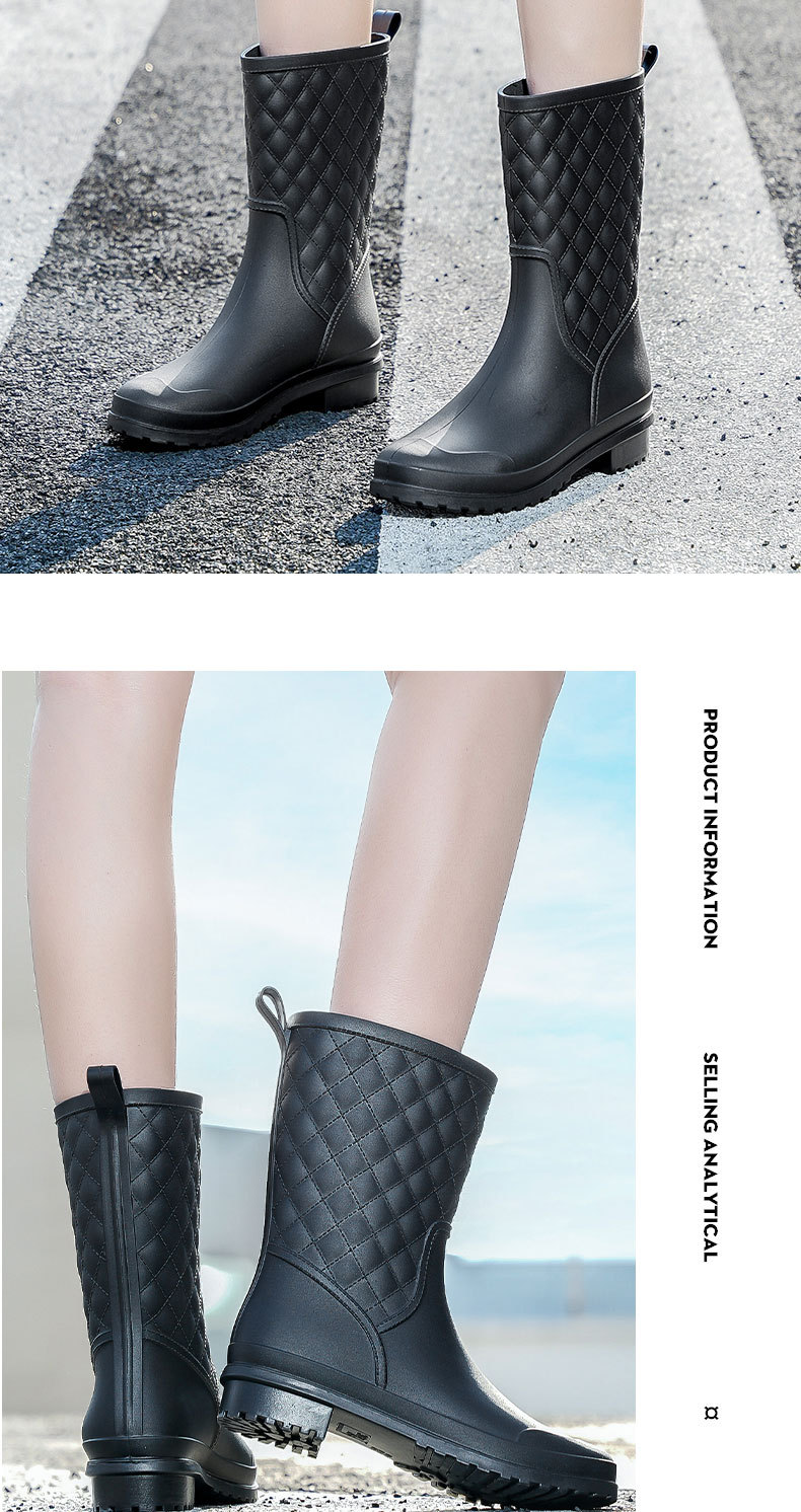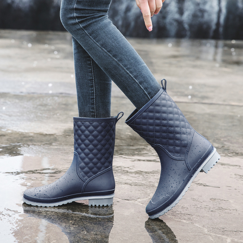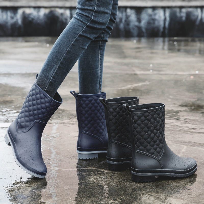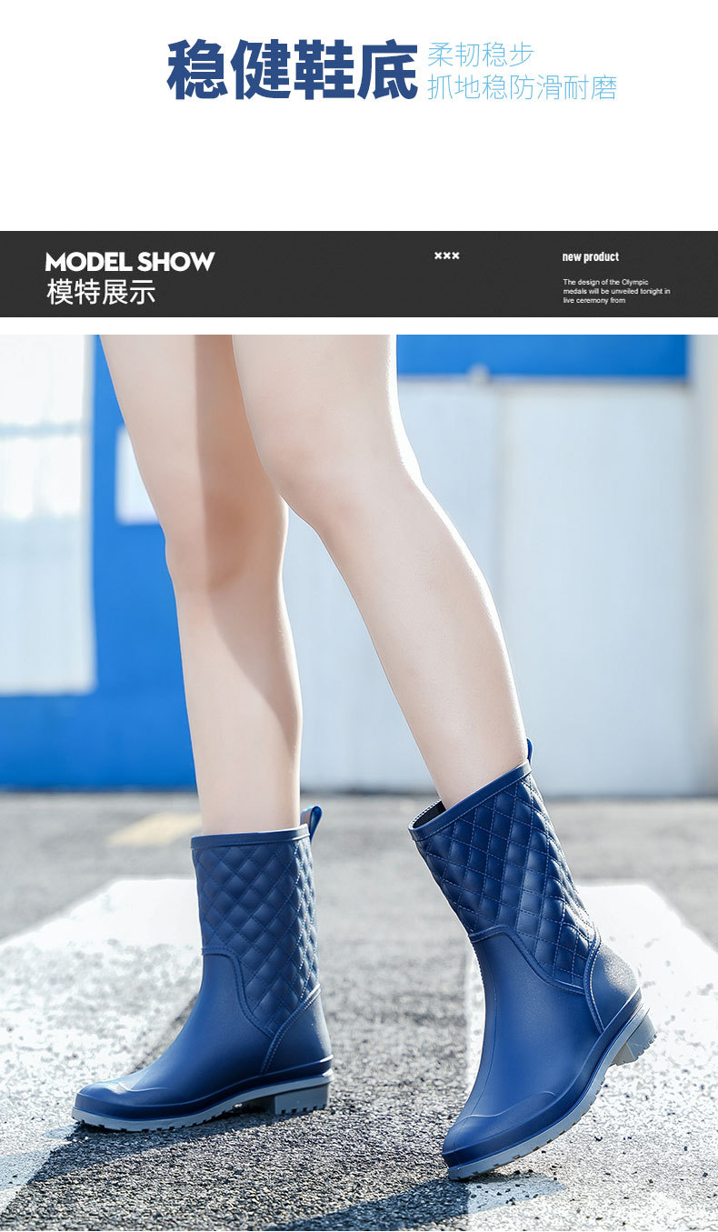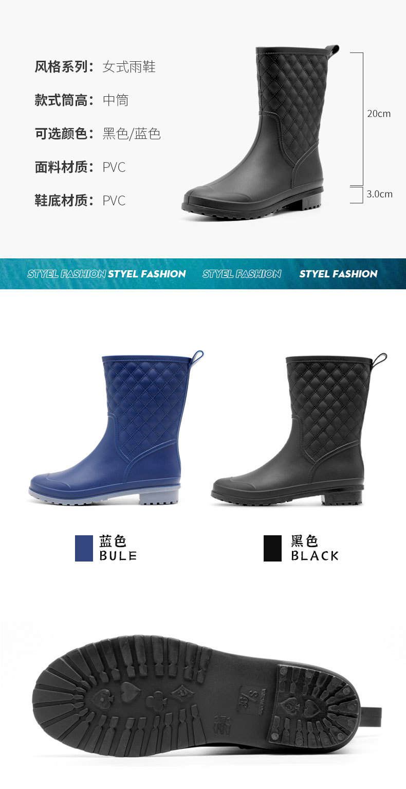 女士中筒防滑雨鞋塑胶防水雨靴格子款外穿水鞋卖鱼穿水靴一次成型