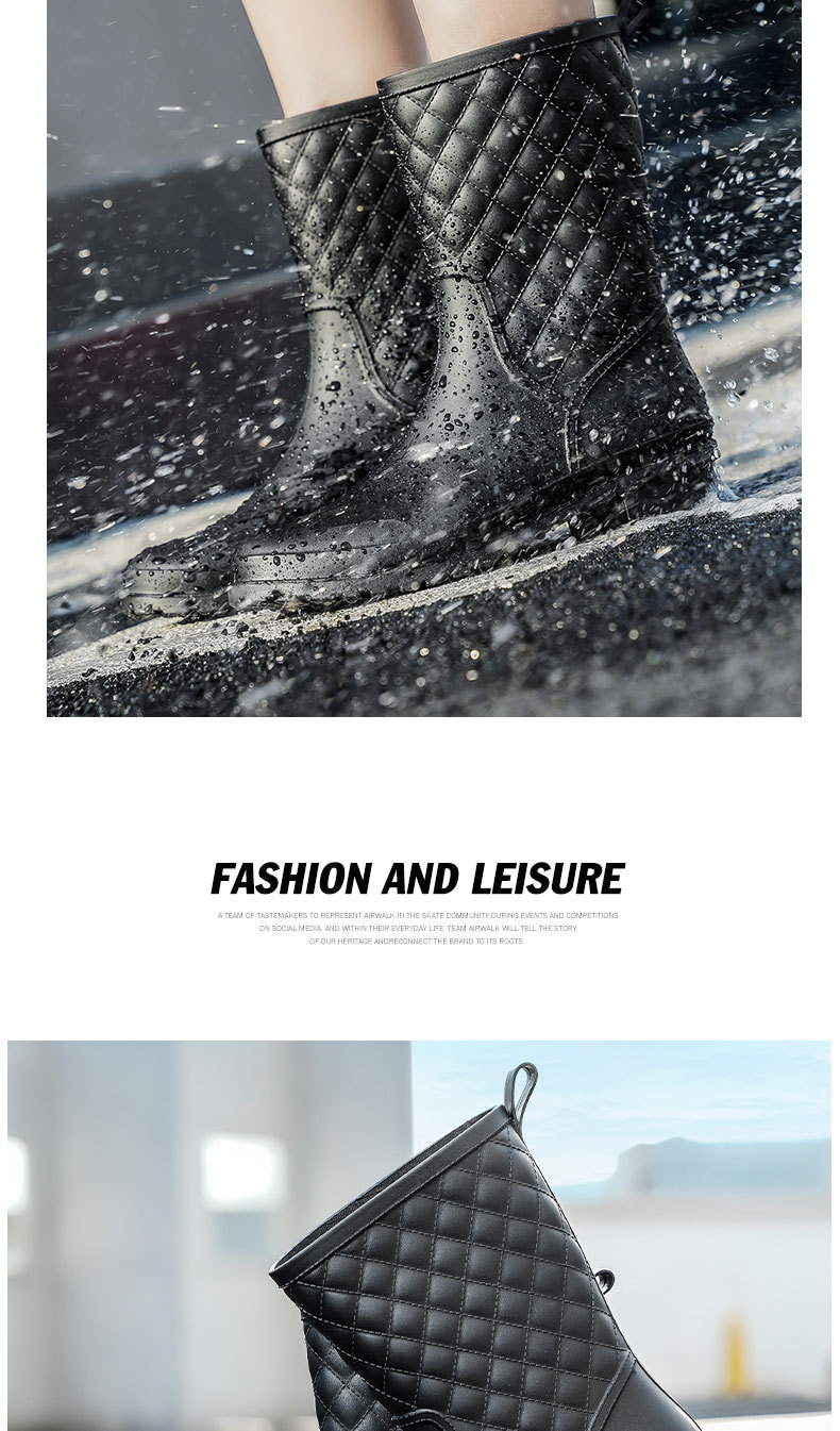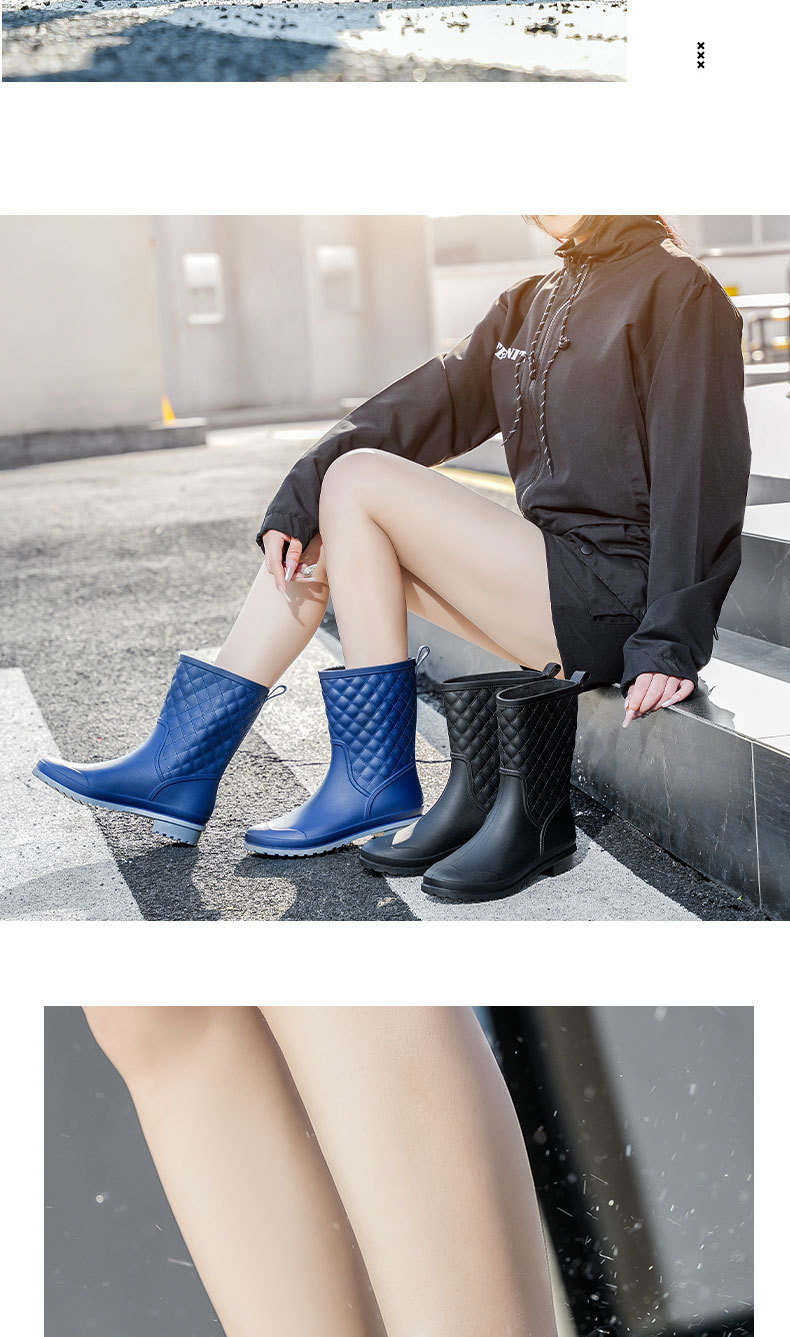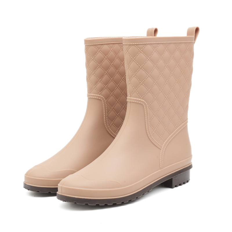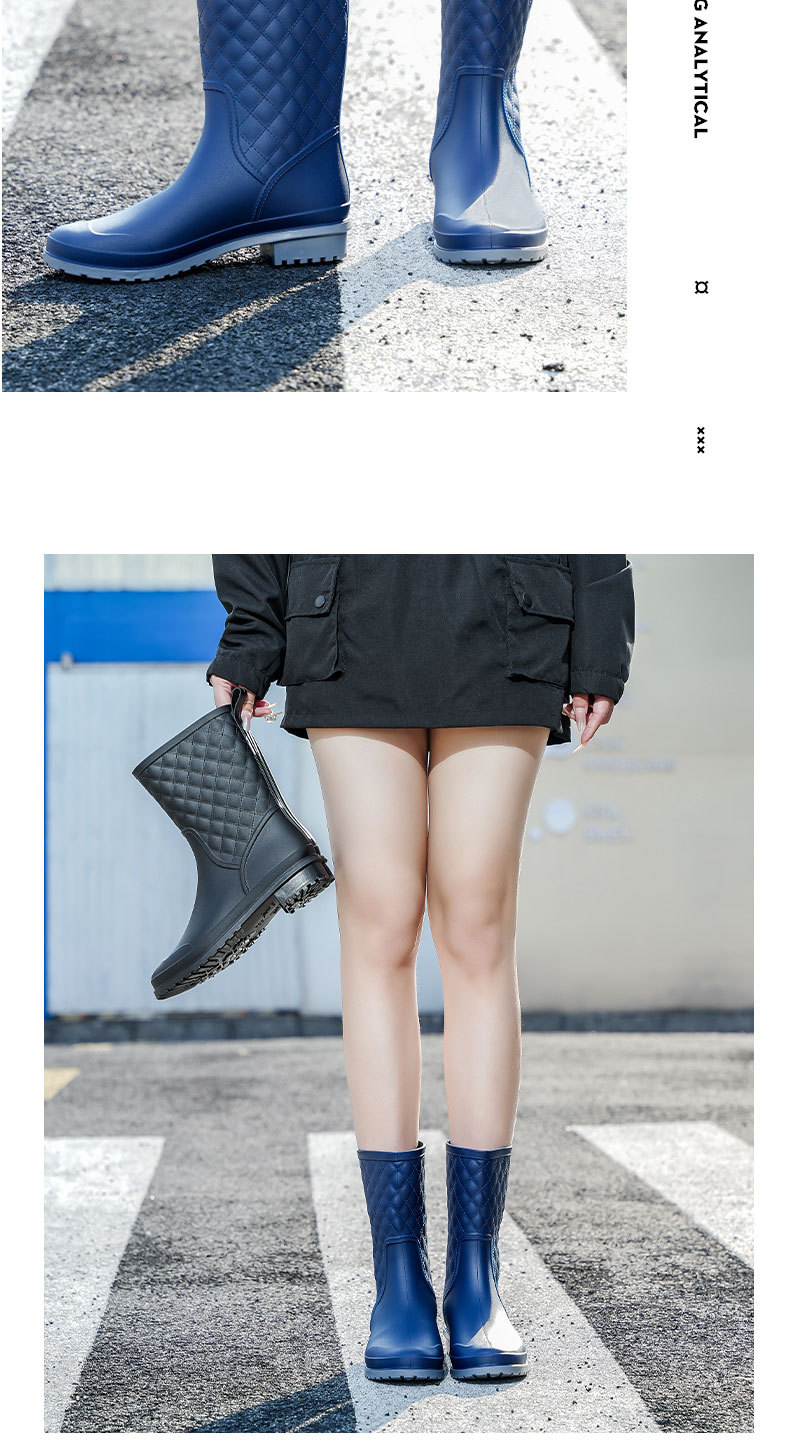 女士中筒防滑雨鞋塑胶防水雨靴格子款外穿水鞋卖鱼穿水靴一次成型