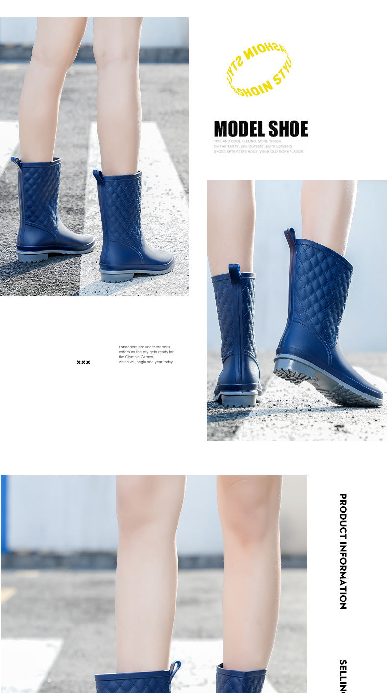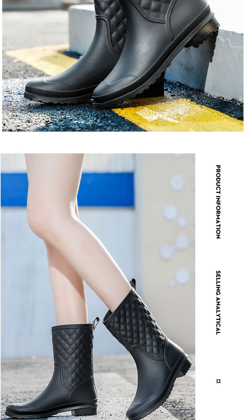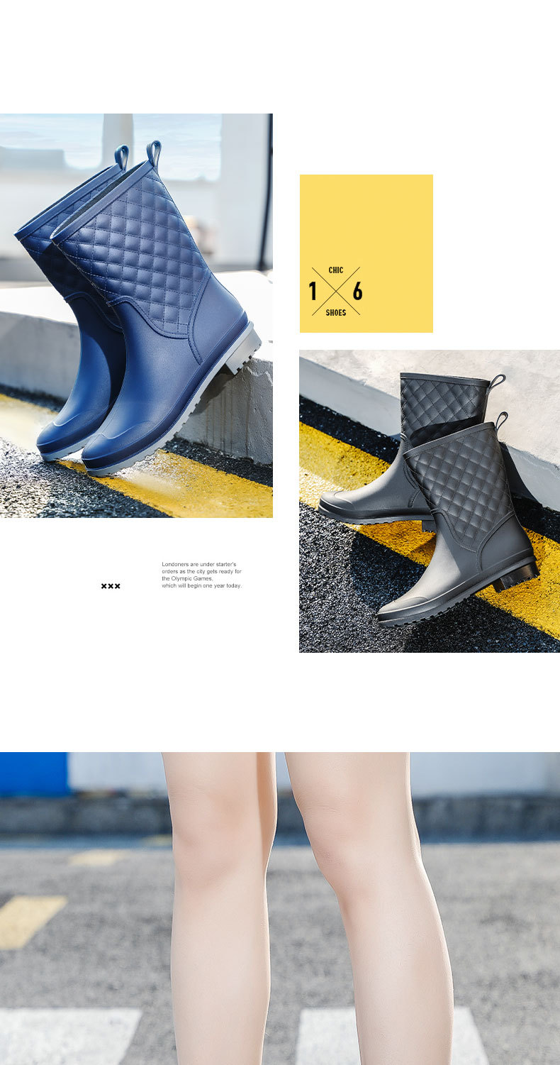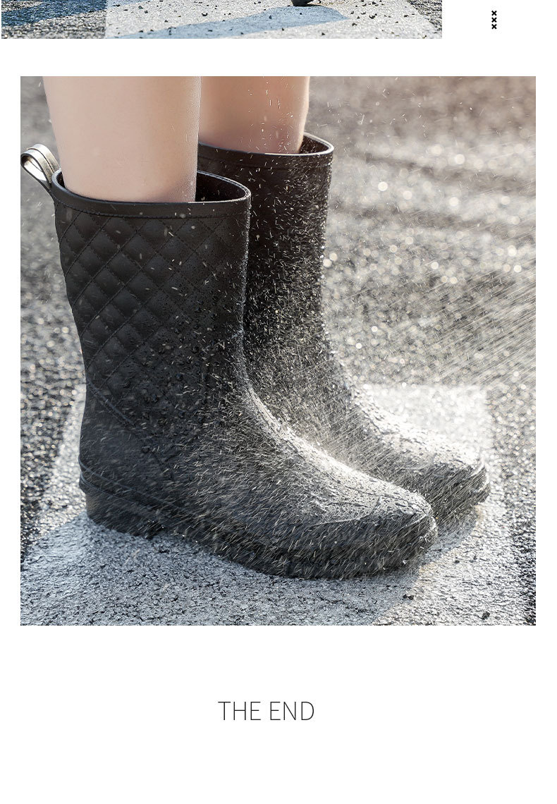 女士中筒防滑雨鞋塑胶防水雨靴格子款外穿水鞋卖鱼穿水靴一次成型