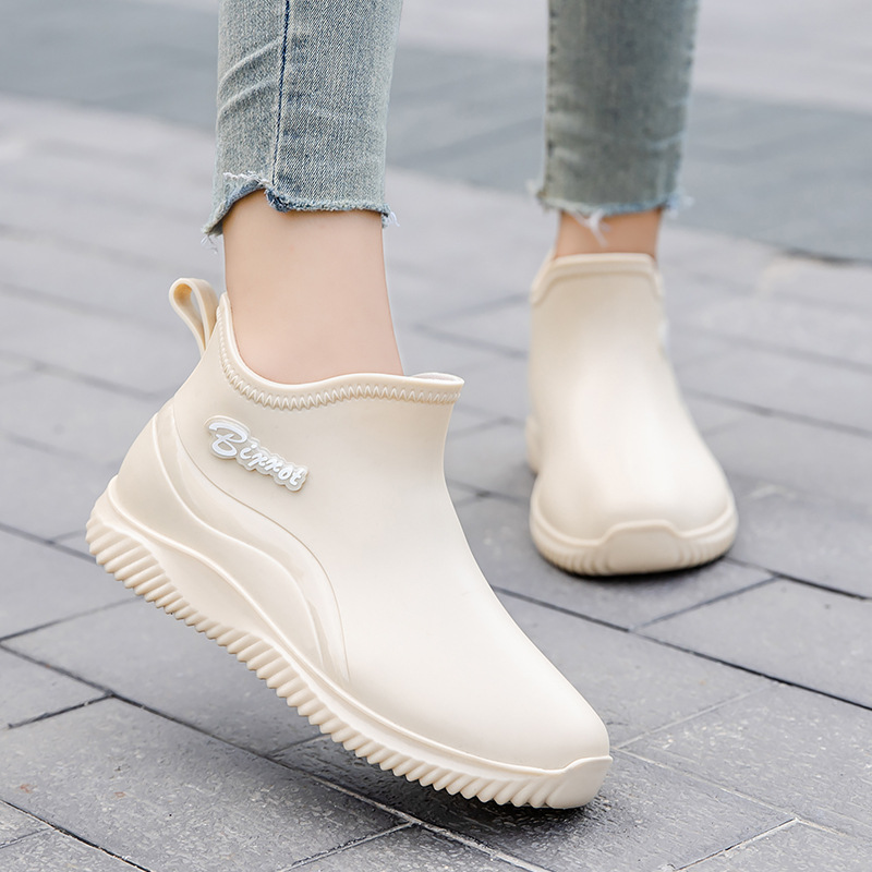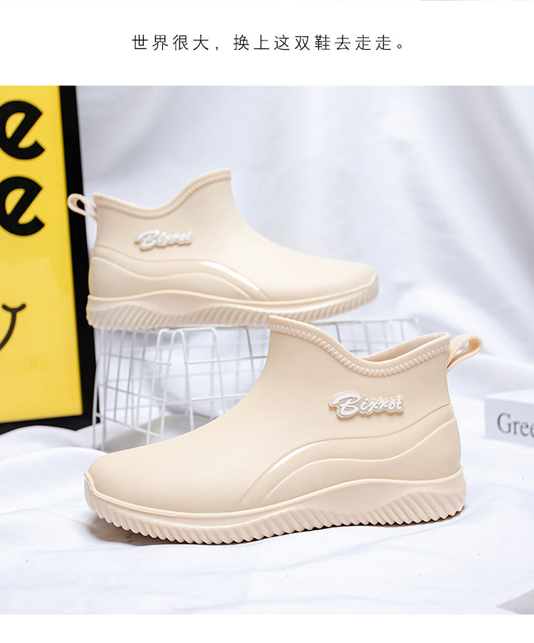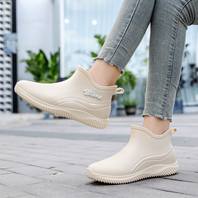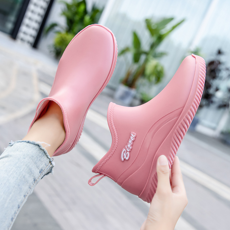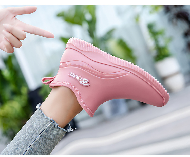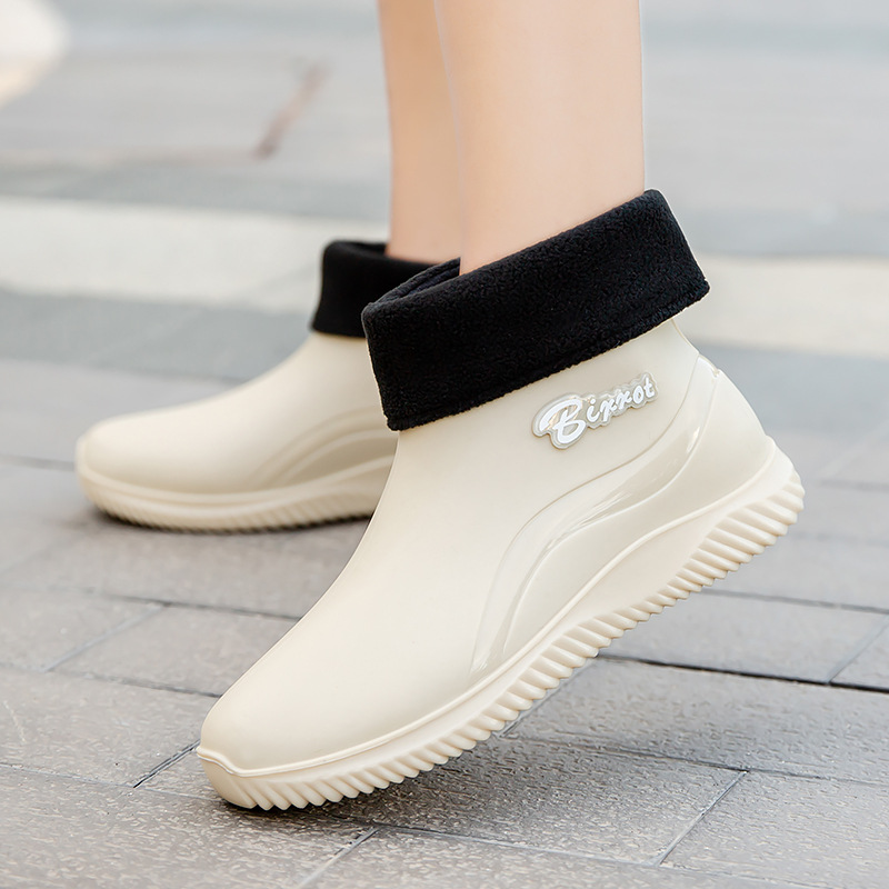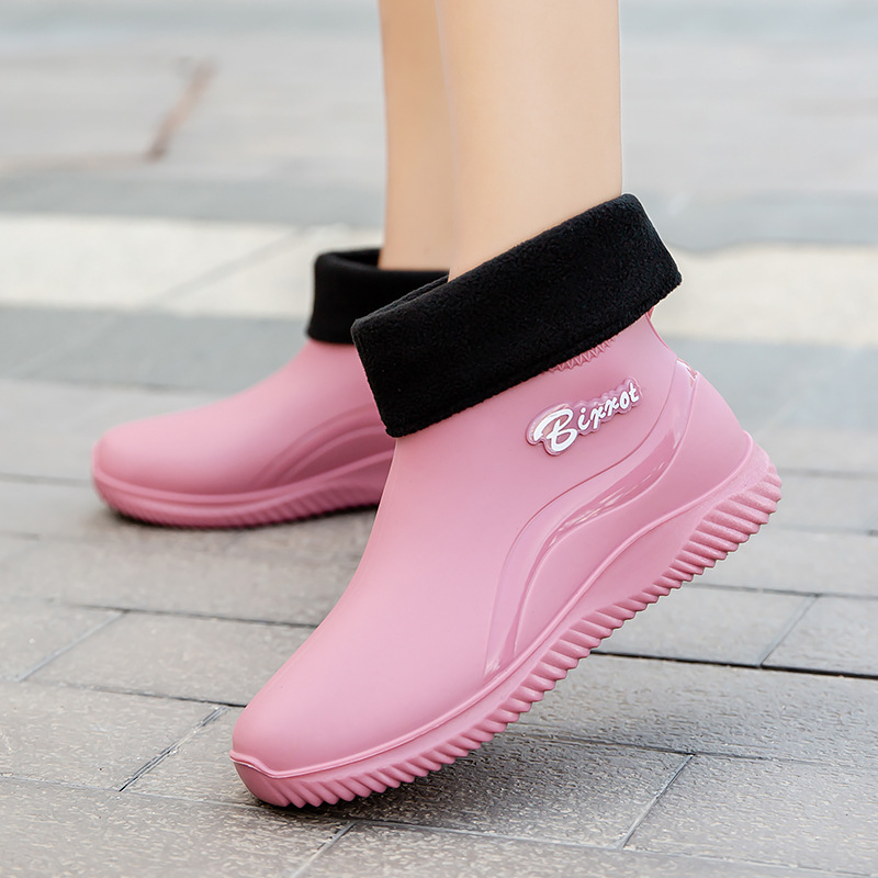 日系女士雨鞋低帮时尚外穿加绒可拆卸软底雨靴厨房工作防滑防水鞋
