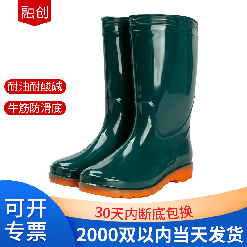 雨靴 女式中筒蓝色PVC橡胶厨房防滑雨鞋成人户外休闲防水鞋定制