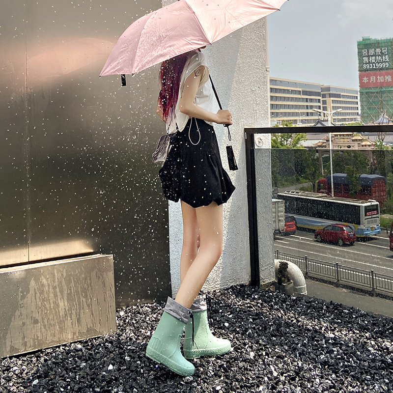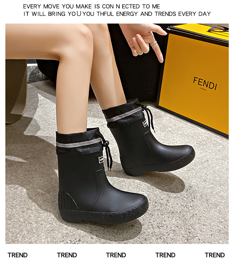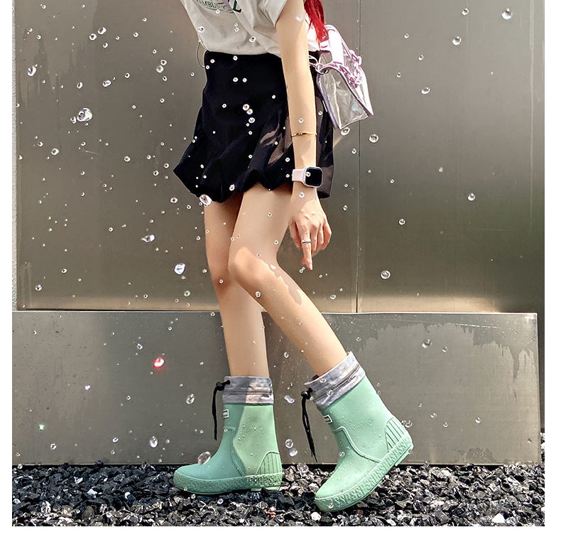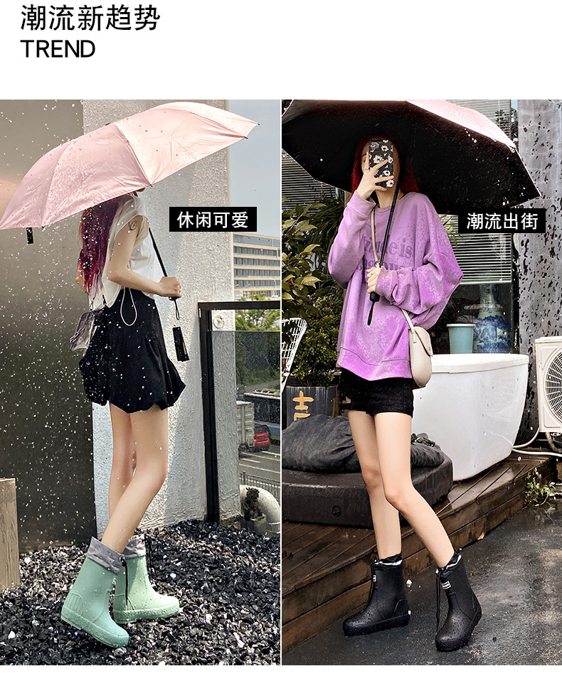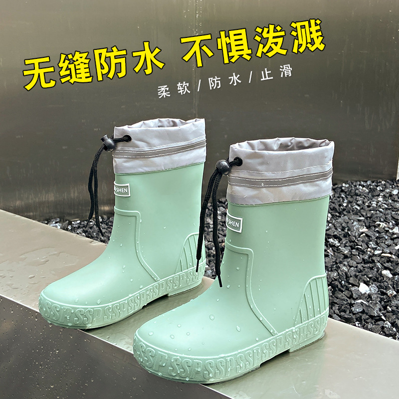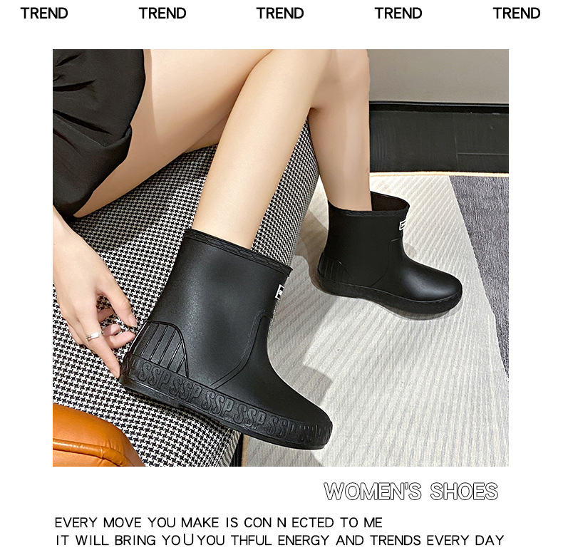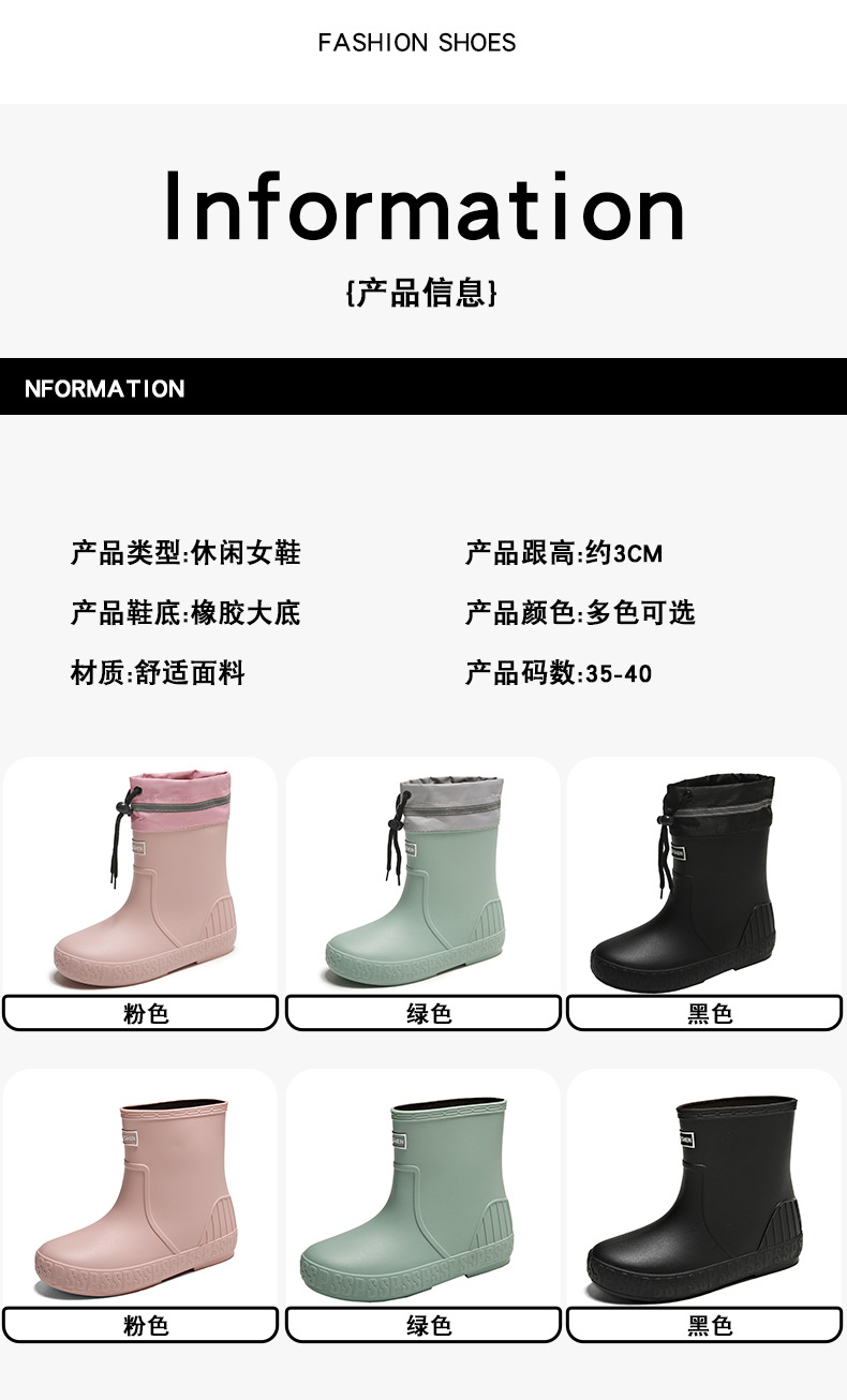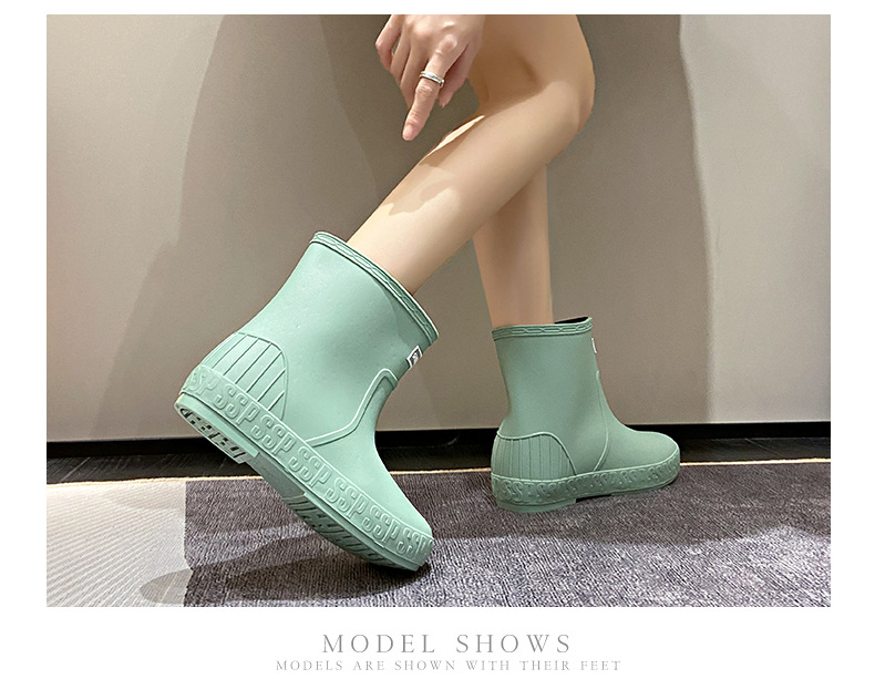跨境专供时尚雨鞋女款中短筒雨靴防滑束口防水鞋成人厨房工作胶鞋