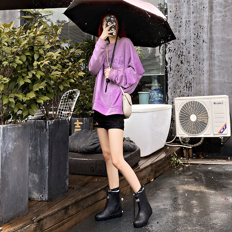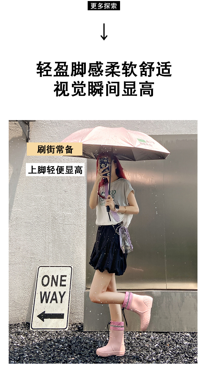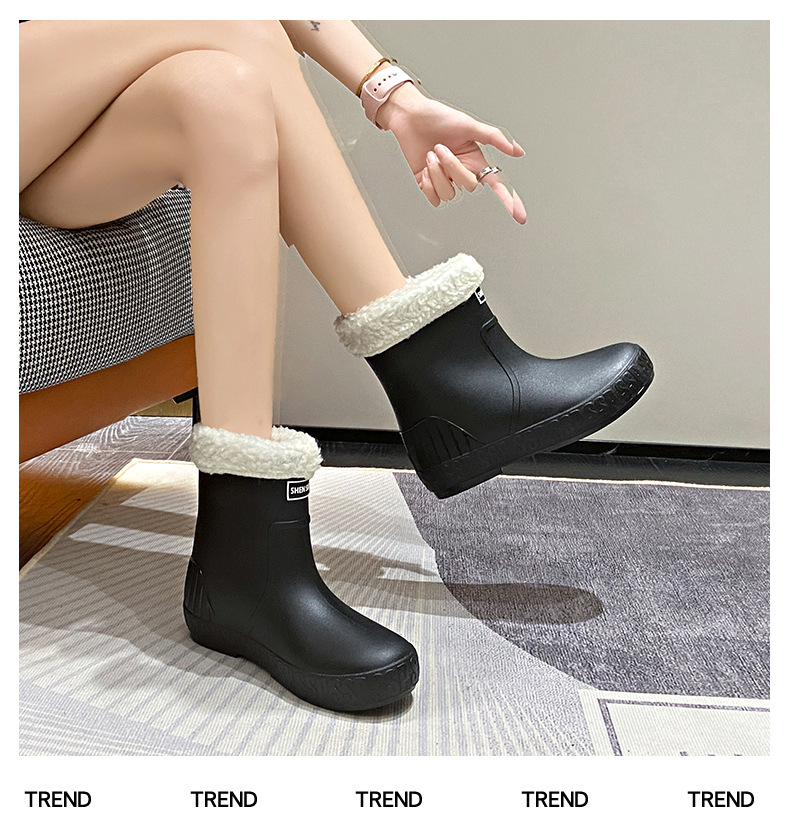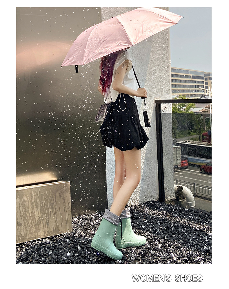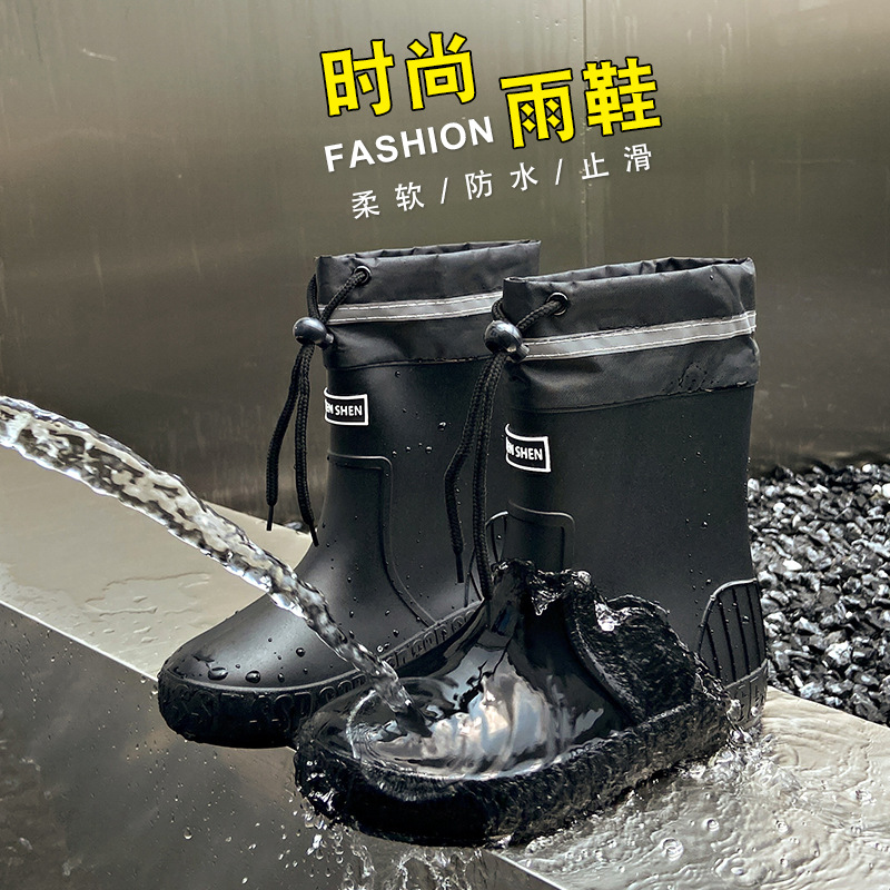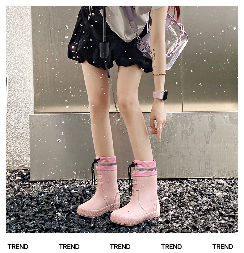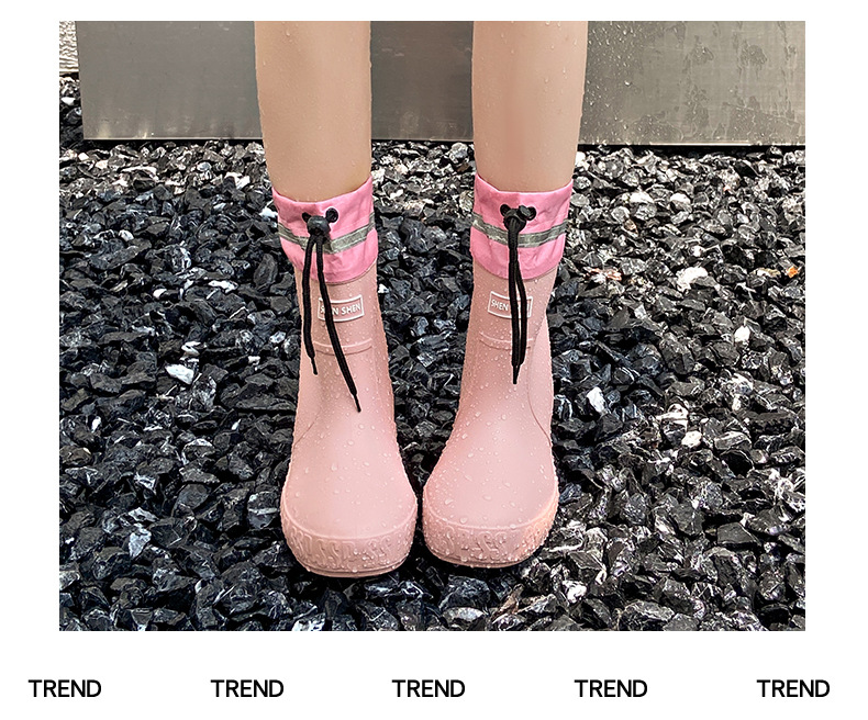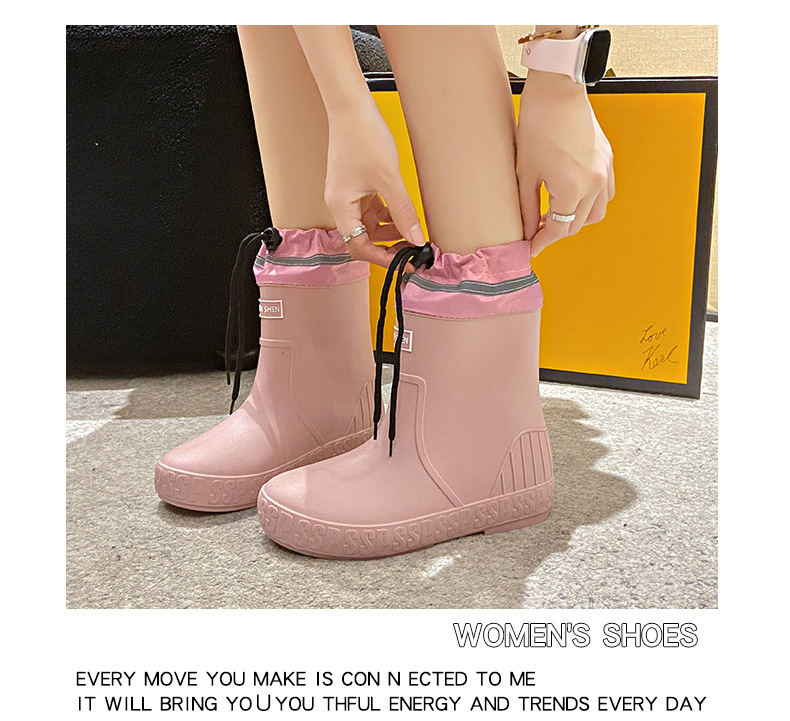 跨境专供时尚雨鞋女款中短筒雨靴防滑束口防水鞋成人厨房工作胶鞋