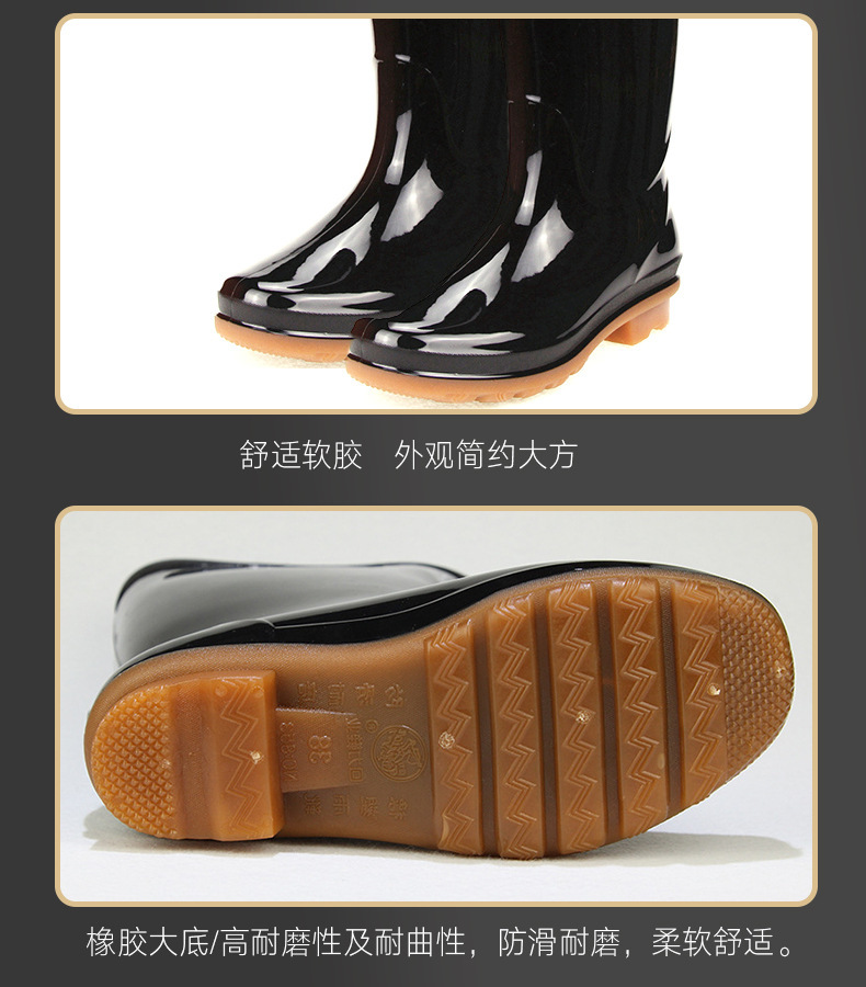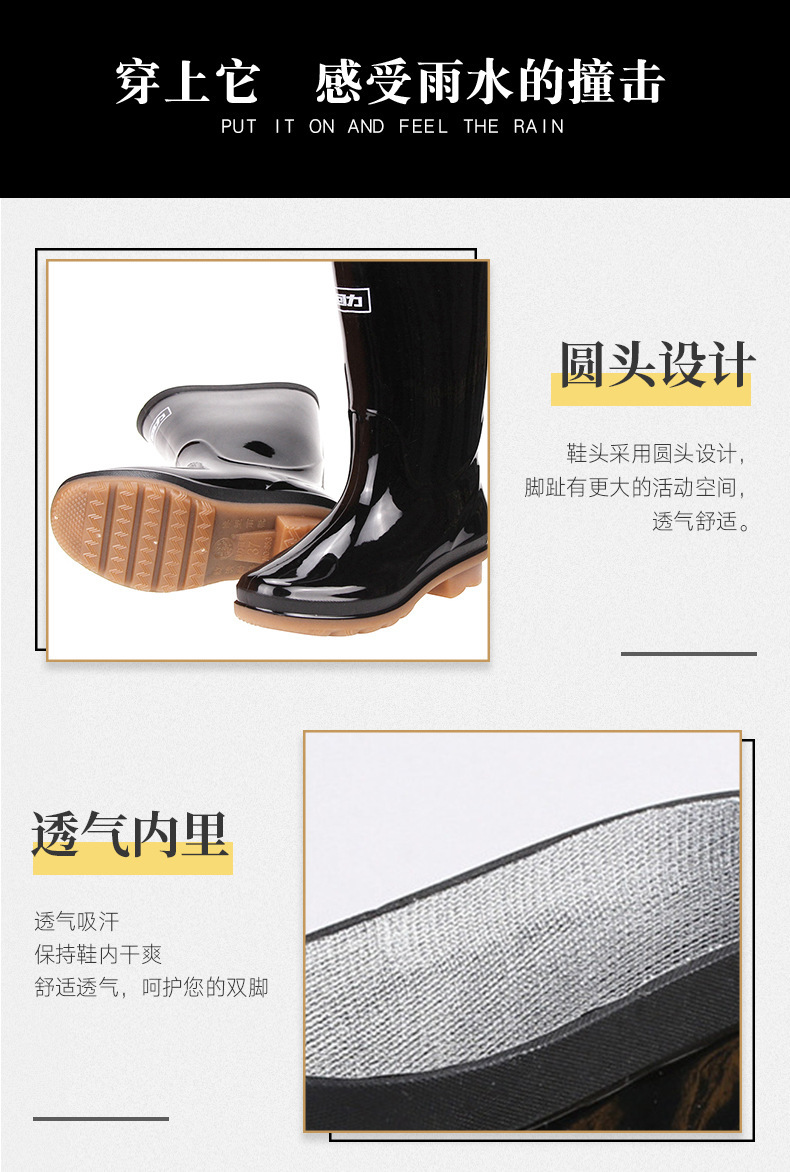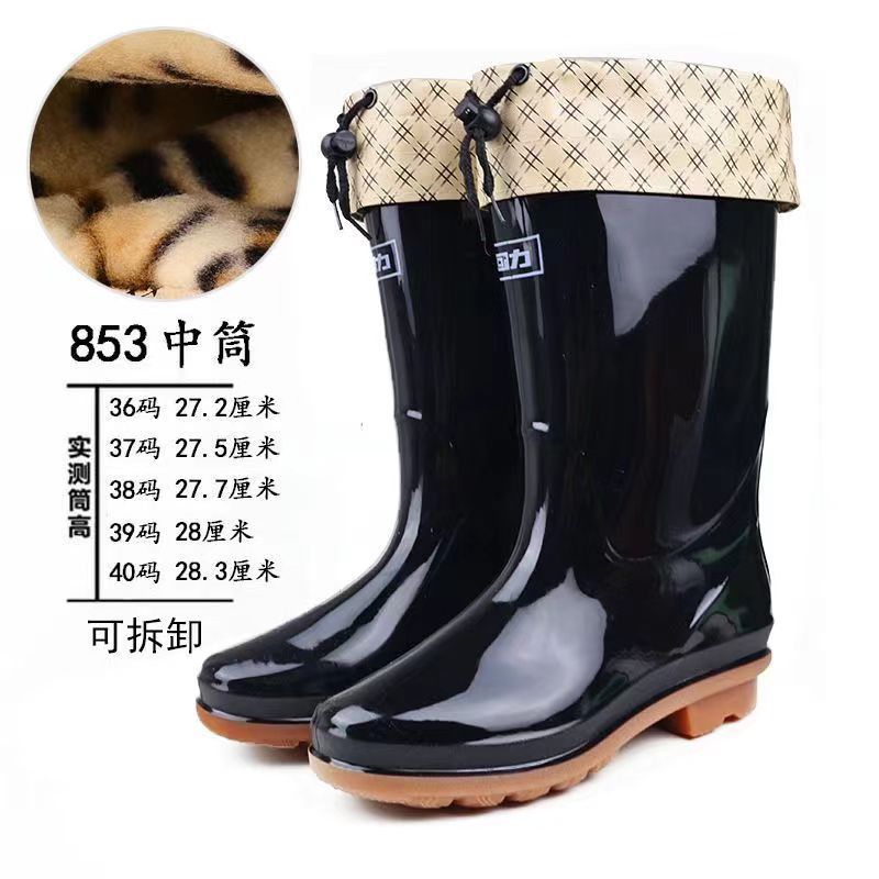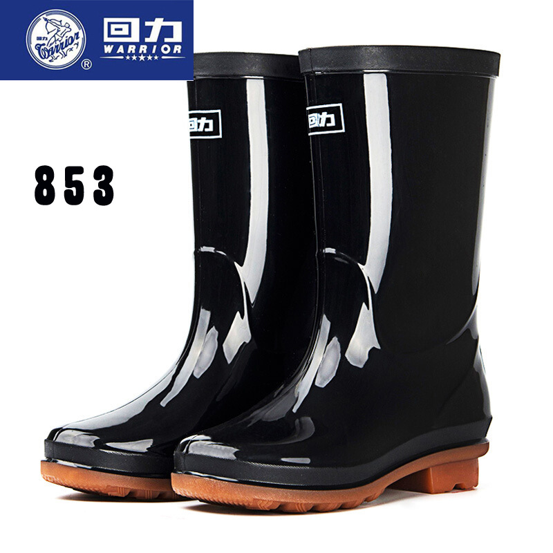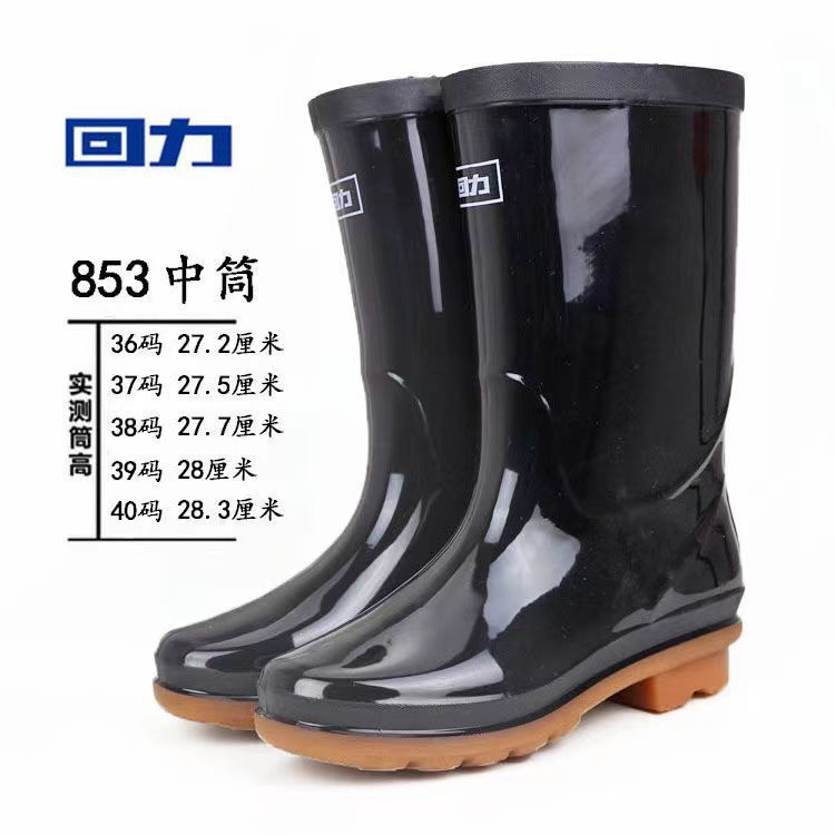 回力雨鞋女853女中筒低跟雨鞋牛筋底防水防滑耐磨工作劳保雨靴