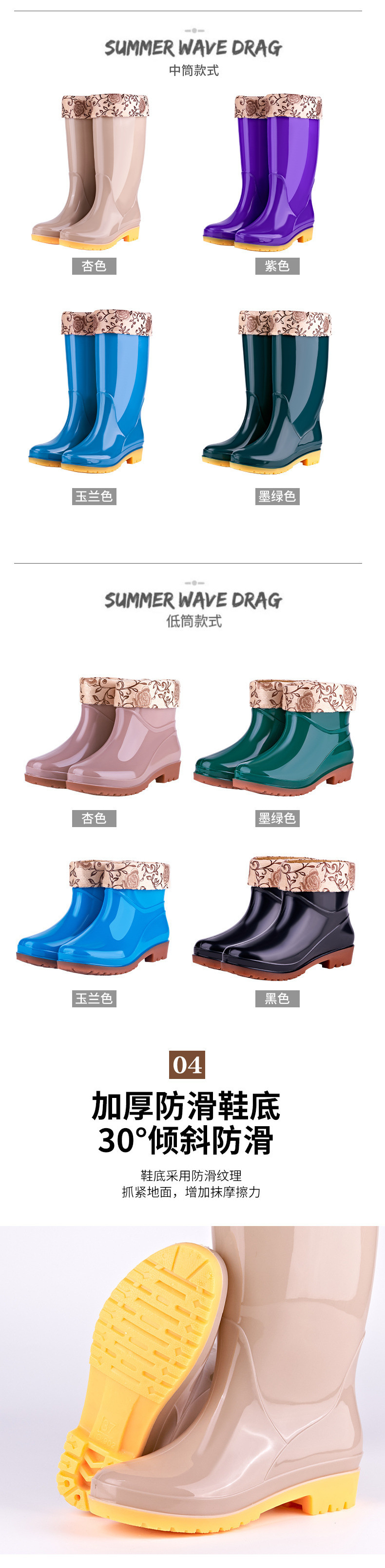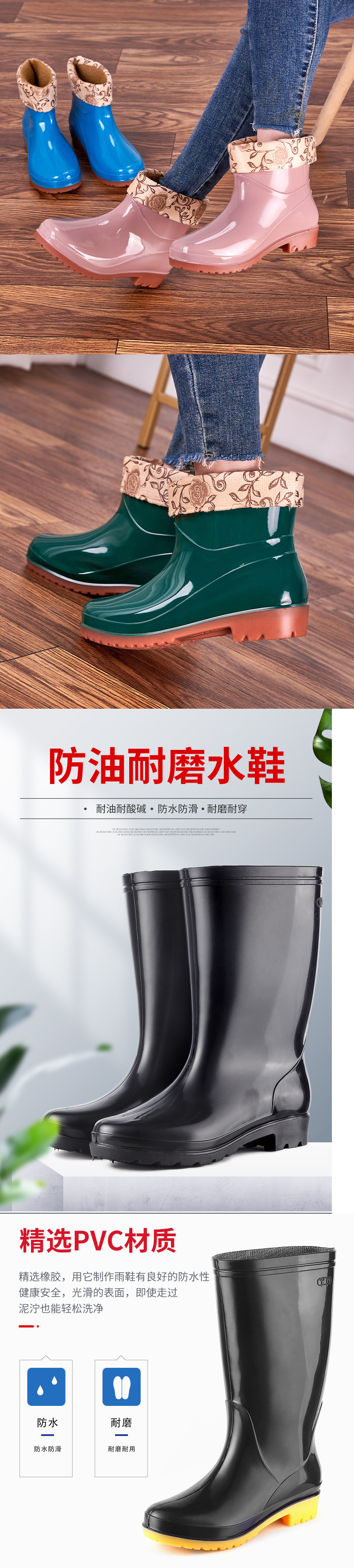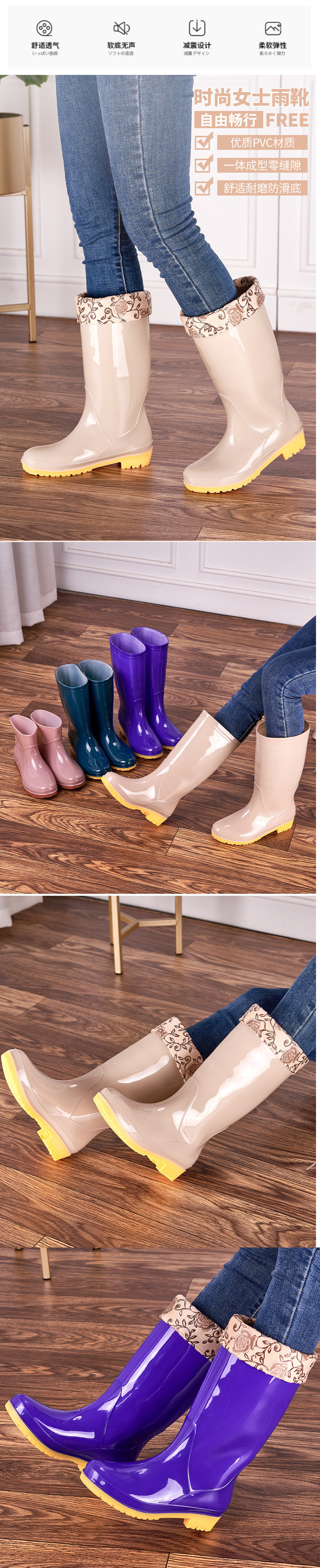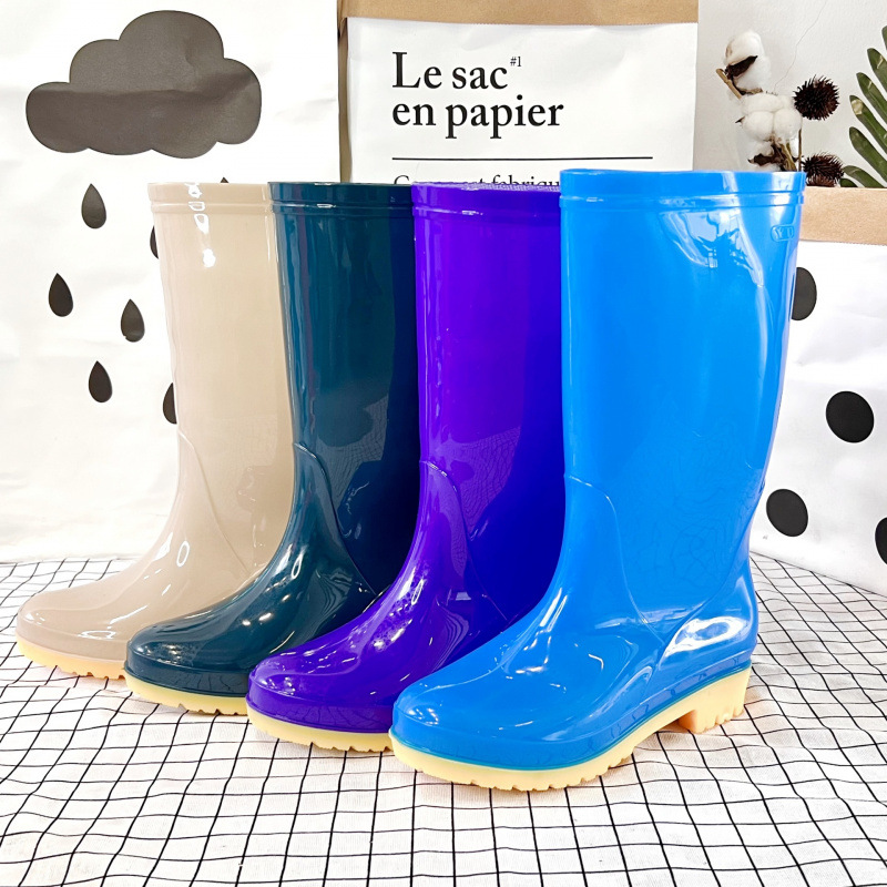 低跟时尚长筒雨靴女款防滑高筒水鞋厨房pvc女士雨鞋高帮女软胶鞋