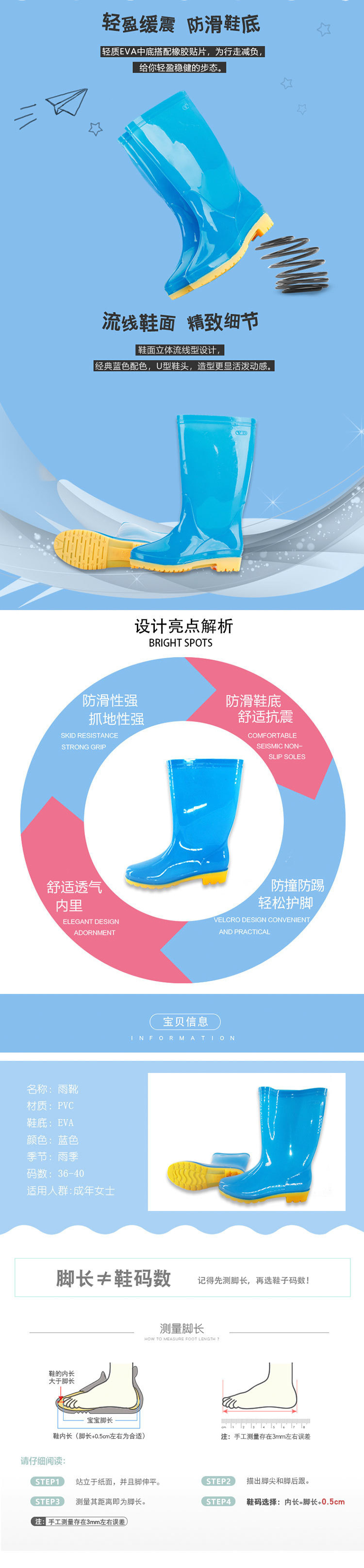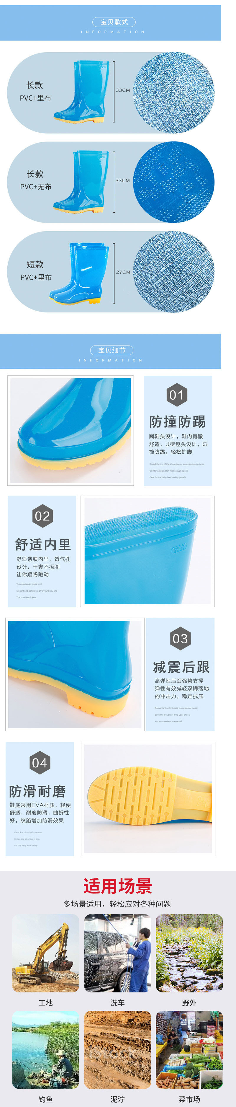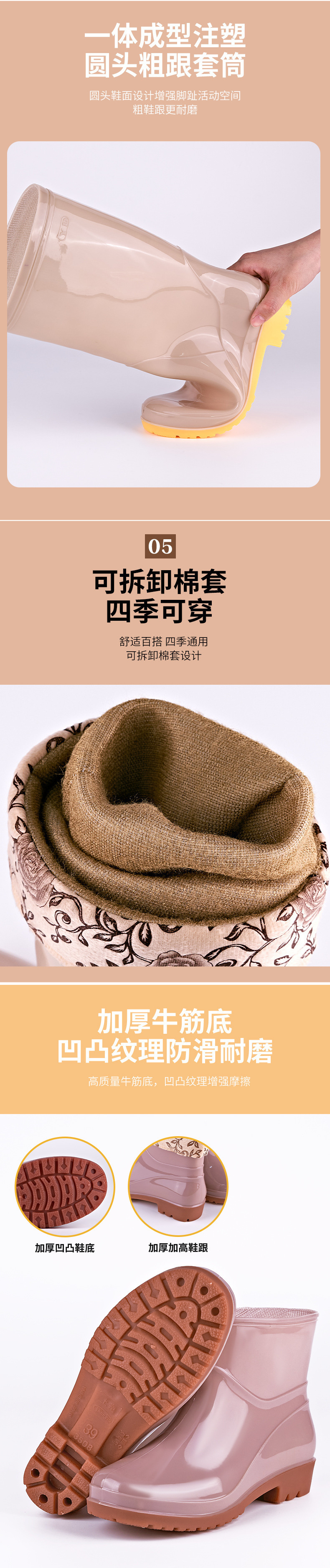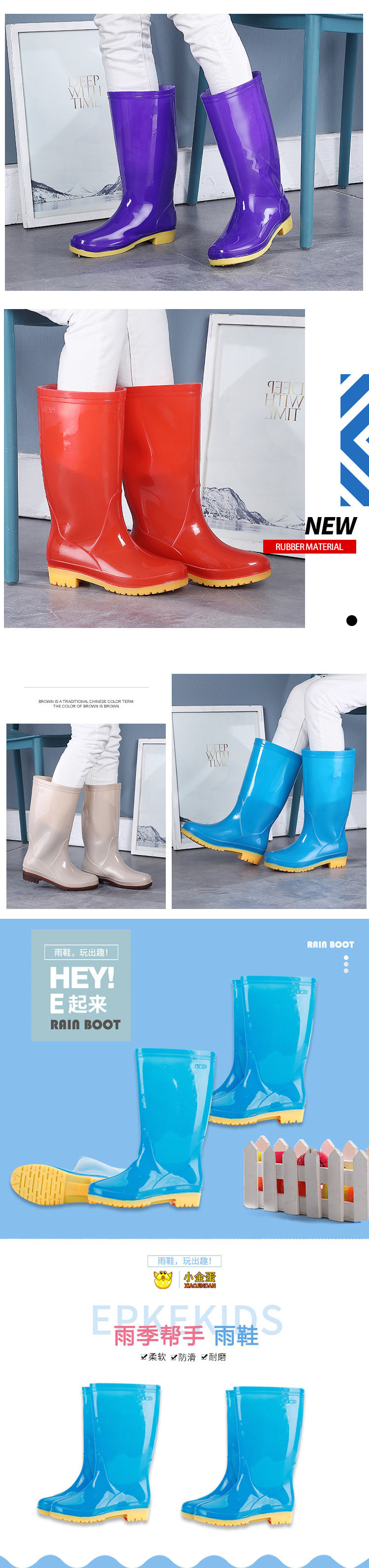 低跟时尚长筒雨靴女款防滑高筒水鞋厨房pvc女士雨鞋高帮女软胶鞋