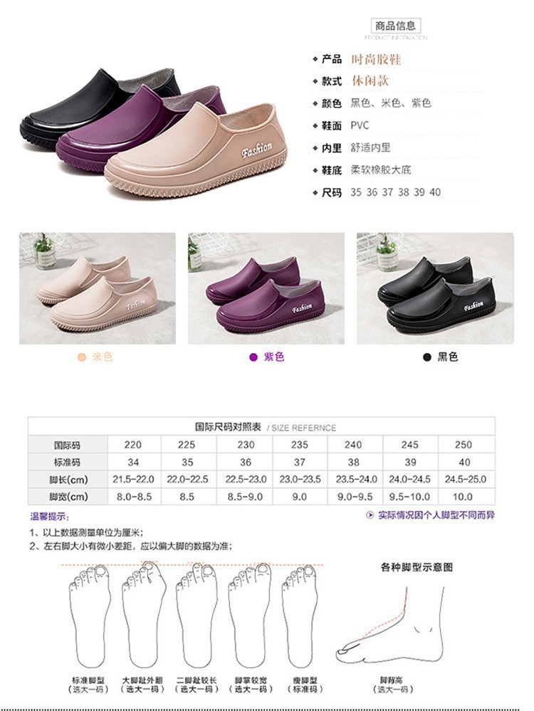 春秋时尚浅口雨鞋女防水防滑平底雨靴女四季耐磨洗车厨房工作胶鞋