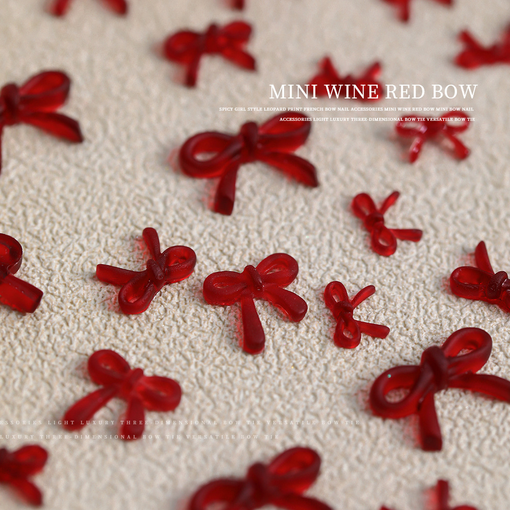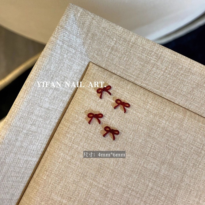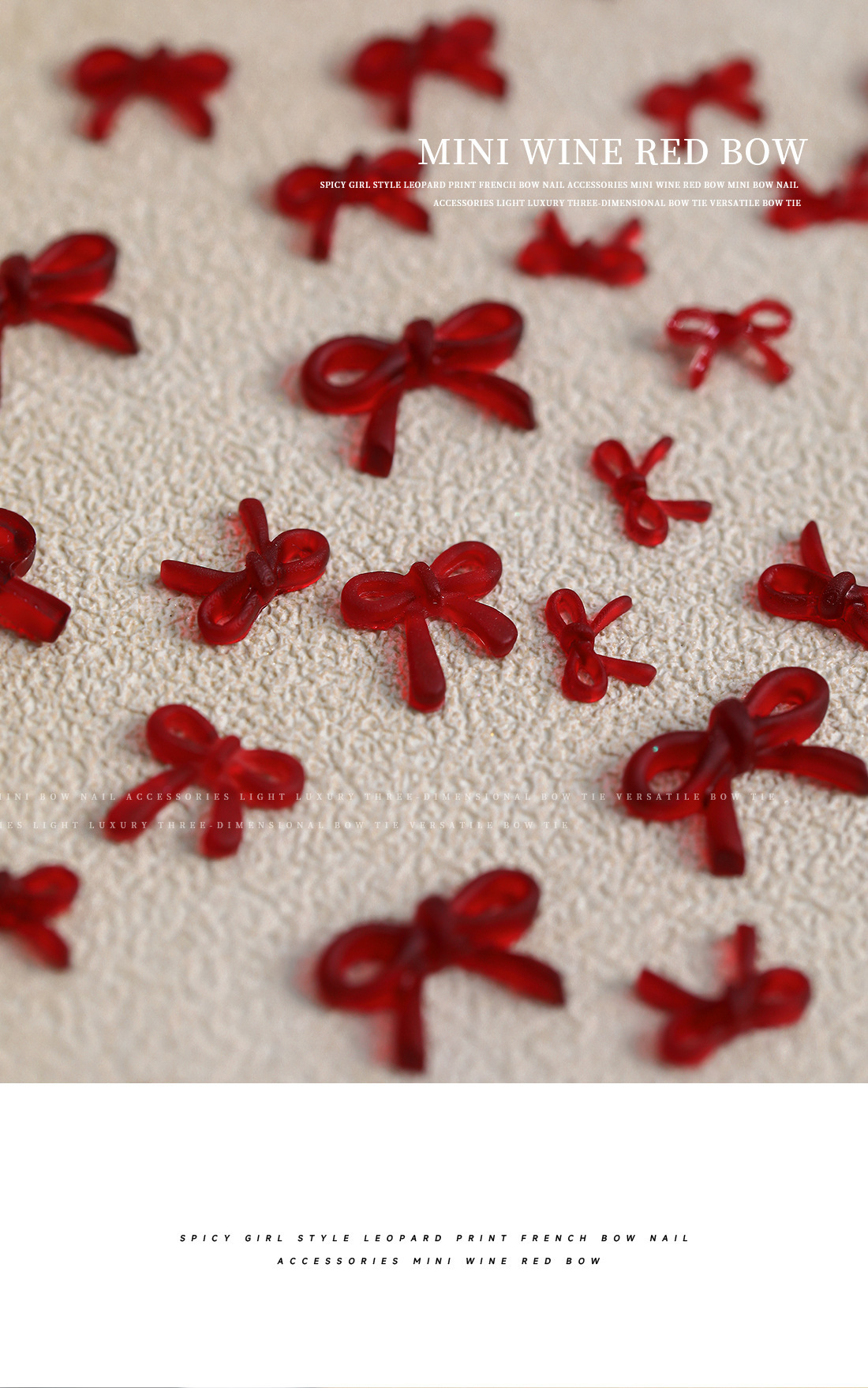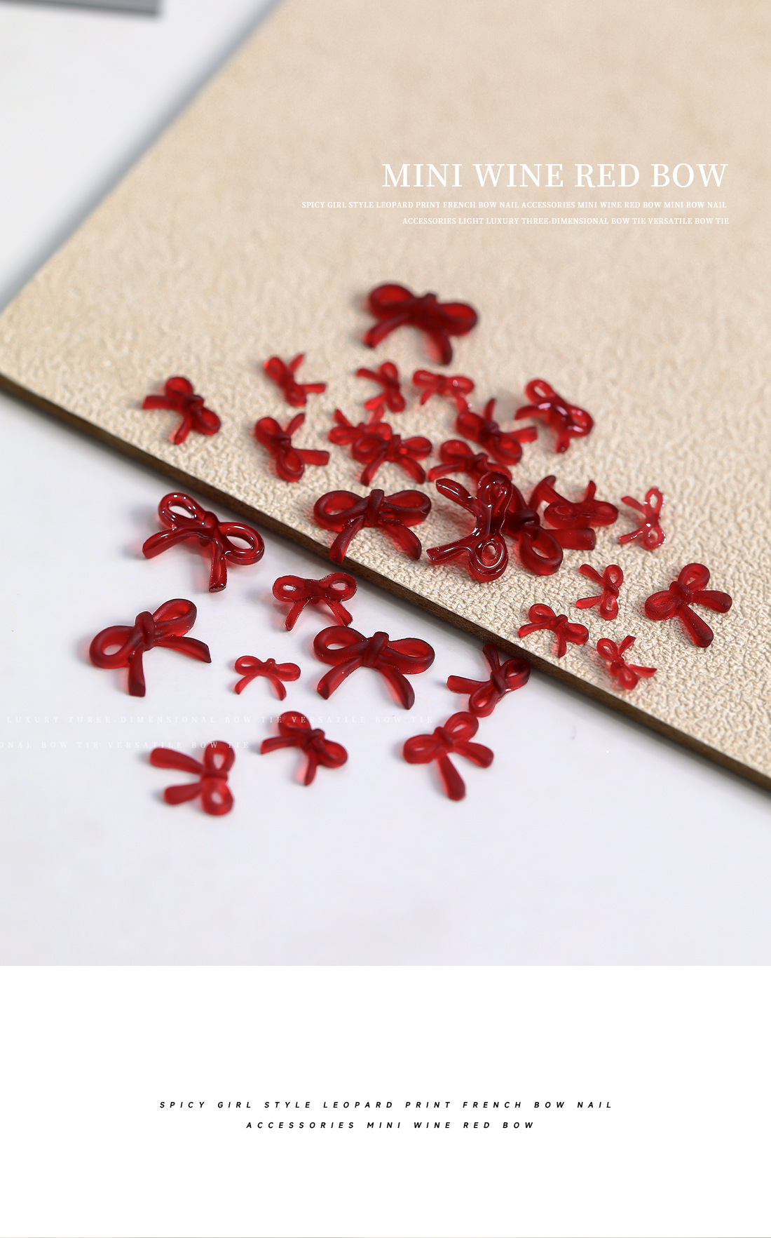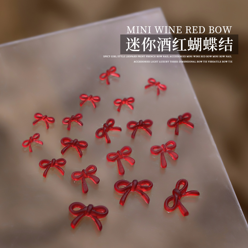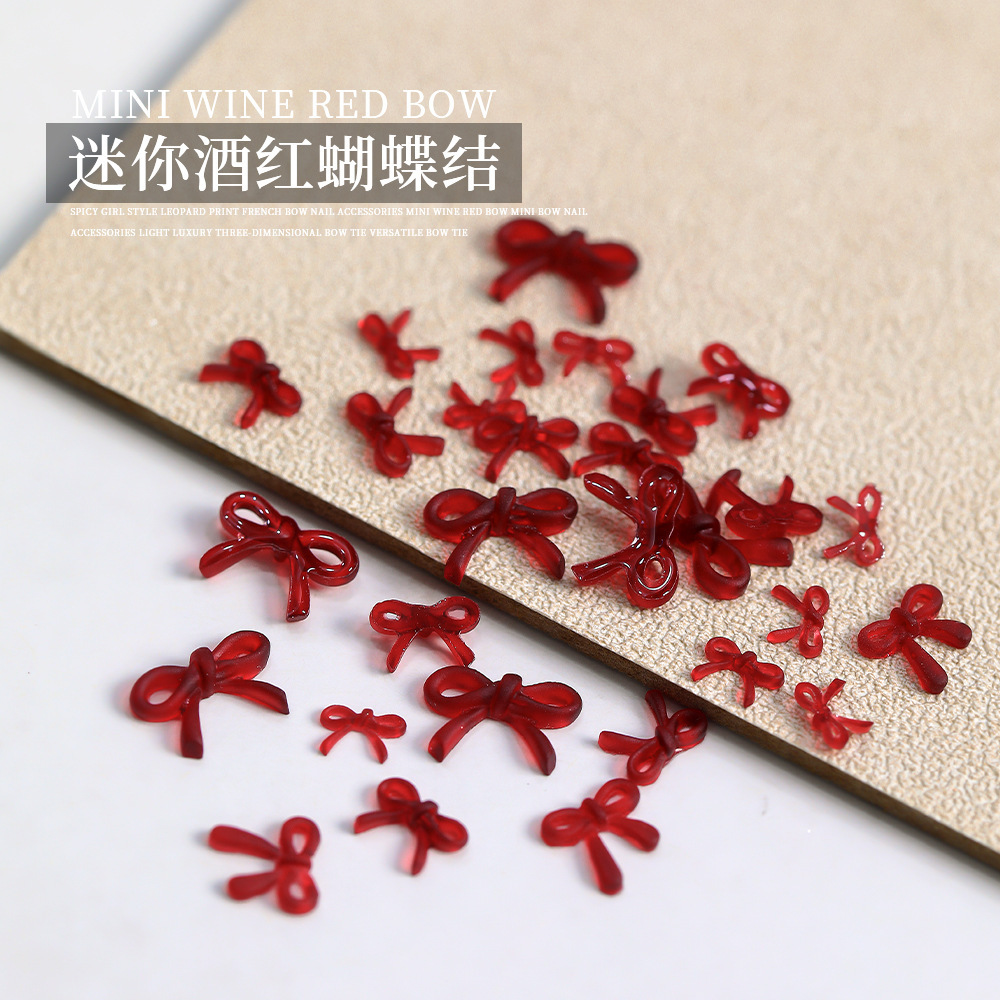 网红蝴蝶结酒红法式美甲飘带饰品迷你小配饰领结穿戴指甲树脂配件