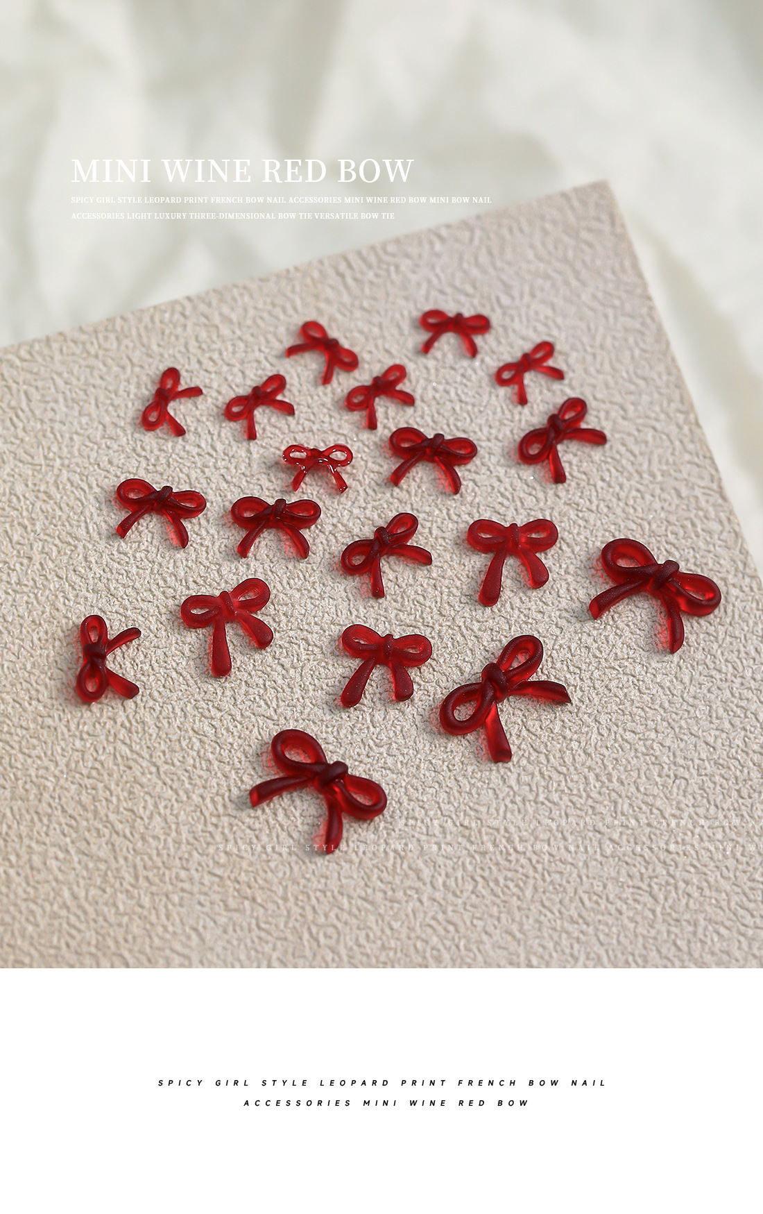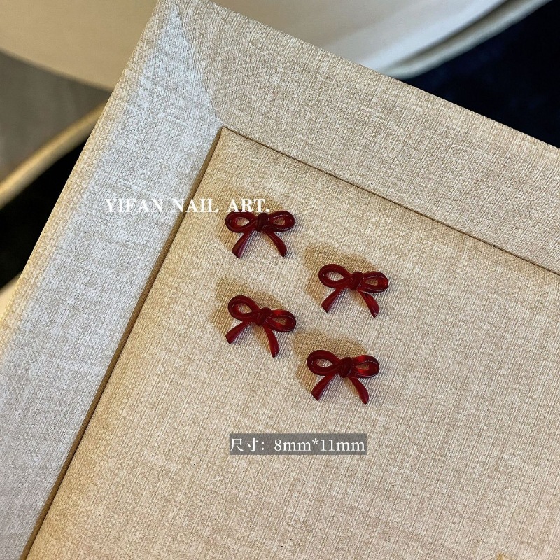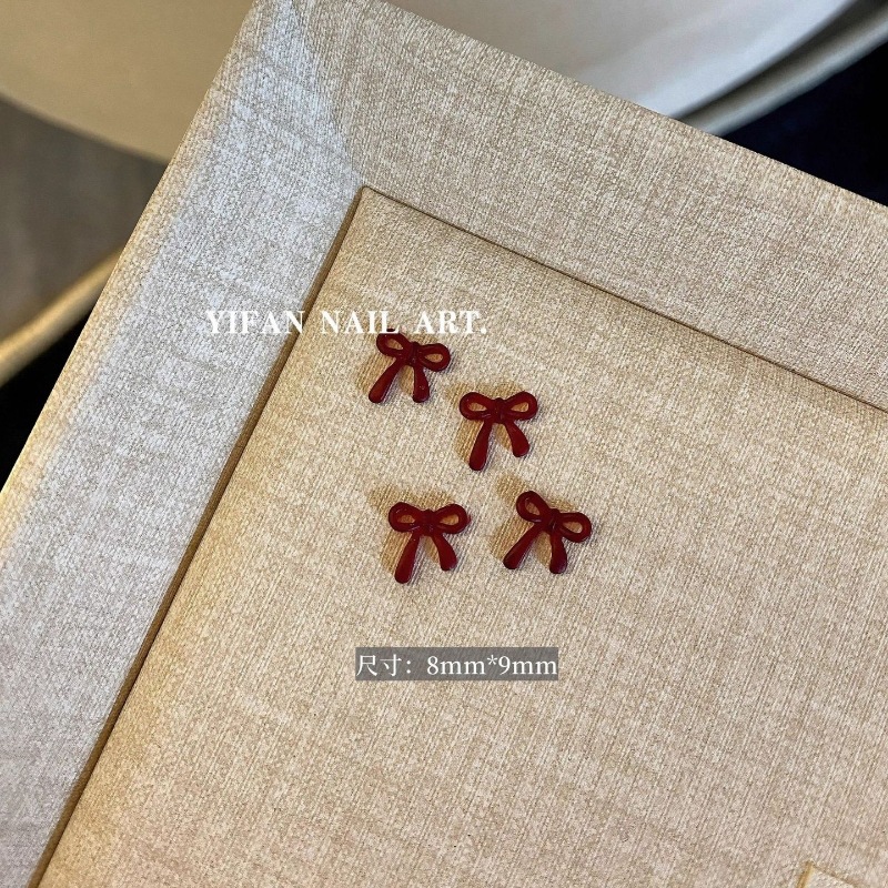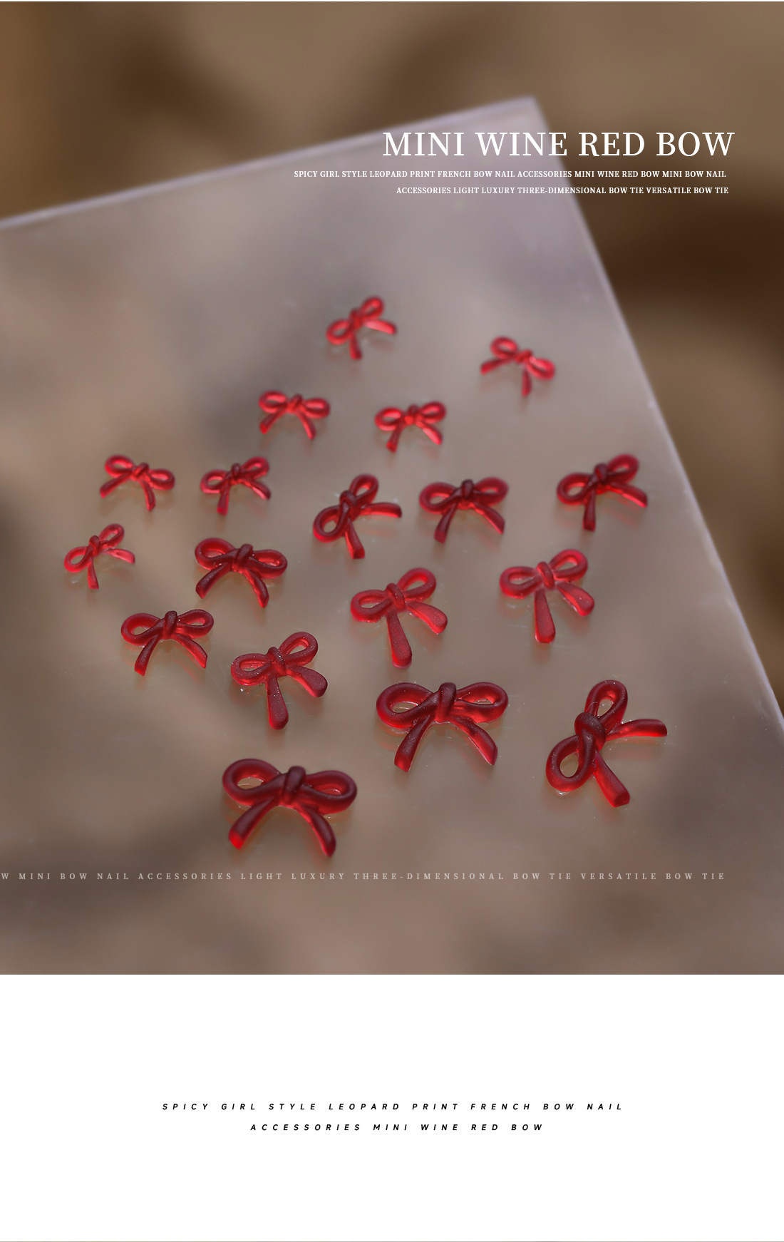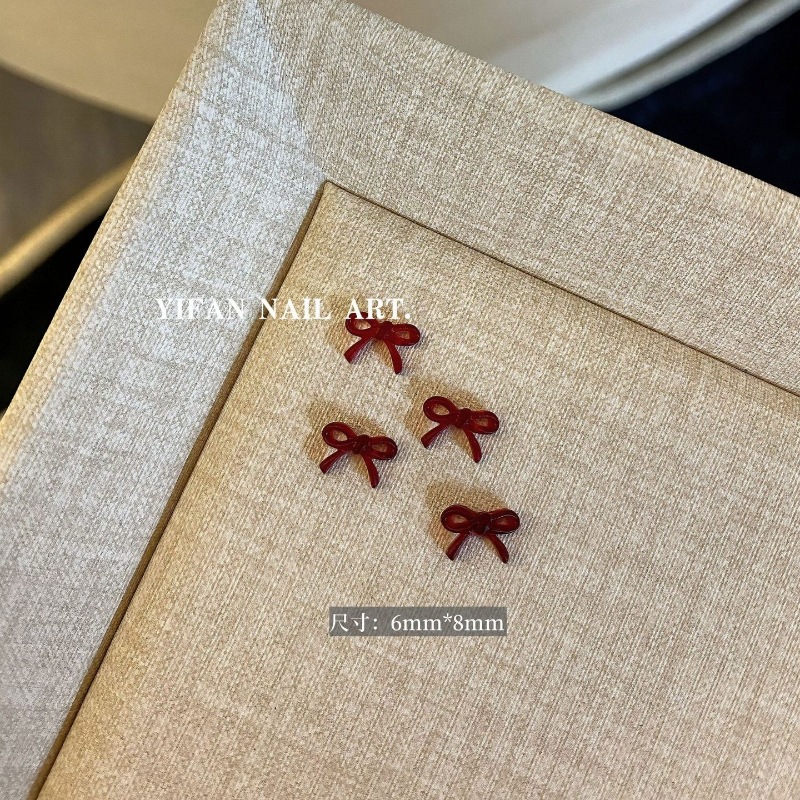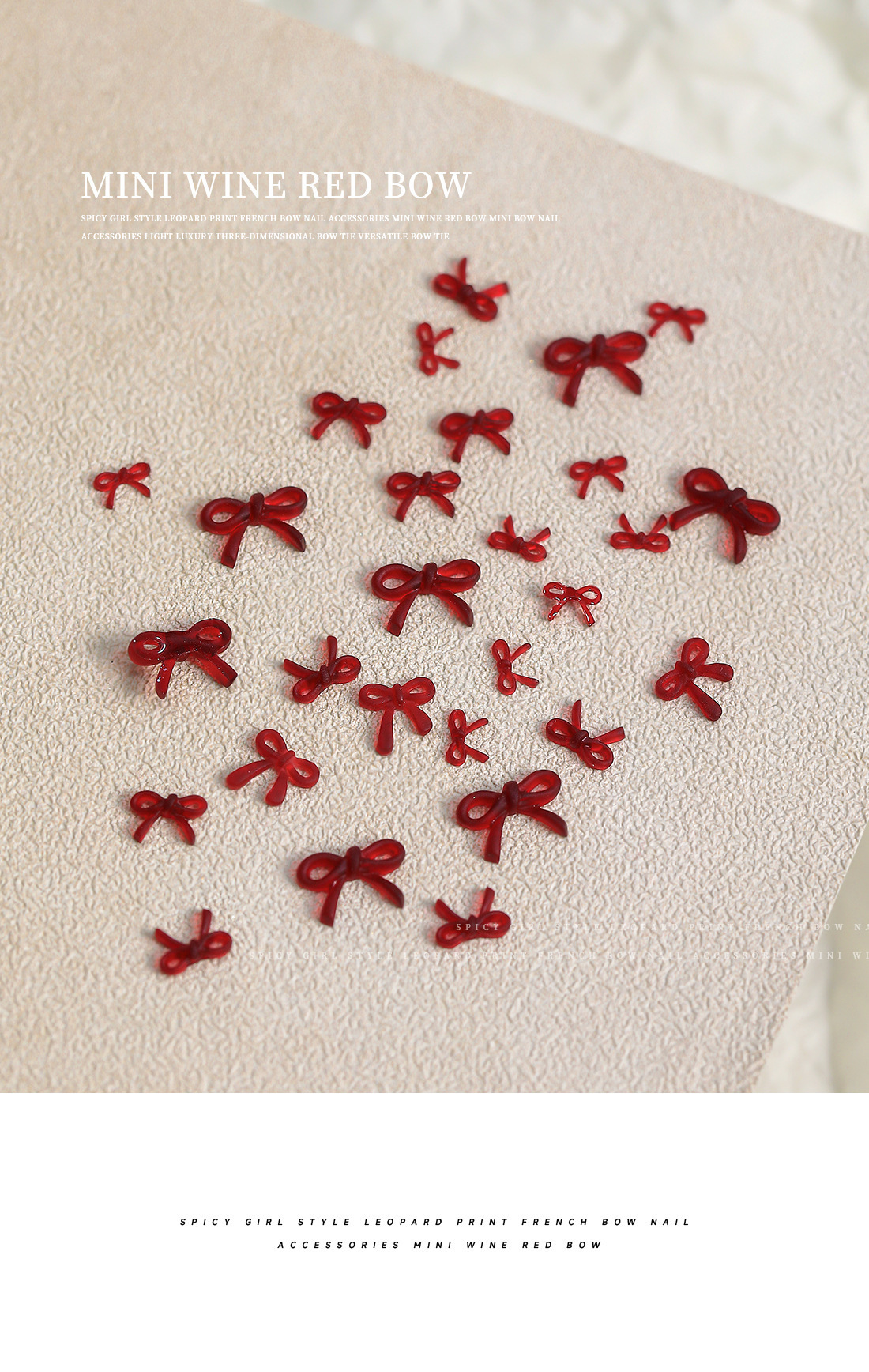 网红蝴蝶结酒红法式美甲飘带饰品迷你小配饰领结穿戴指甲树脂配件