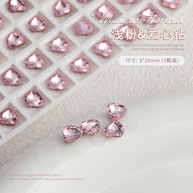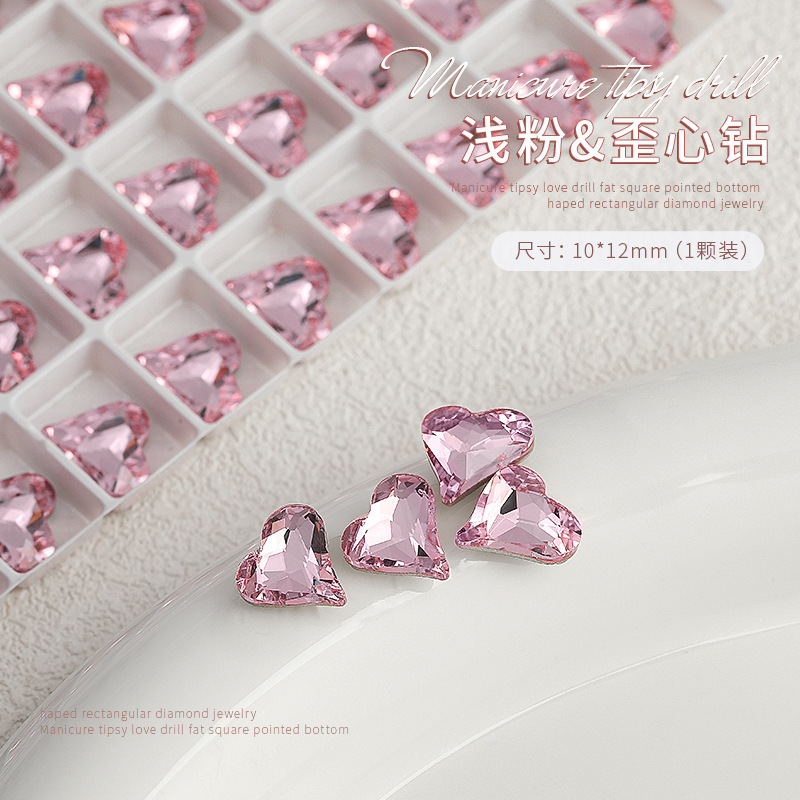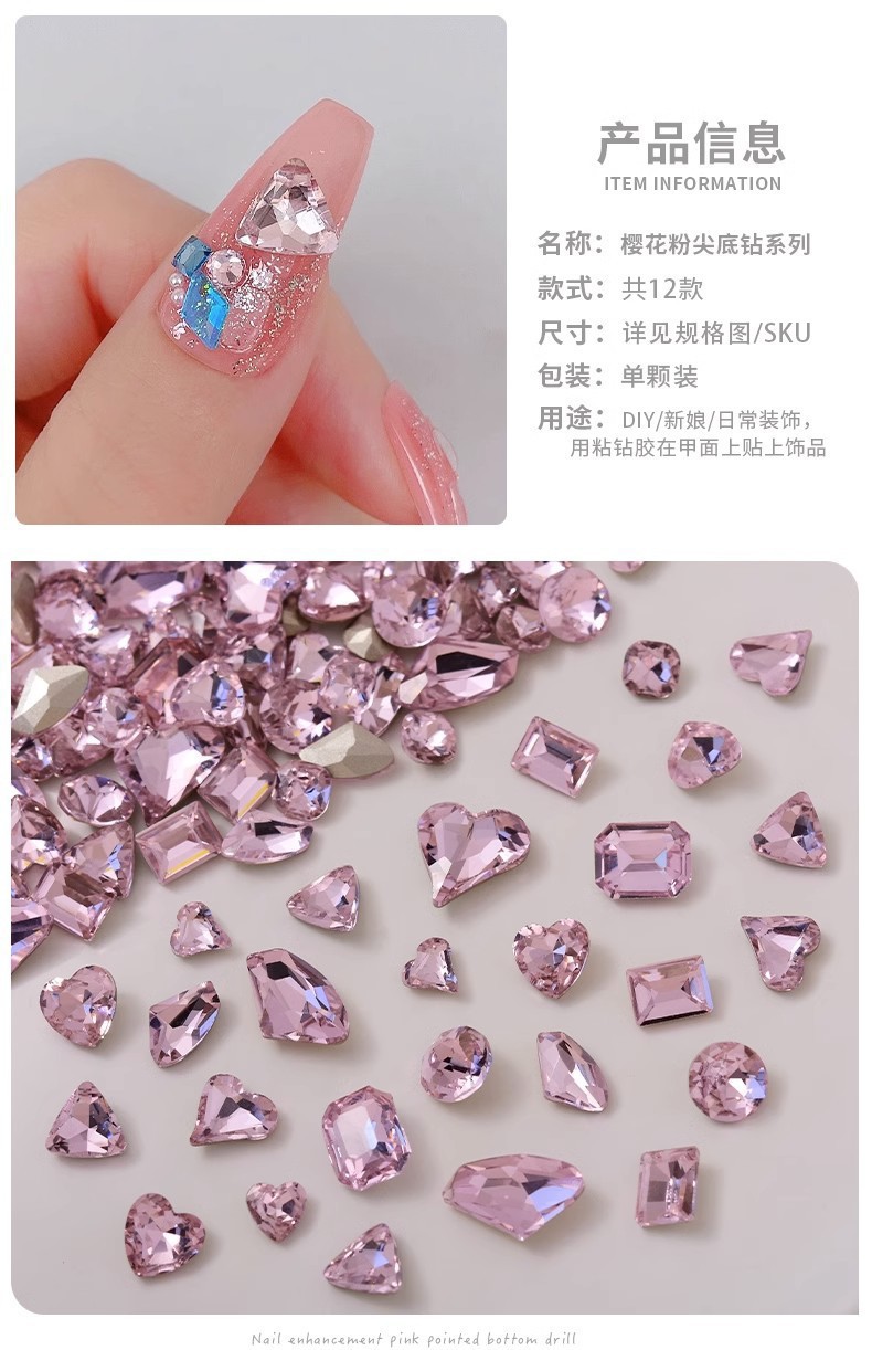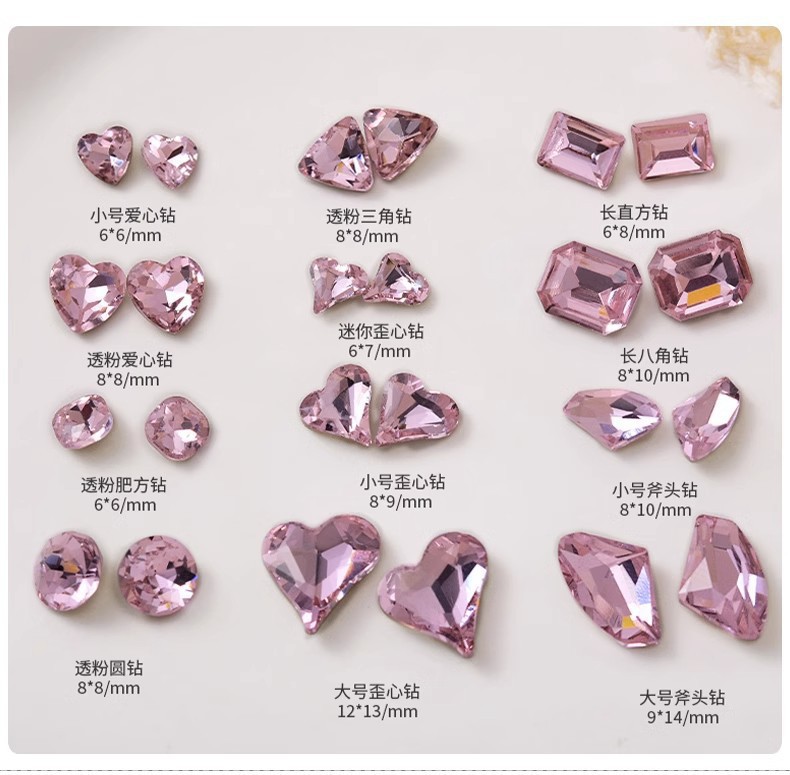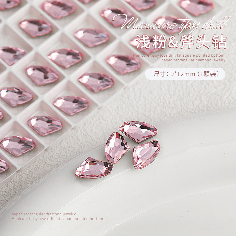粉色美甲钻k9整批爆闪尖底异形钻饰品肥方斧头歪心爱心指甲装饰品