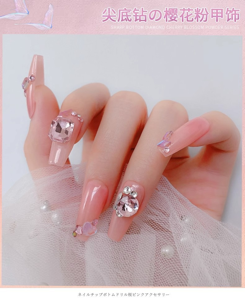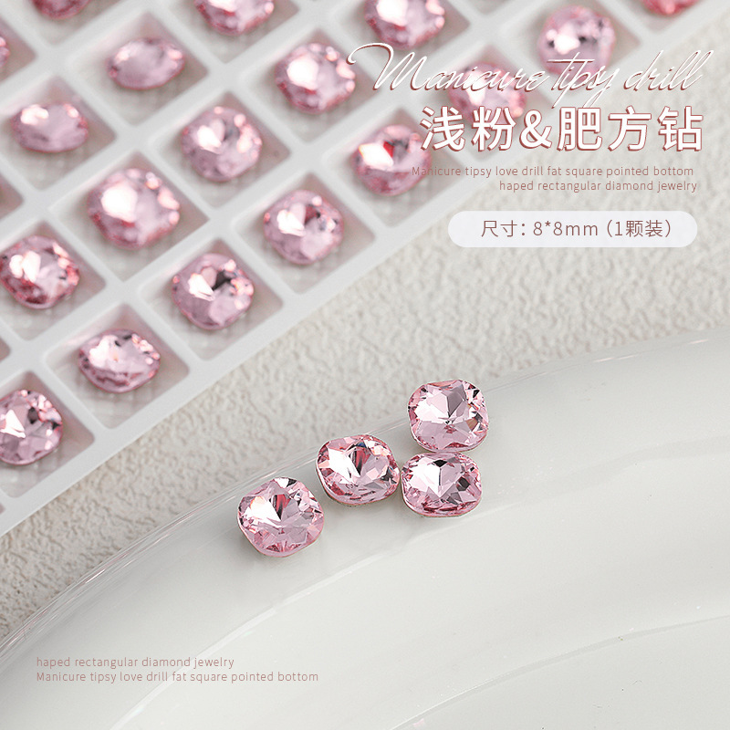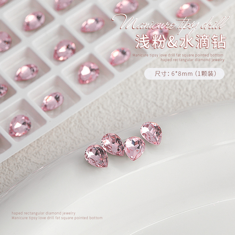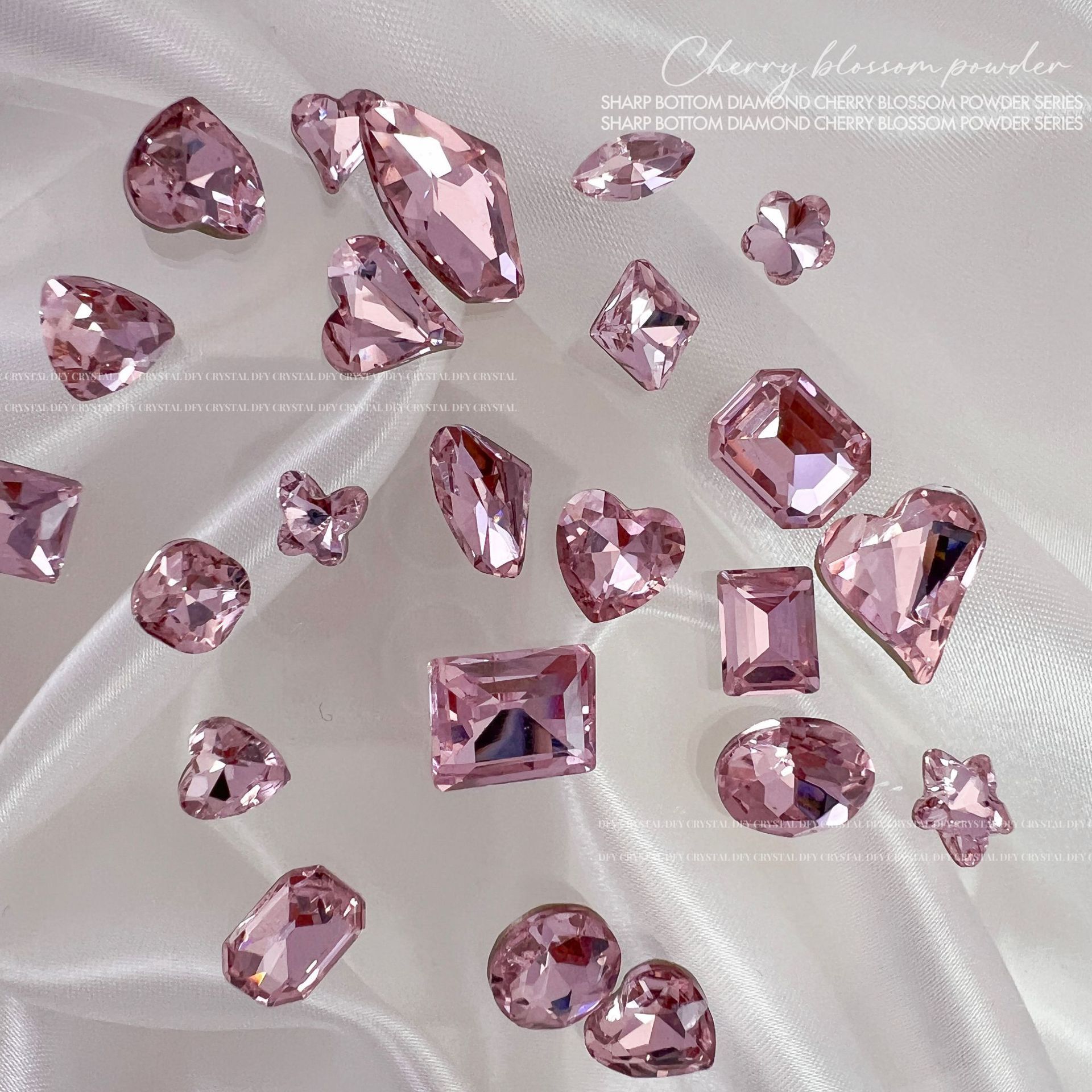 粉色美甲钻k9整批爆闪尖底异形钻饰品肥方斧头歪心爱心指甲装饰品