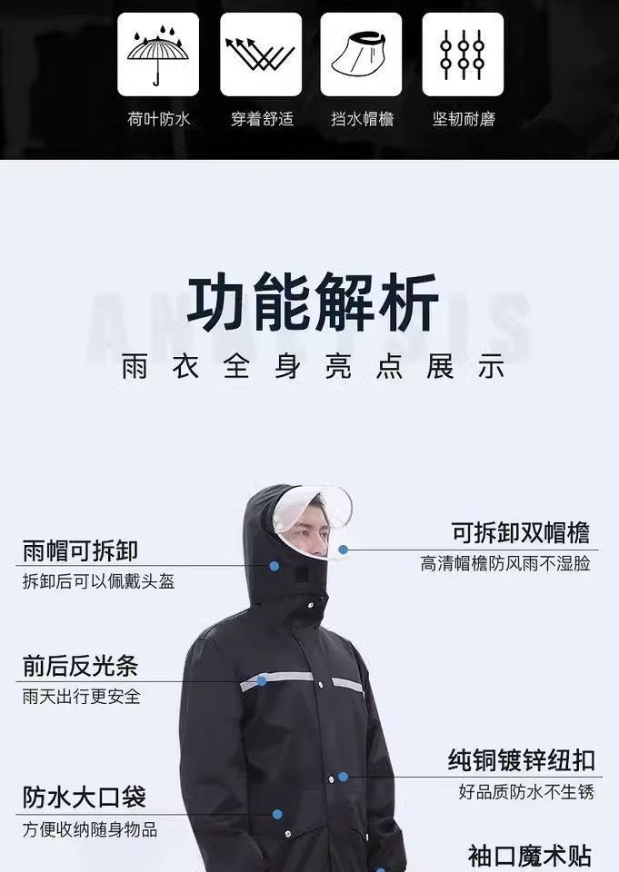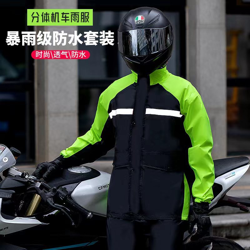 批发分体雨衣雨裤套装加厚全身防暴雨外卖骑行摩托车反光雨衣成人