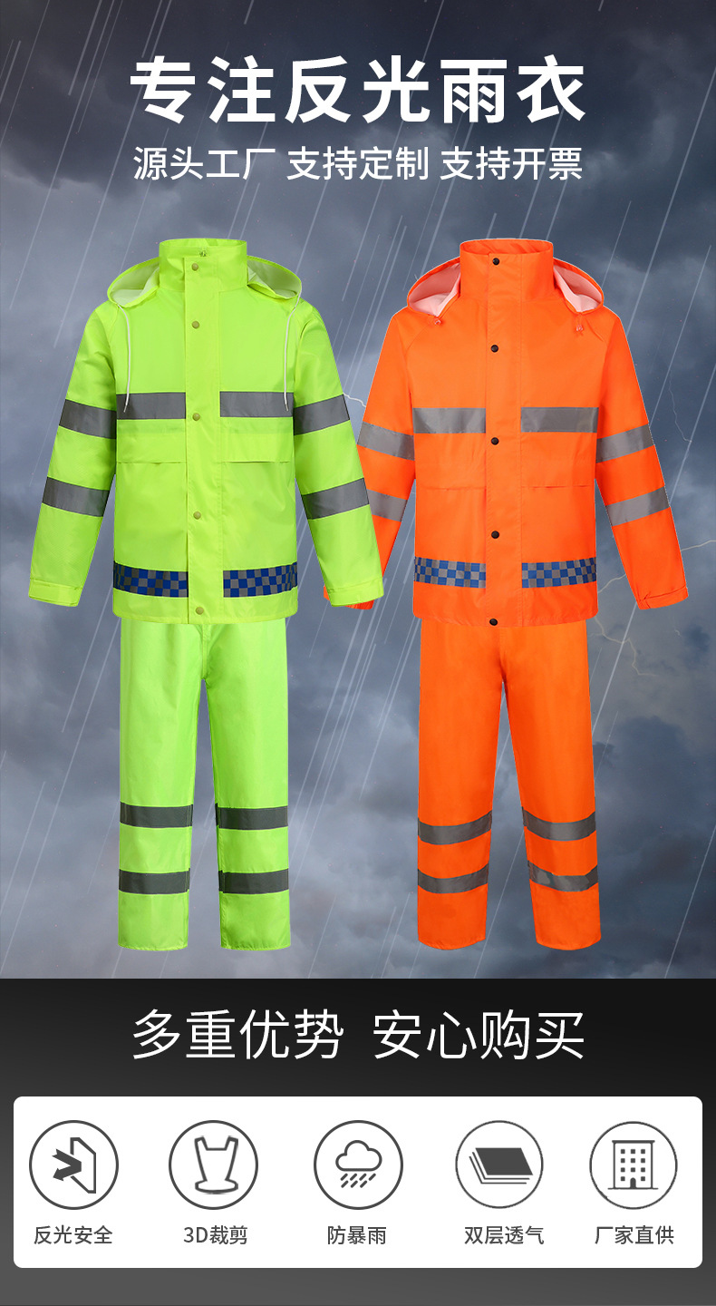 环卫劳保反光雨衣雨裤套装道路施工交通执勤防暴雨雨衣分体式厂家