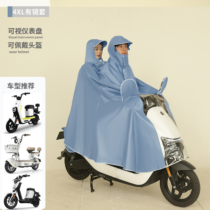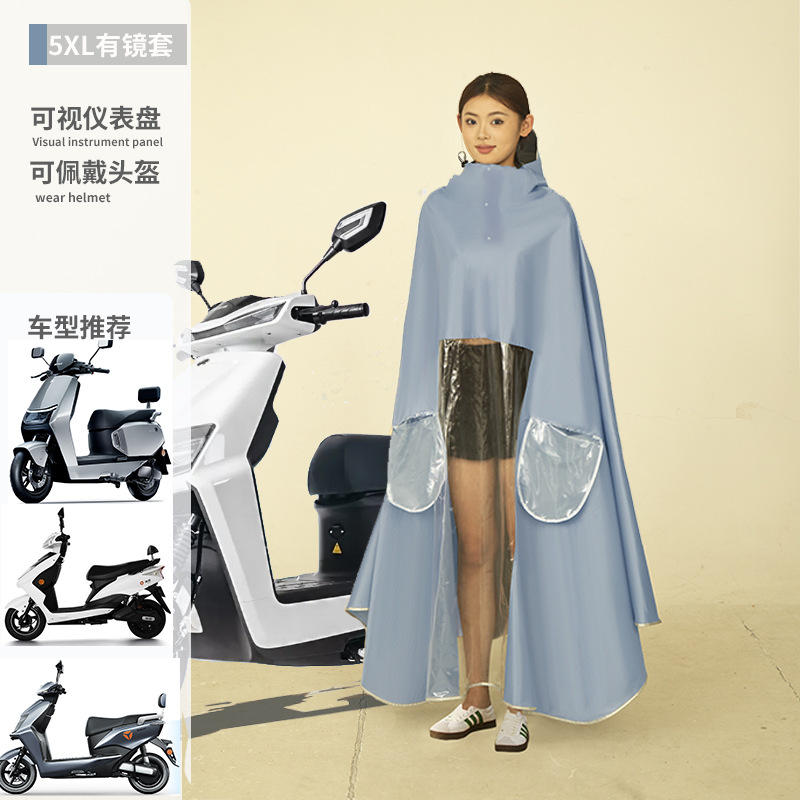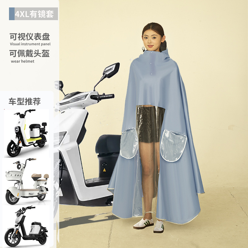 新款电动车雨衣加厚加长高门襟款全身防暴雨可带头盔汽车骑行雨衣