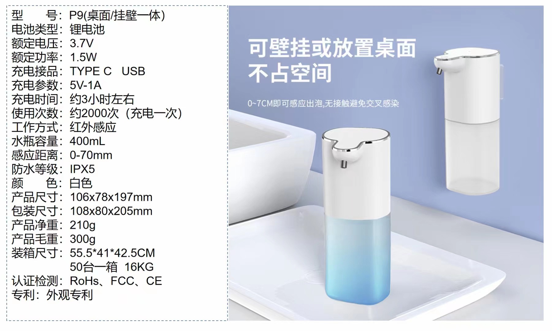 新款智能皂液机P9自动感应喷雾皂液器壁挂式皂液器泡沫洗手液机器