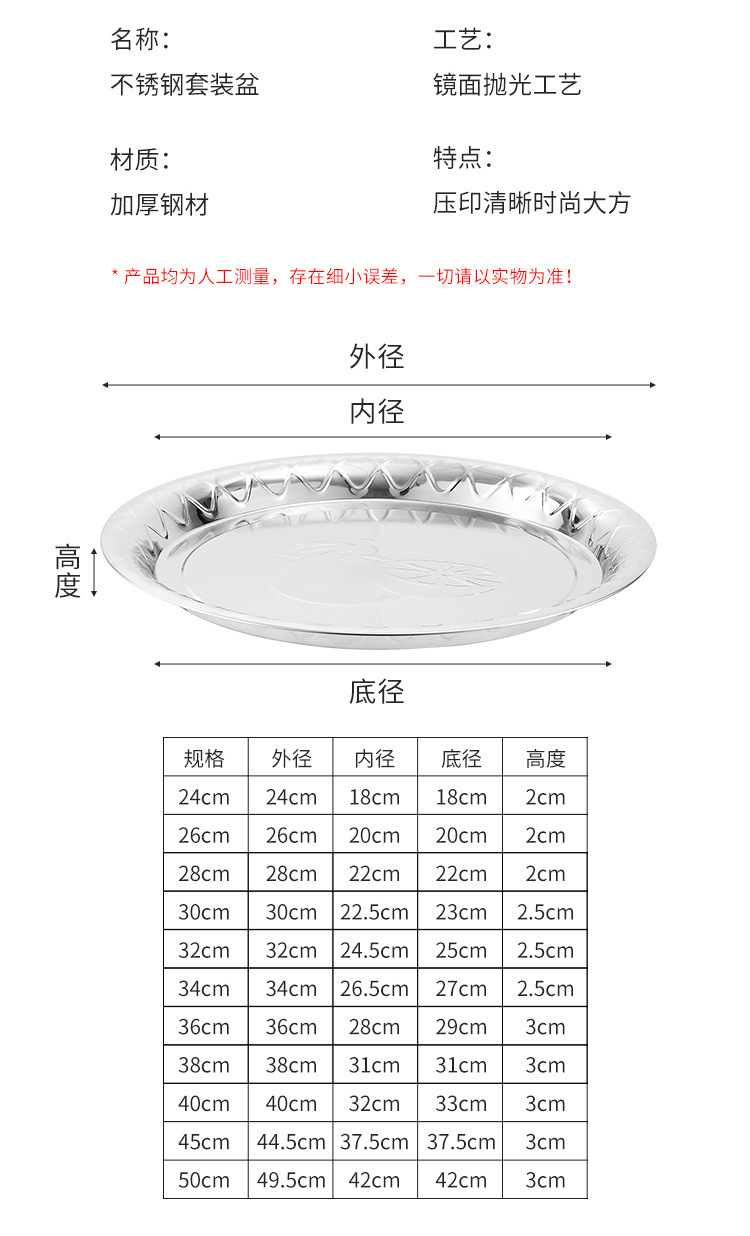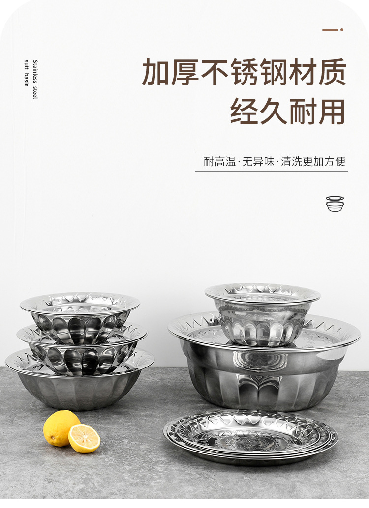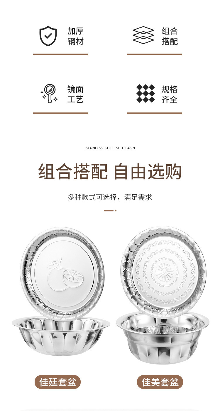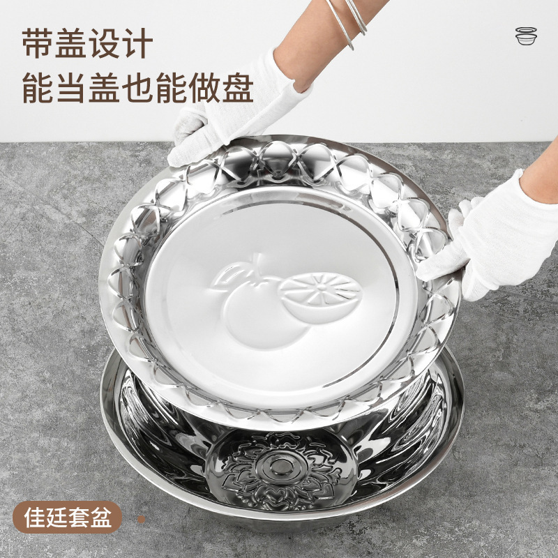 出口跨境加厚套盆家用套装餐具厂家批发plate不锈钢盘盘子花盆