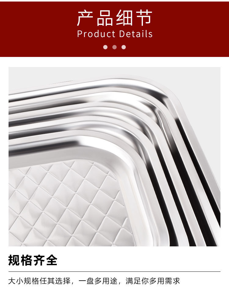 专用酒店加厚方形托盘家用餐盘盘不锈钢方盘plate厂家批发饭店