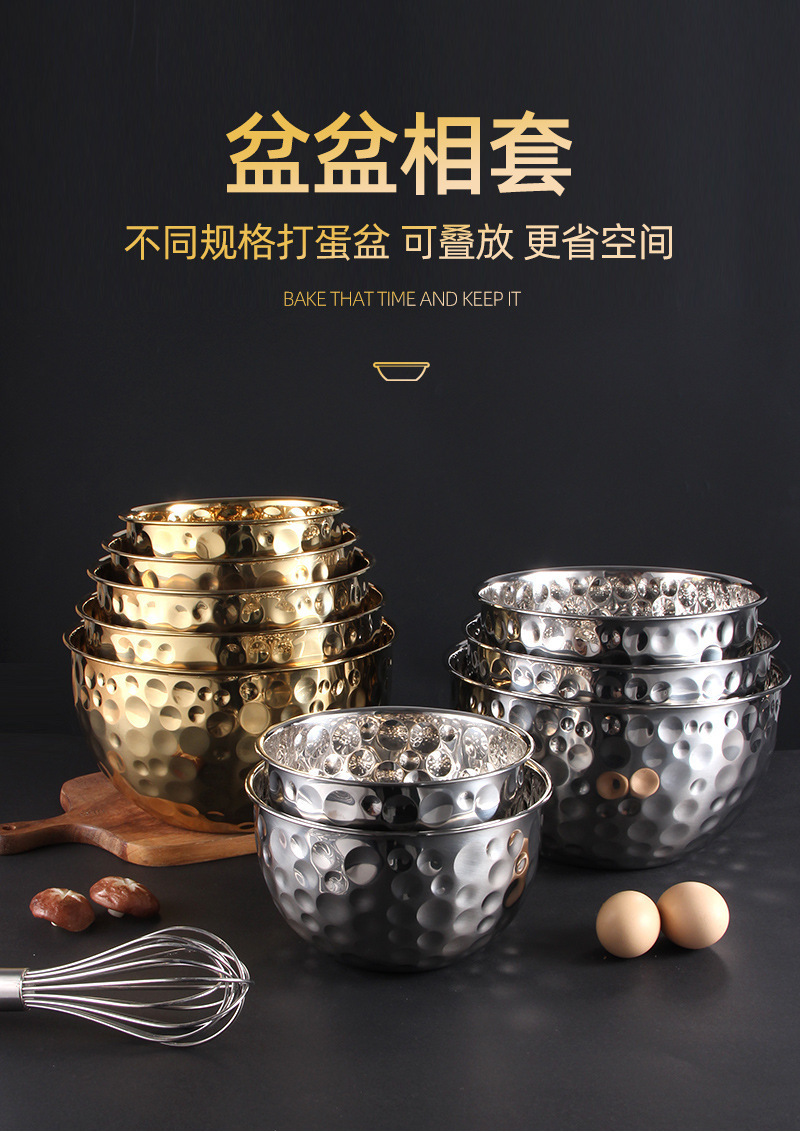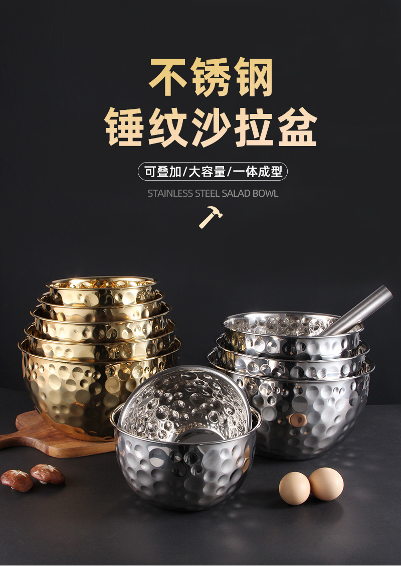 跨境不锈钢加厚大号沙拉碗家用打蛋盆酒店摆件果盘批发盆kt套装