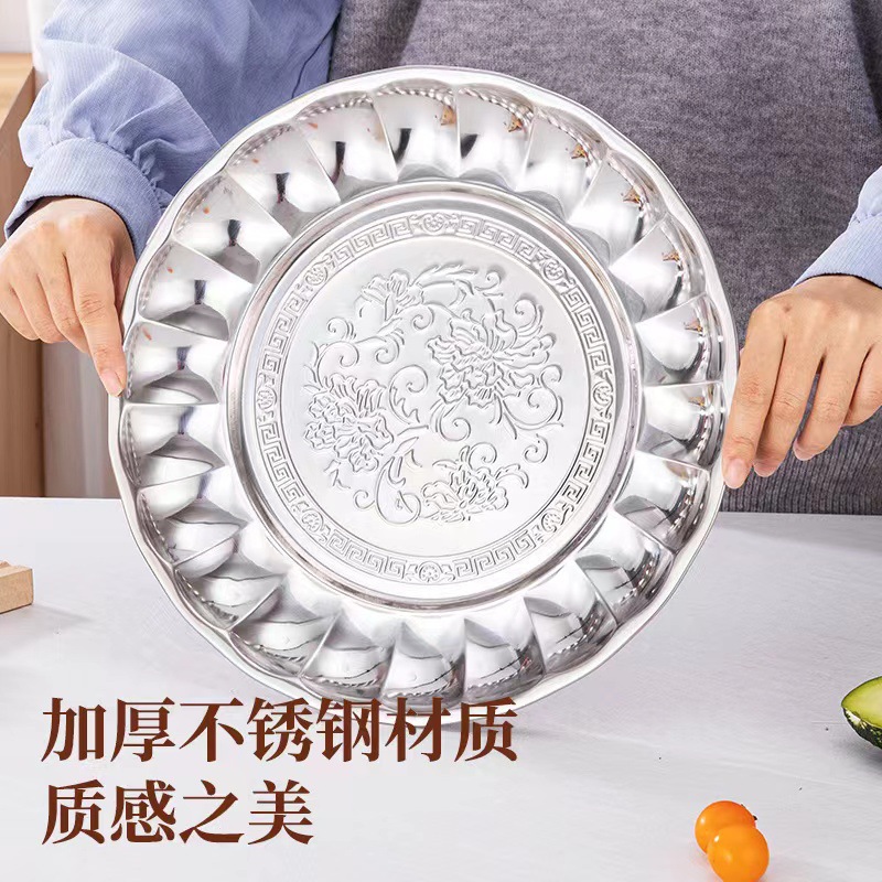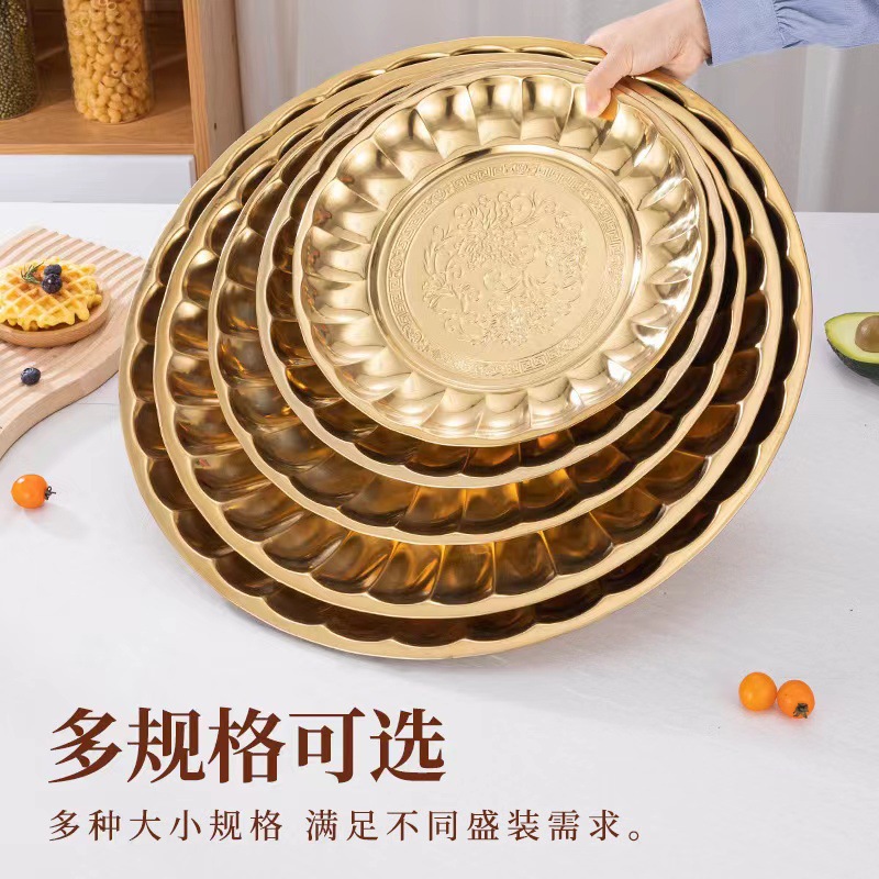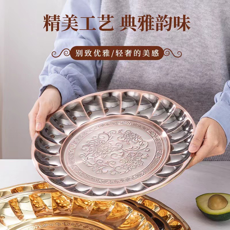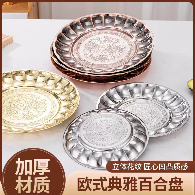 百合复古风盘家用加厚饭店酒店餐厅水果盘不锈钢盘子厂家批发plat