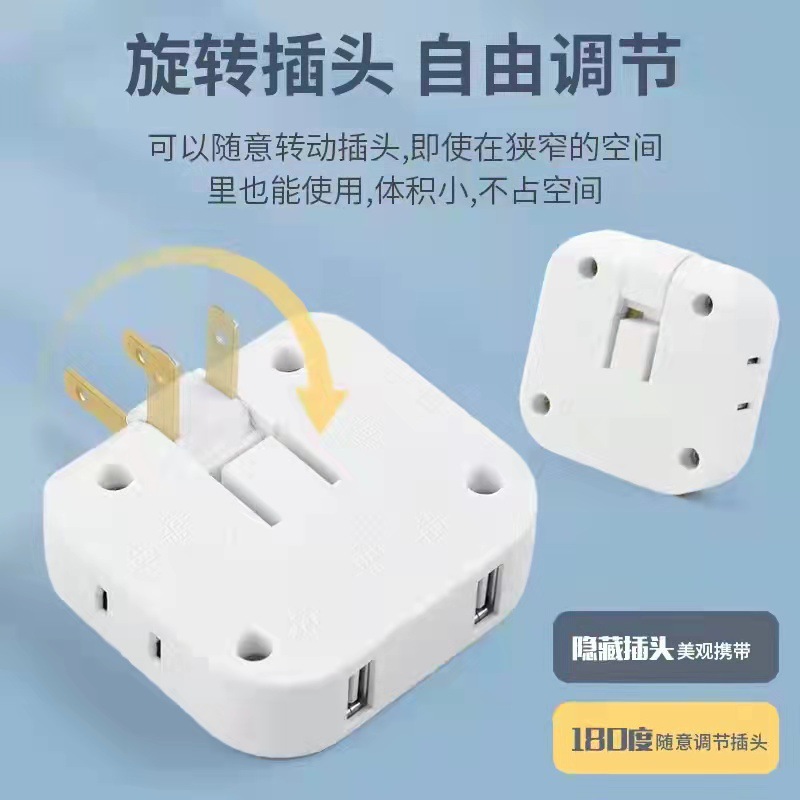 一转三插座180度可旋转一转三电源转换插头插座转换器无线JET插座