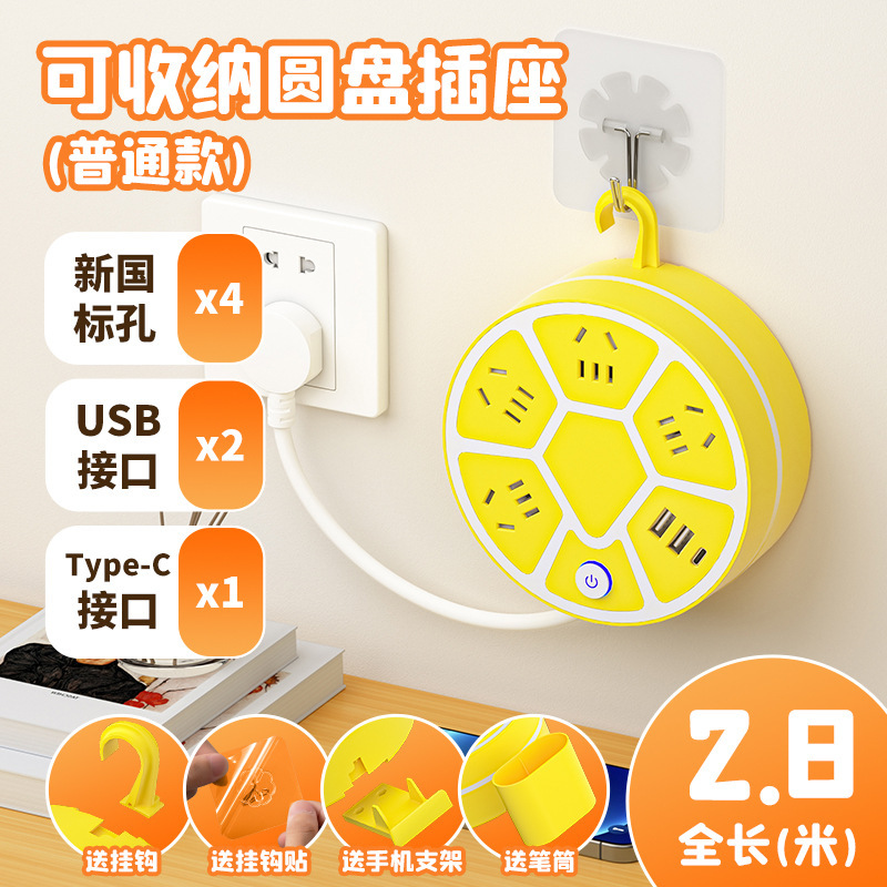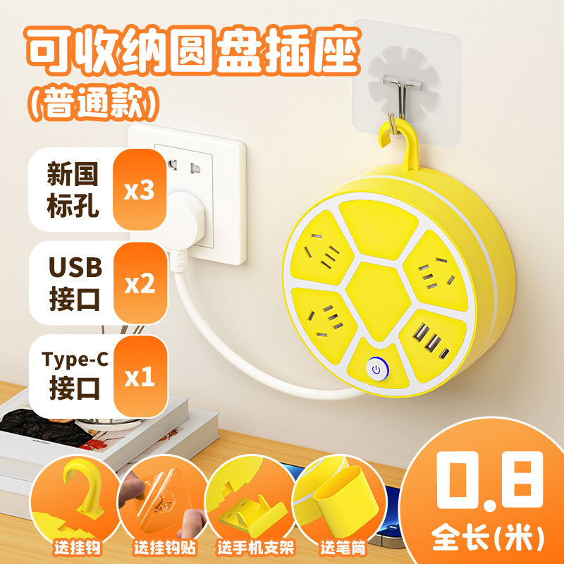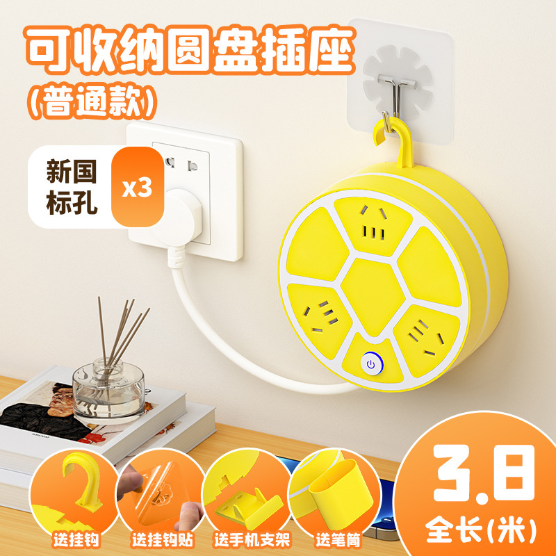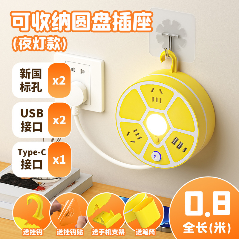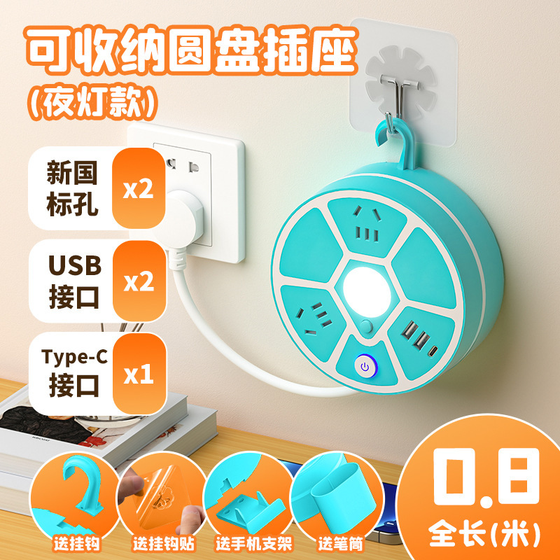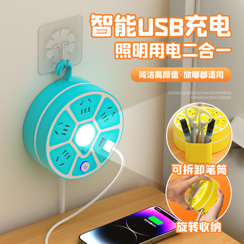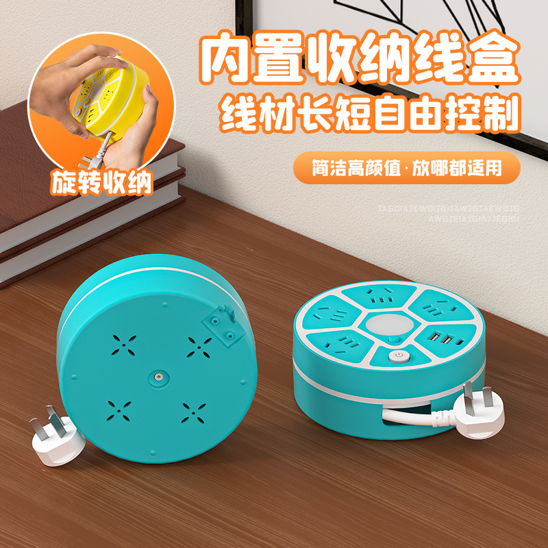 儒雅圆盘水果盘绕线插座多功能转换器插排接线板家用办公灯usb