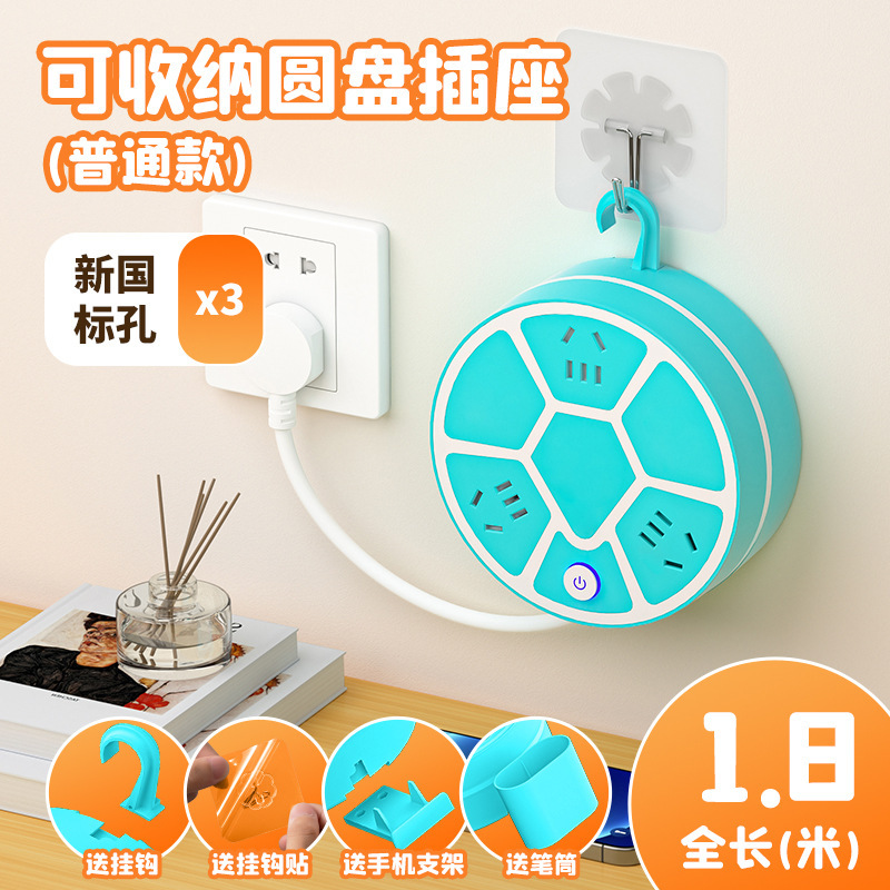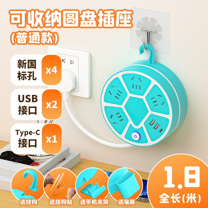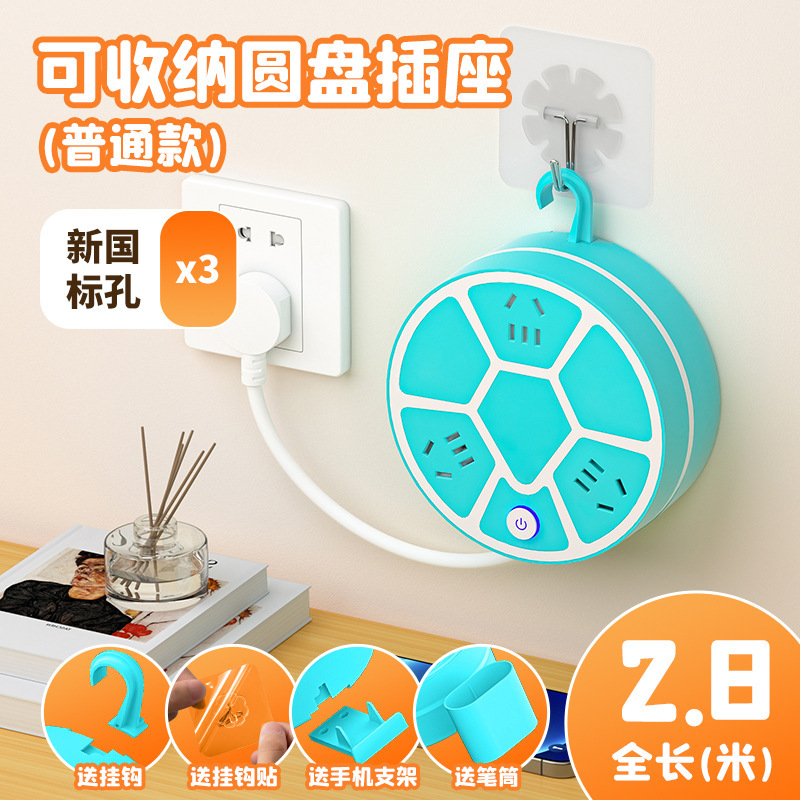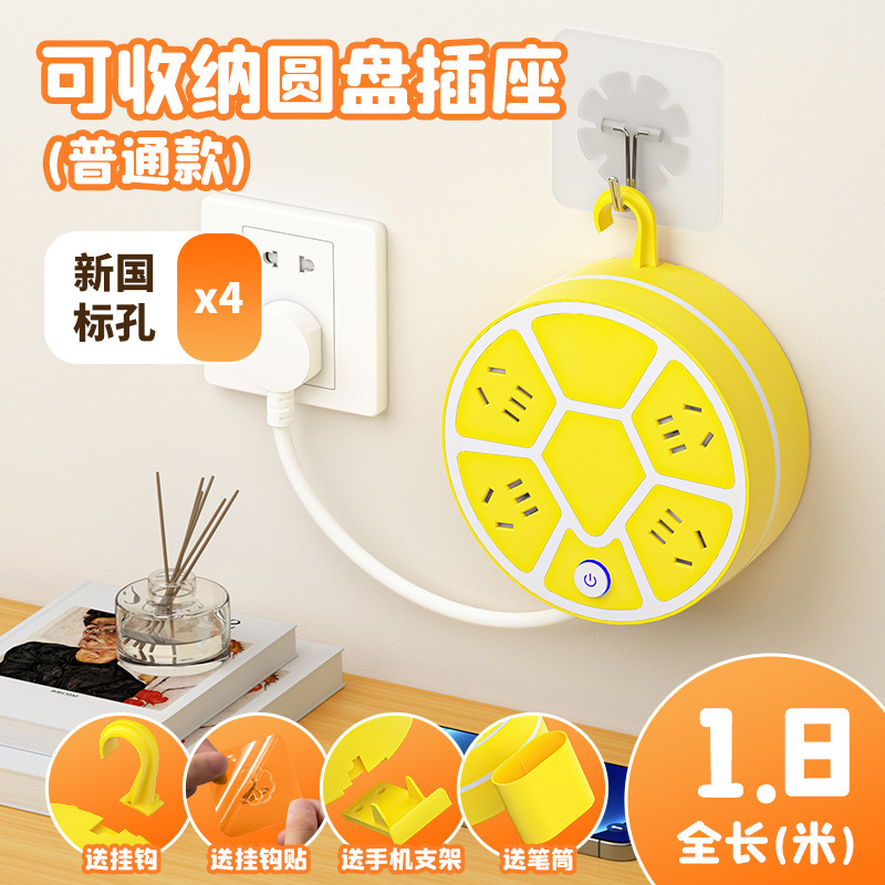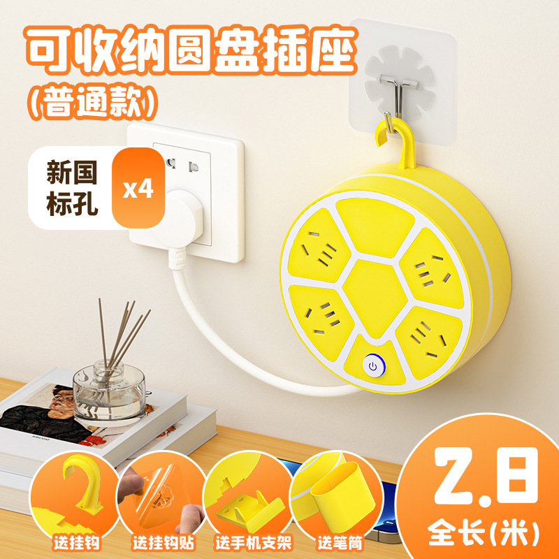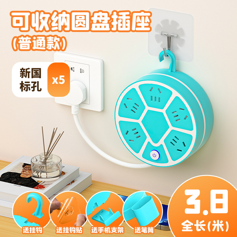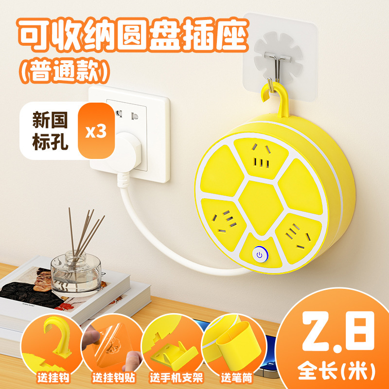 儒雅圆盘水果盘绕线插座多功能转换器插排接线板家用办公灯usb