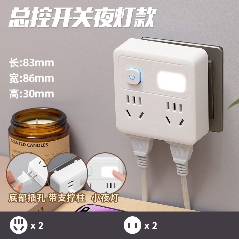 正方形转换插座86型墙壁排插开关多功能夜灯usb插板家用办公插排