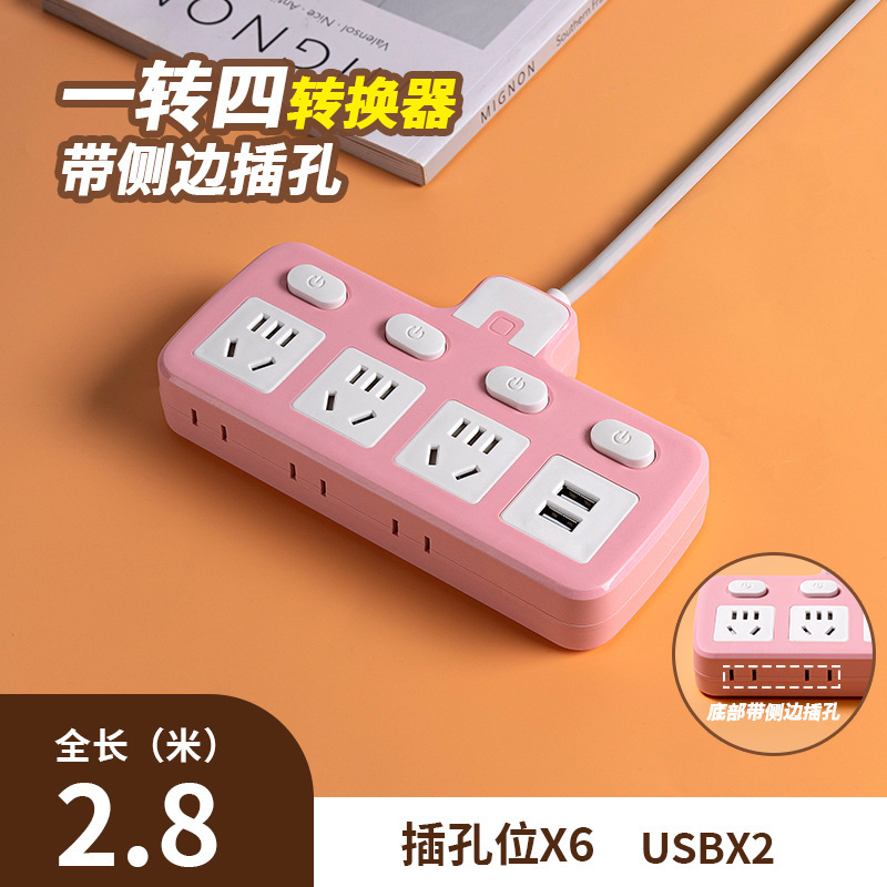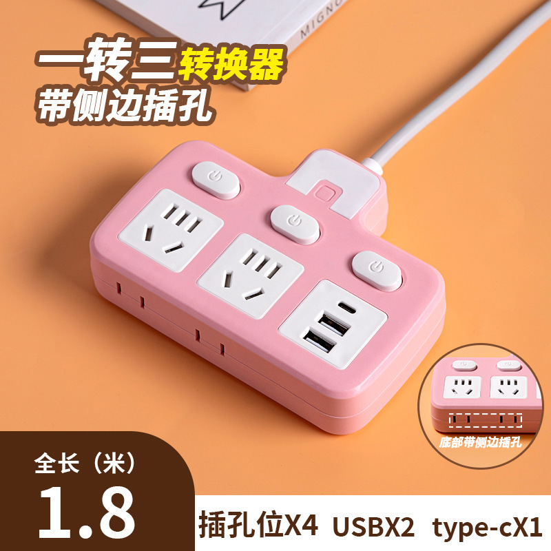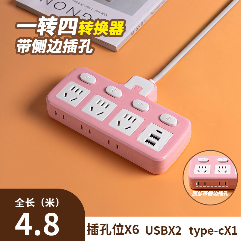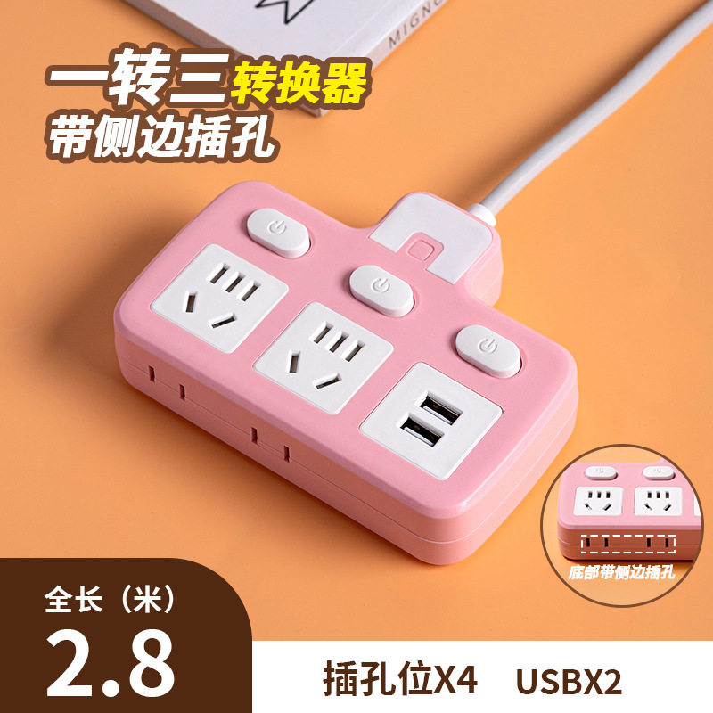 儒雅一转多转换器插座板分控多开关排插接线板边插一拖三排插USB
