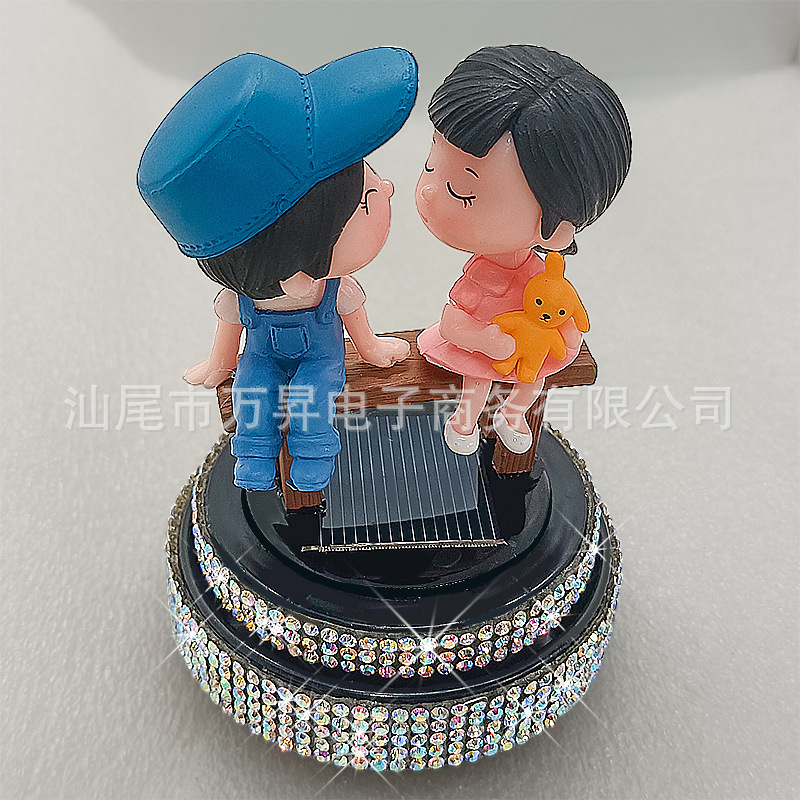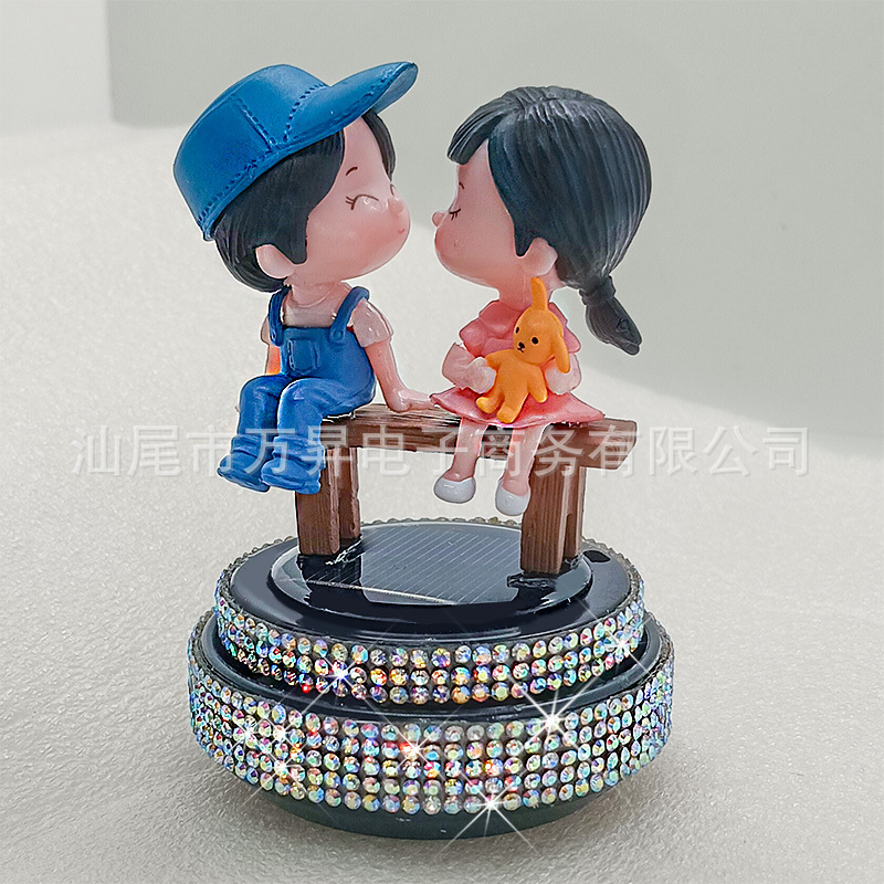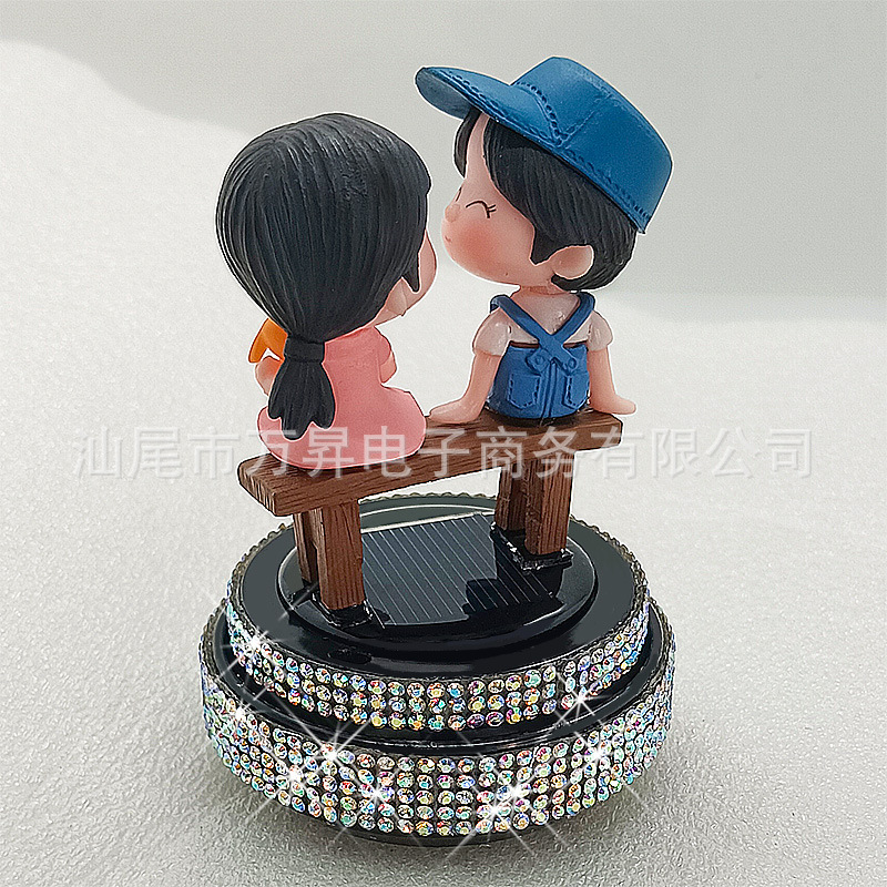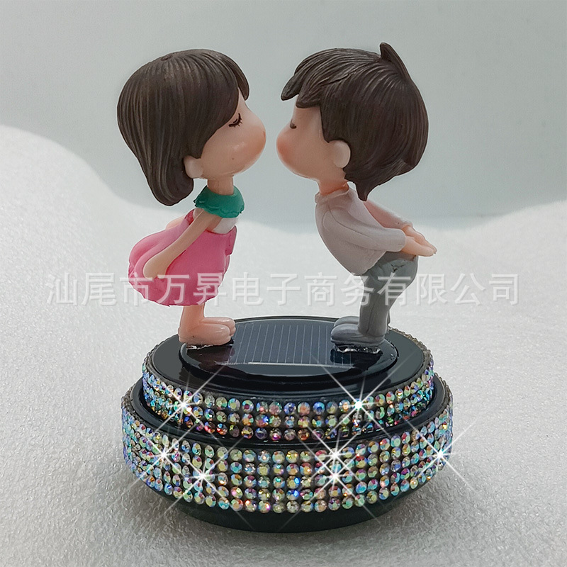 太阳能车载香薰旋转香水座汽车内镶钻中控台摆件卡通亲嘴情侣装饰