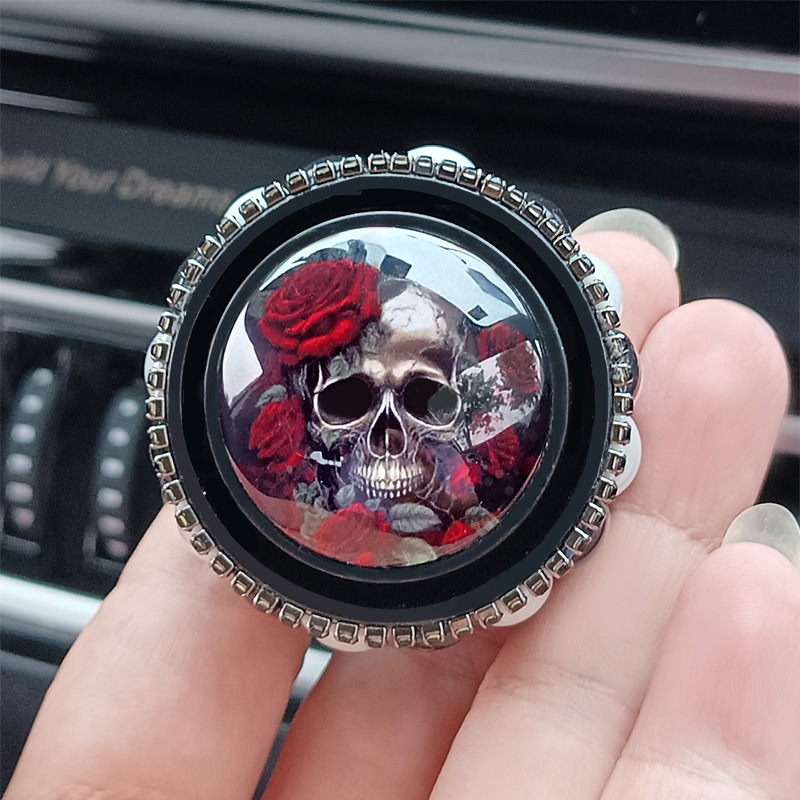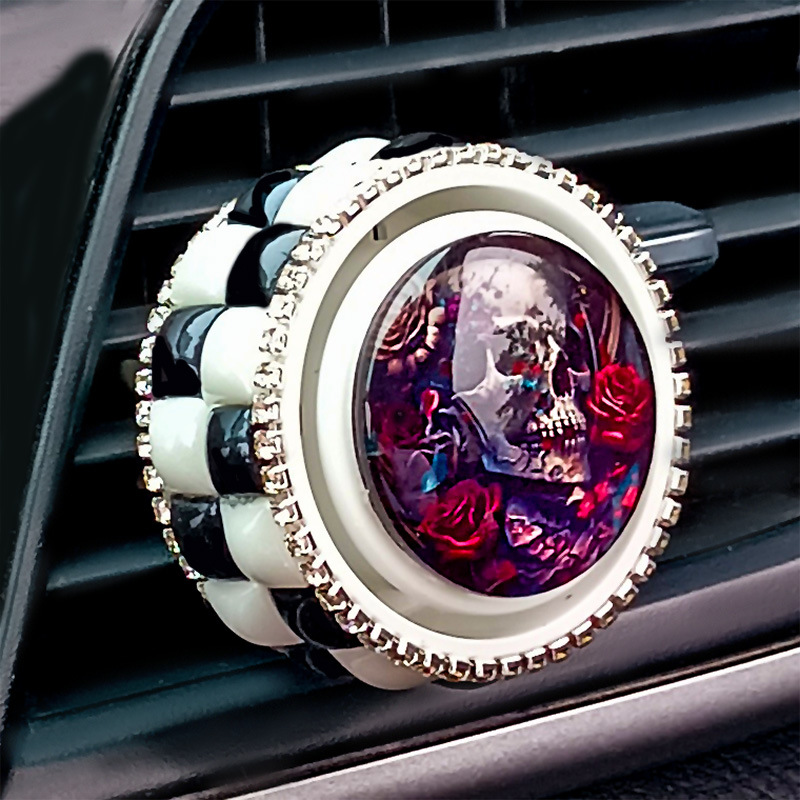 跨境汽车出风口香薰摆件磁吸车载香水香氛车内万圣节骷髅镶钻装饰