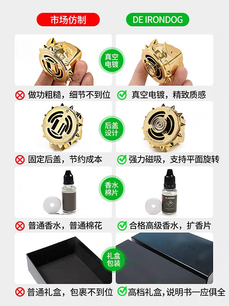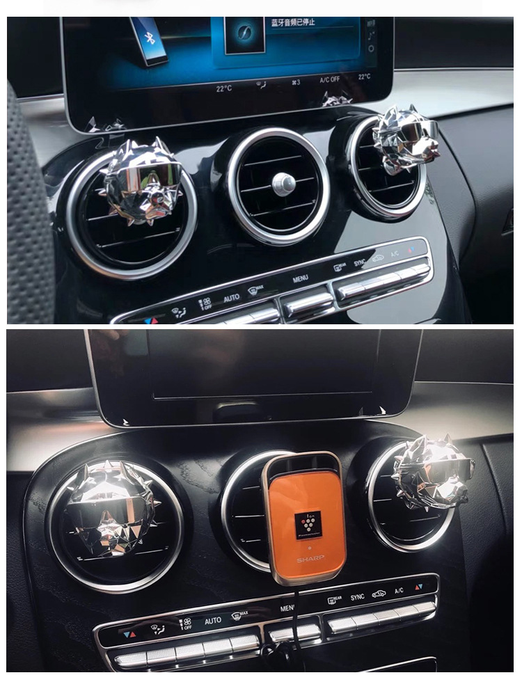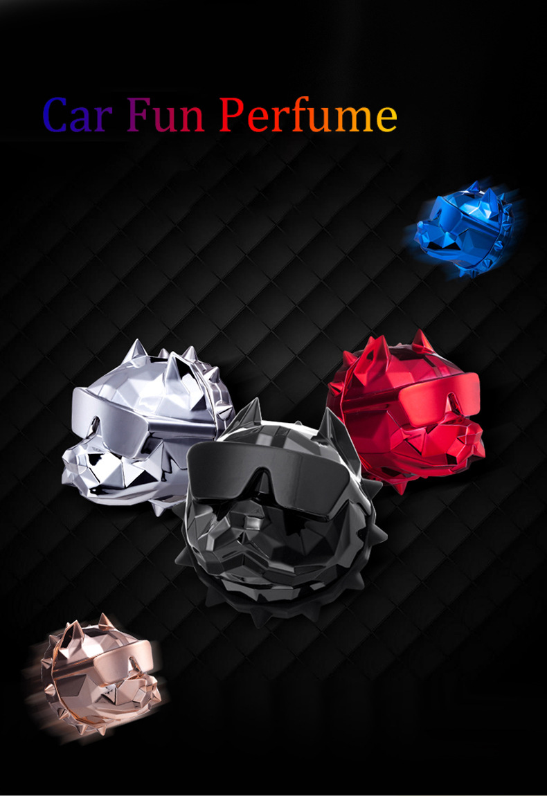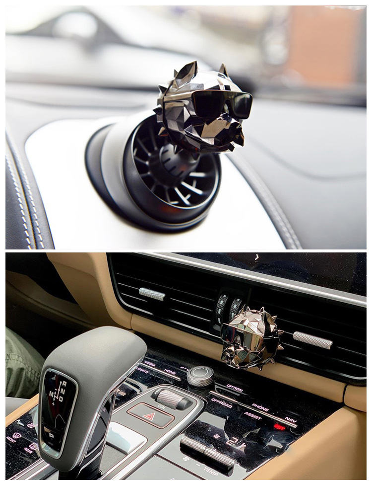 高档车载香水法斗狗头汽车出风口香薰夹香氛好物装饰品礼盒装外贸