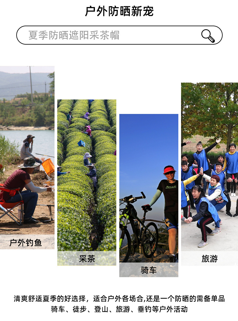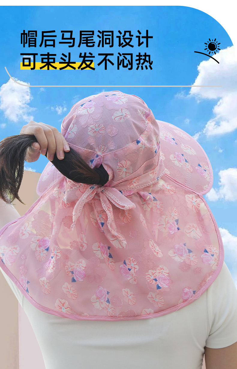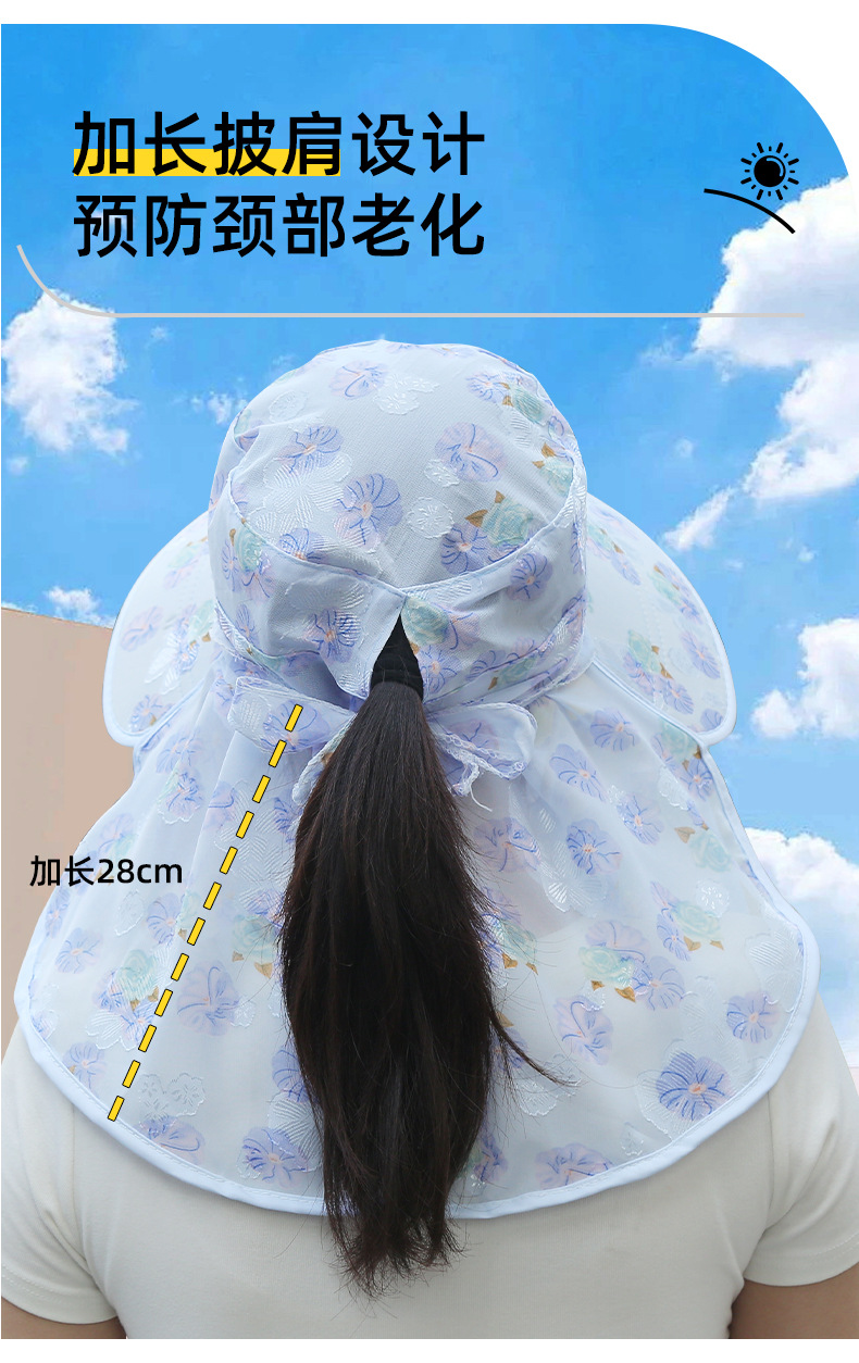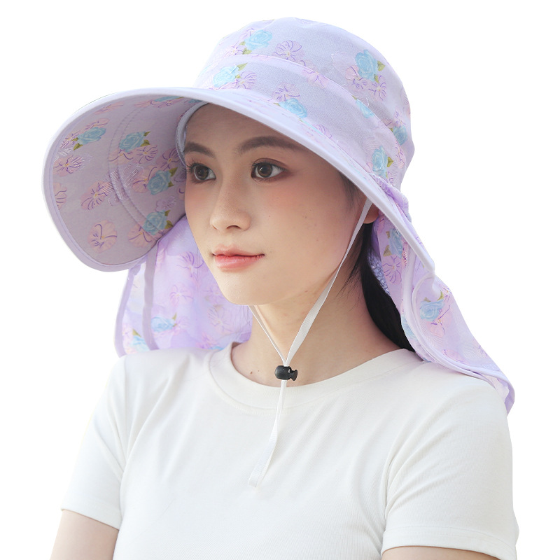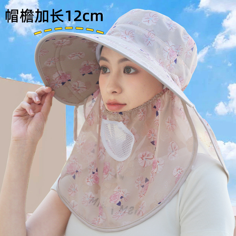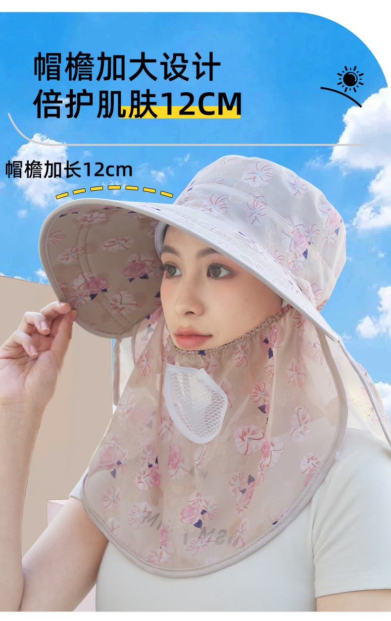 厂家户外休闲太阳帽运动骑行大帽檐防晒帽冰丝透气护颈渔夫采茶帽
