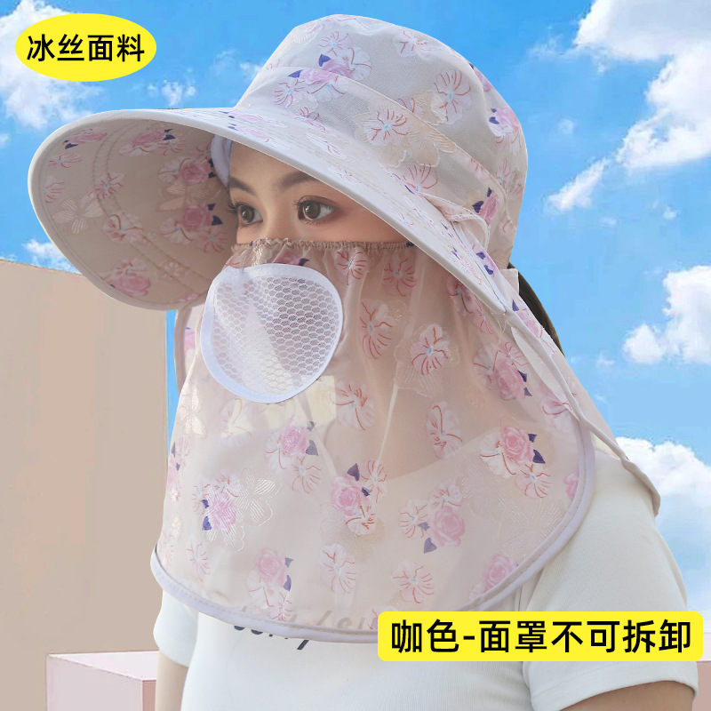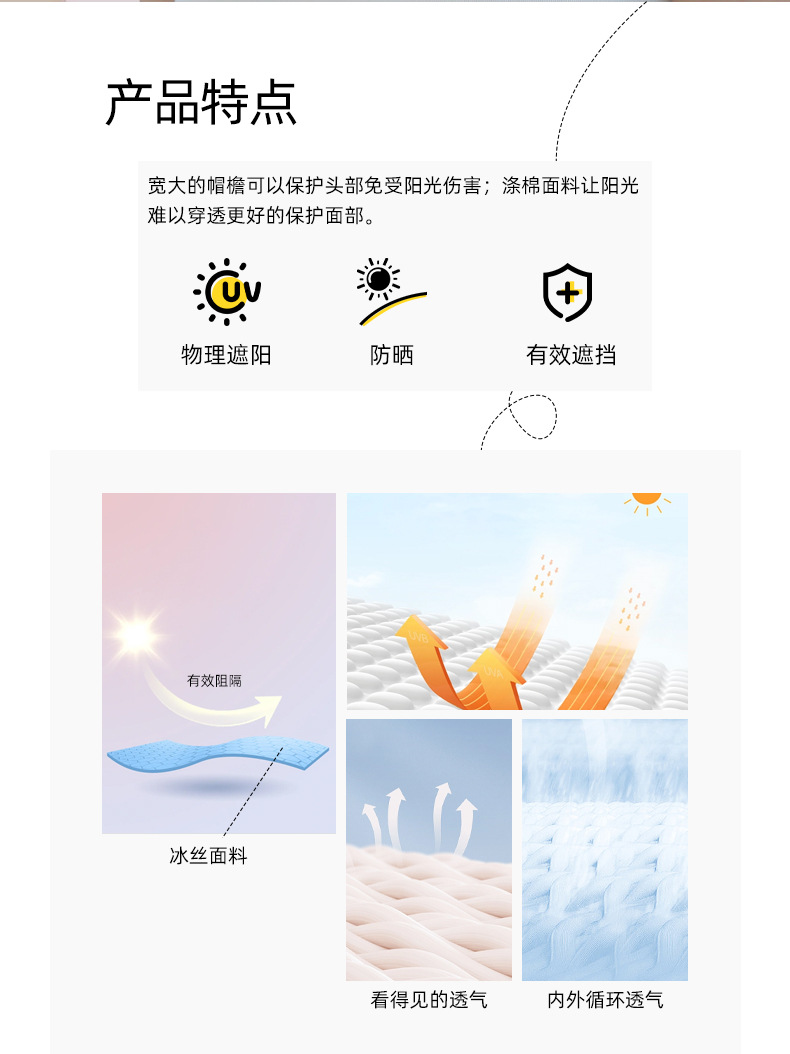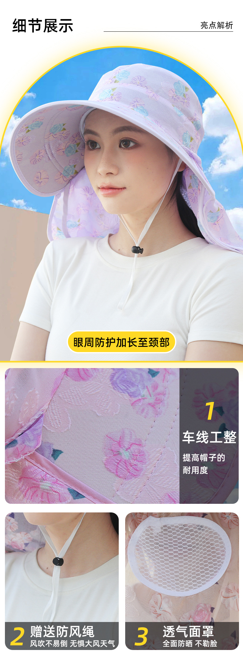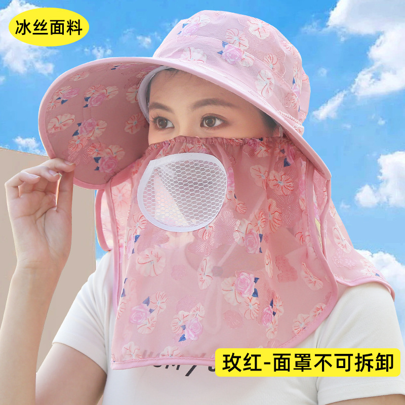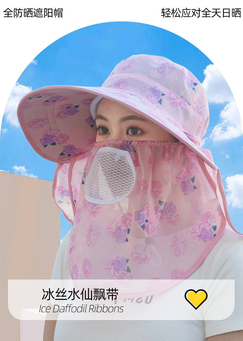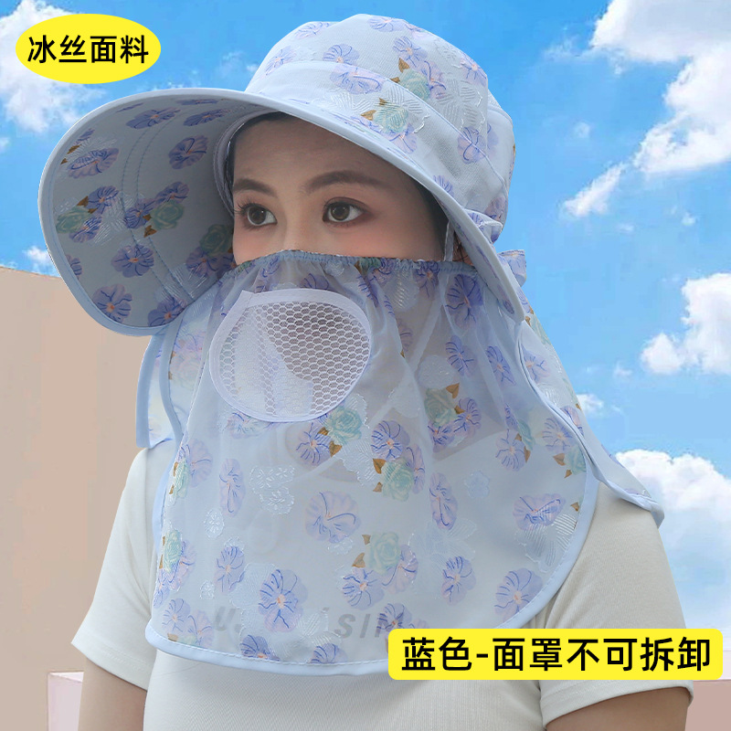 厂家户外休闲太阳帽运动骑行大帽檐防晒帽冰丝透气护颈渔夫采茶帽