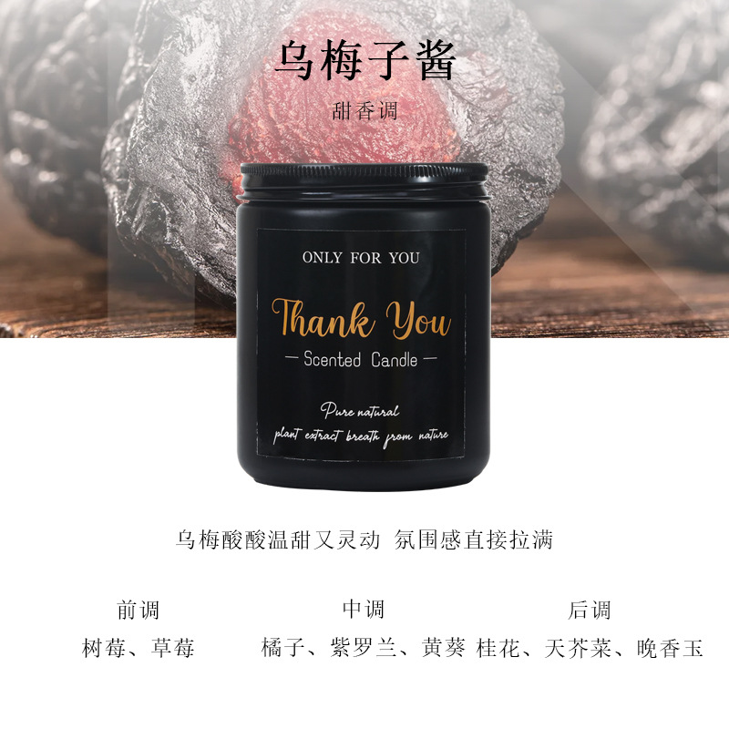 跨境香薰蜡烛黑色玻璃杯无烟手工大豆蜡香味蜡烛香氛伴手礼批发