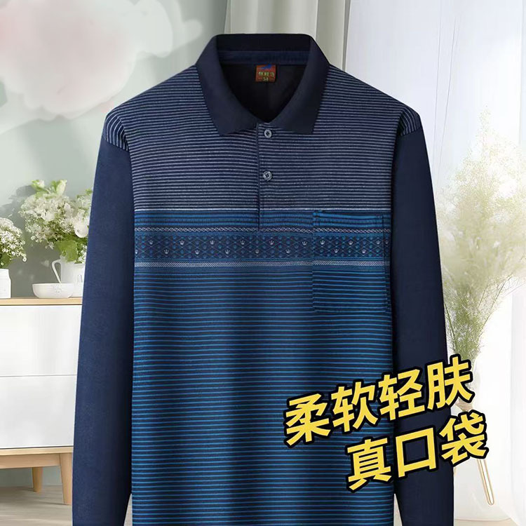 春季宽松打底衫男长袖中年男士爸爸T恤春秋翻领休闲宽松爷爷上衣