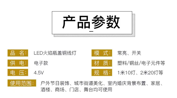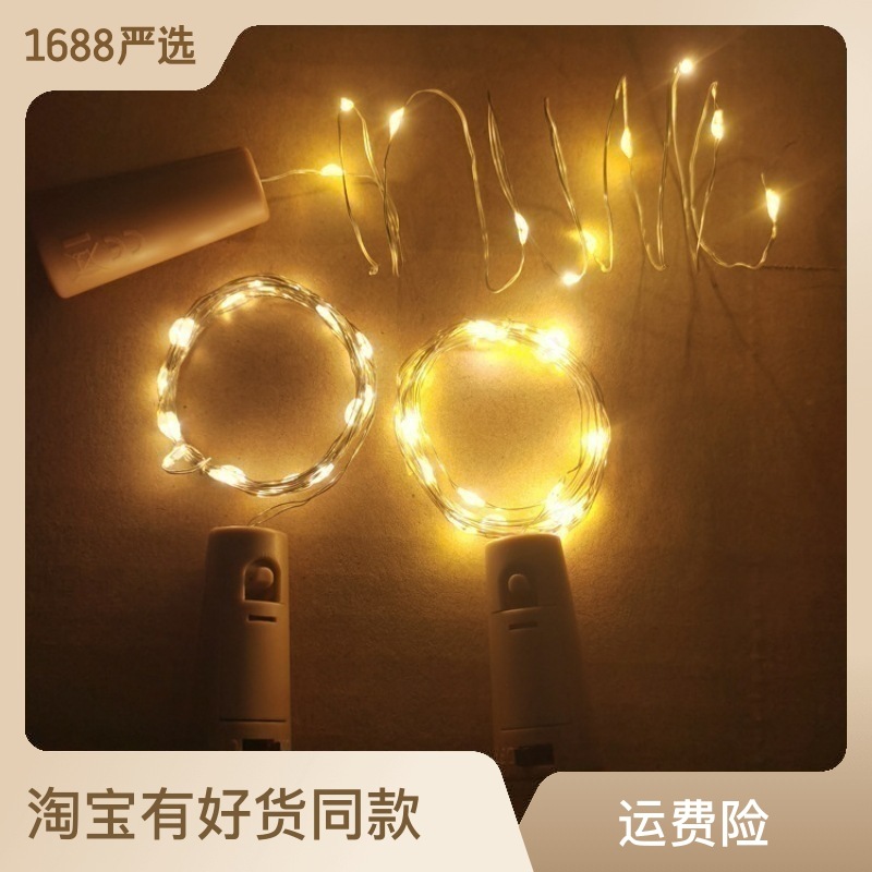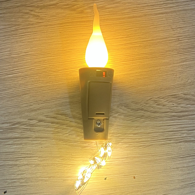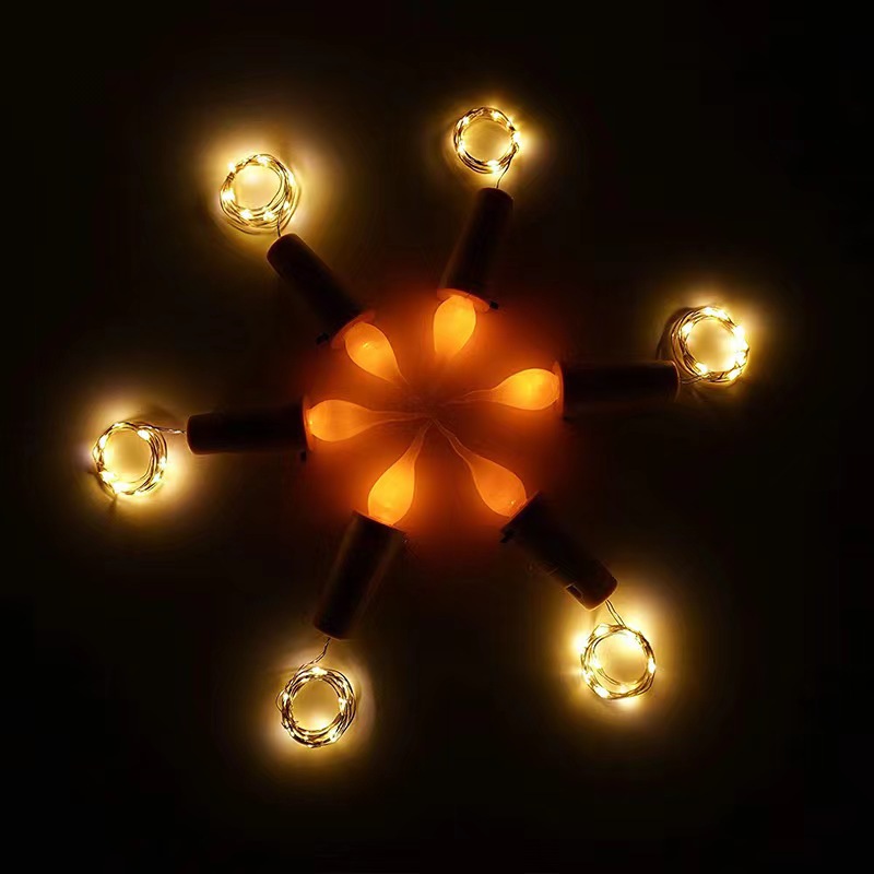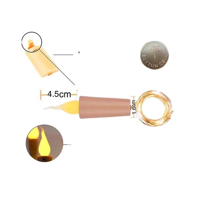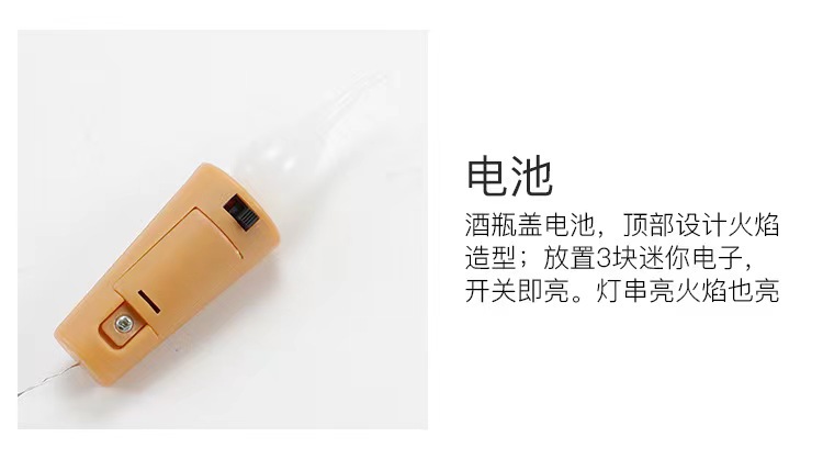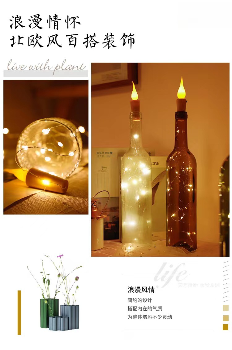 跨境蜡烛头铜丝灯电池款酒瓶塞灯串圣诞节日装饰灯火焰LED铜线灯