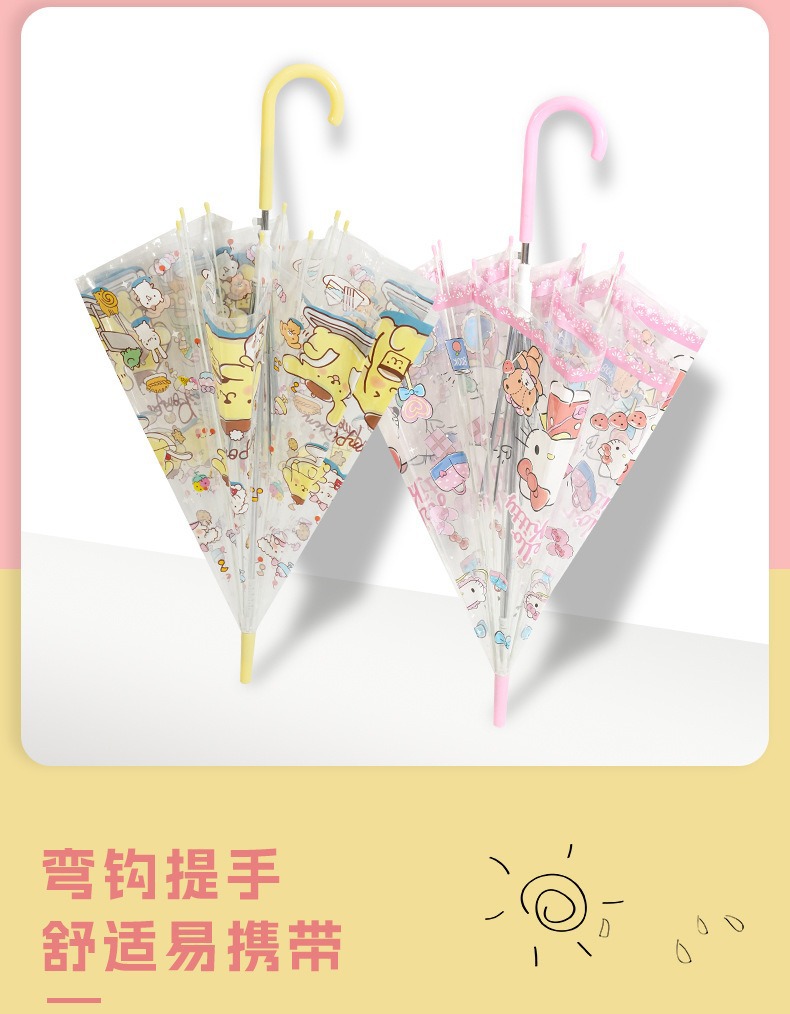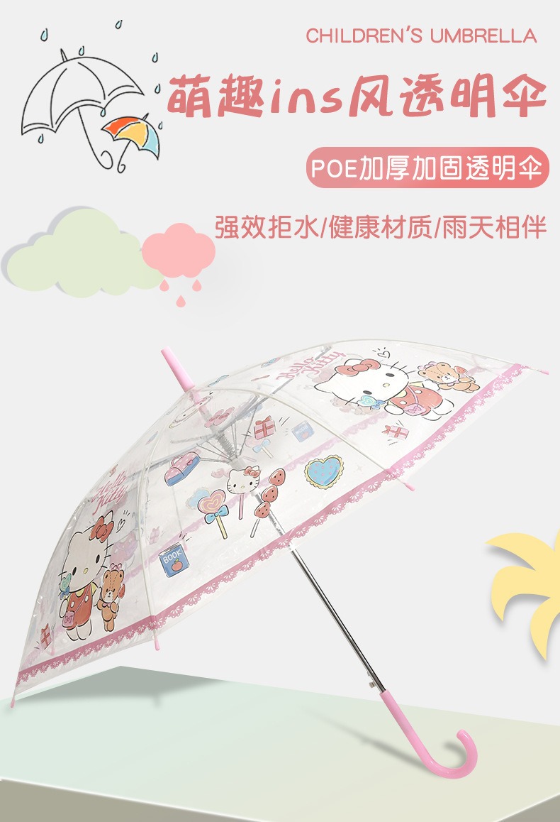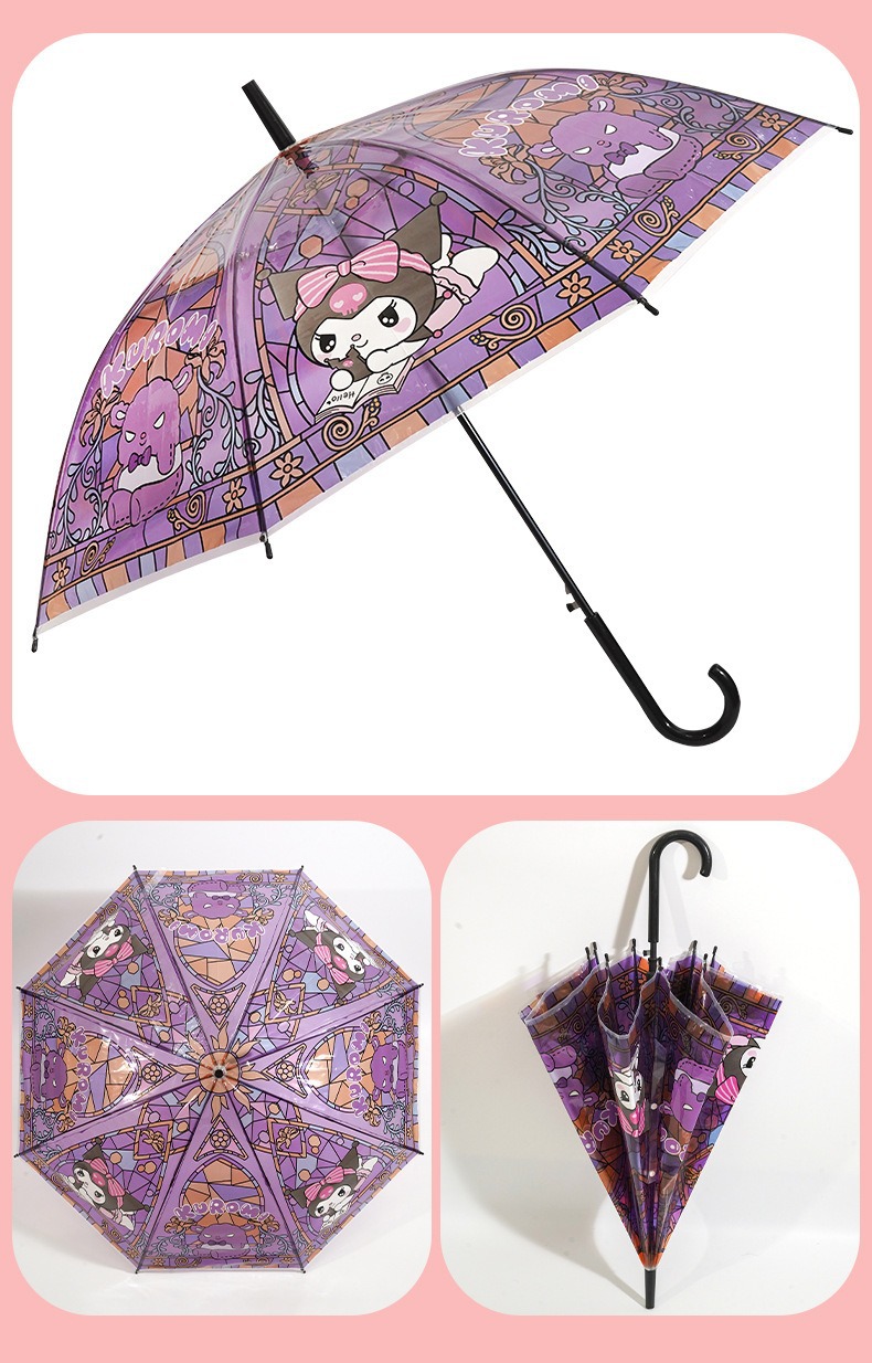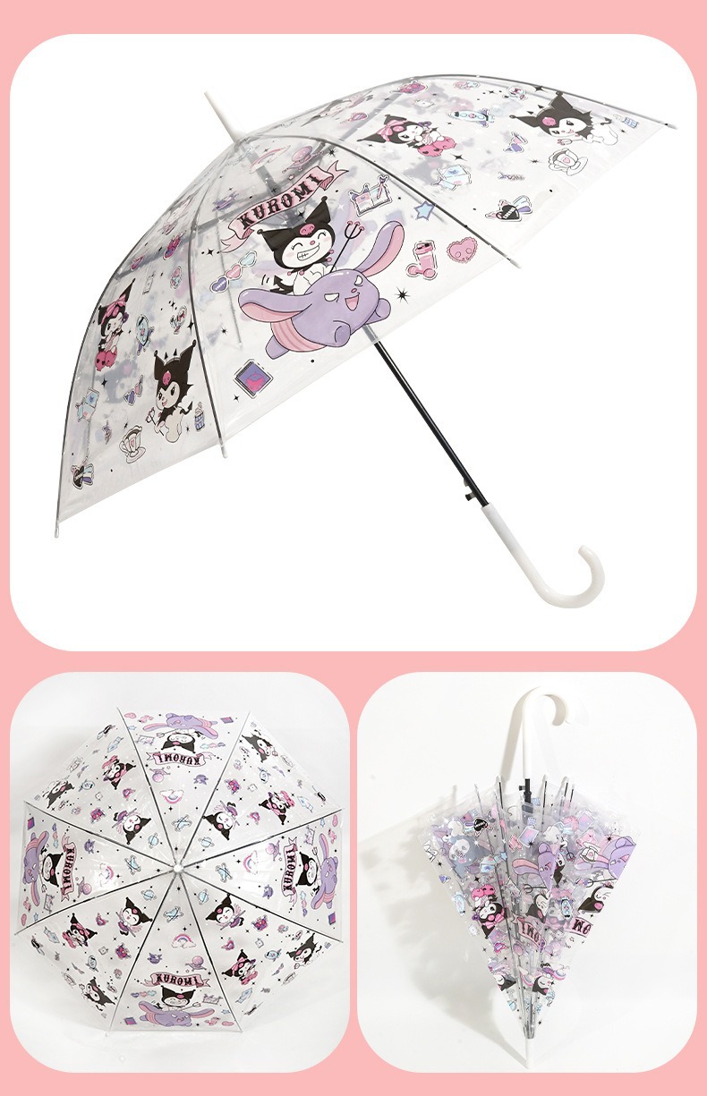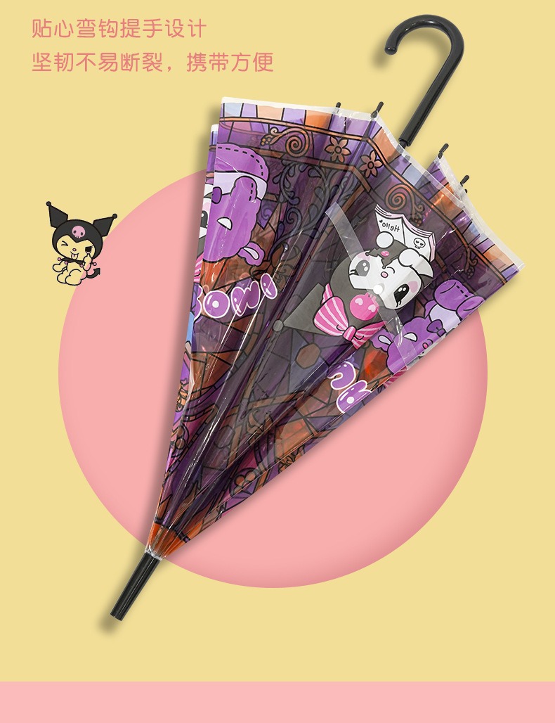 库洛米卡通学生透明长柄伞加厚满版图女孩透明雨伞高颜值儿童雨伞