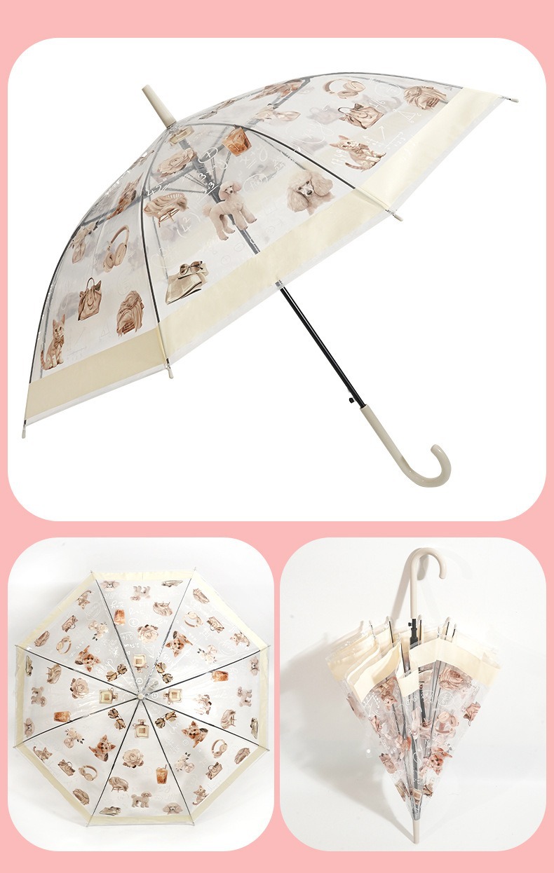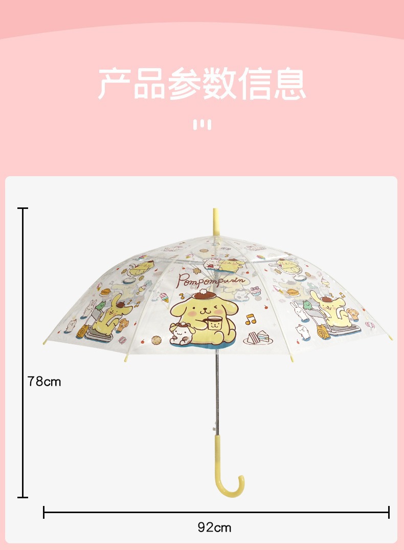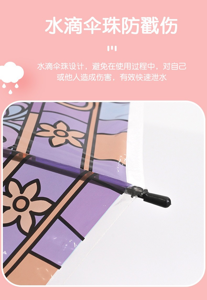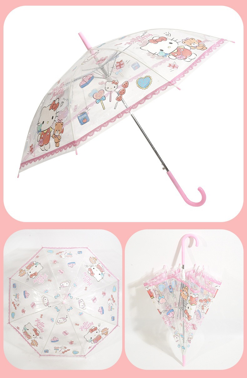 库洛米卡通学生透明长柄伞加厚满版图女孩透明雨伞高颜值儿童雨伞